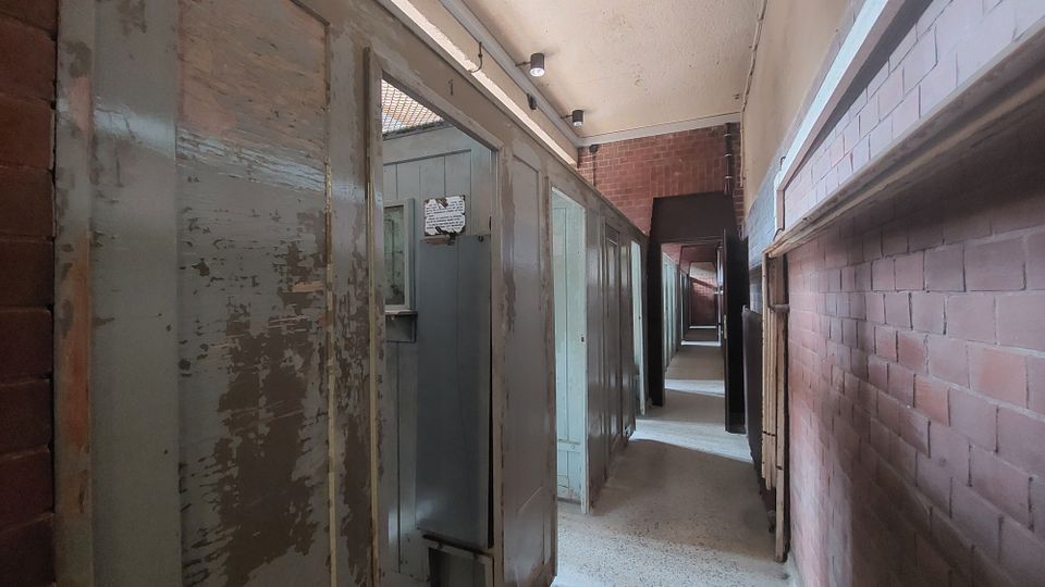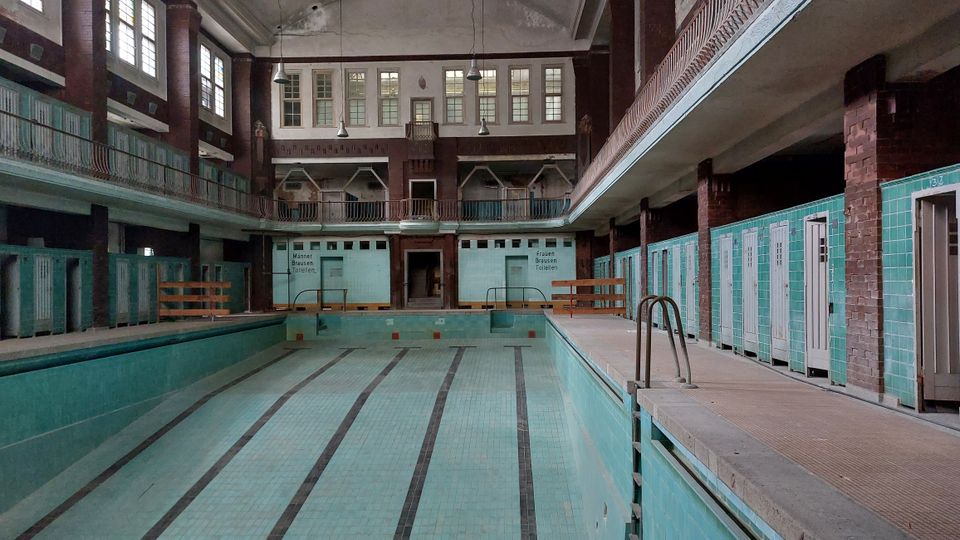 Im Hubertusbad handelt es sich um eine ehemalige Schwimmhalle mit historischen Umkleidekabinen.
