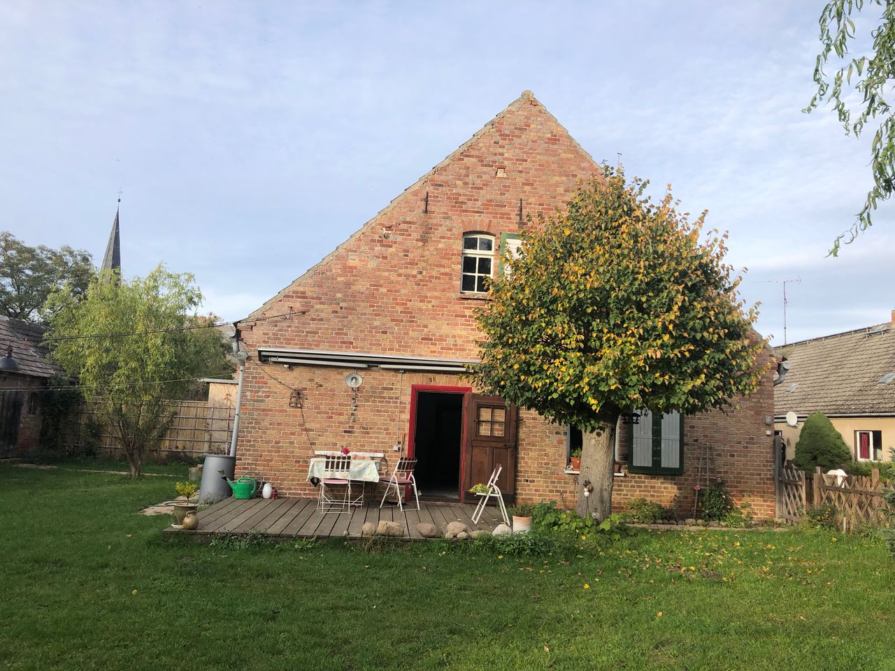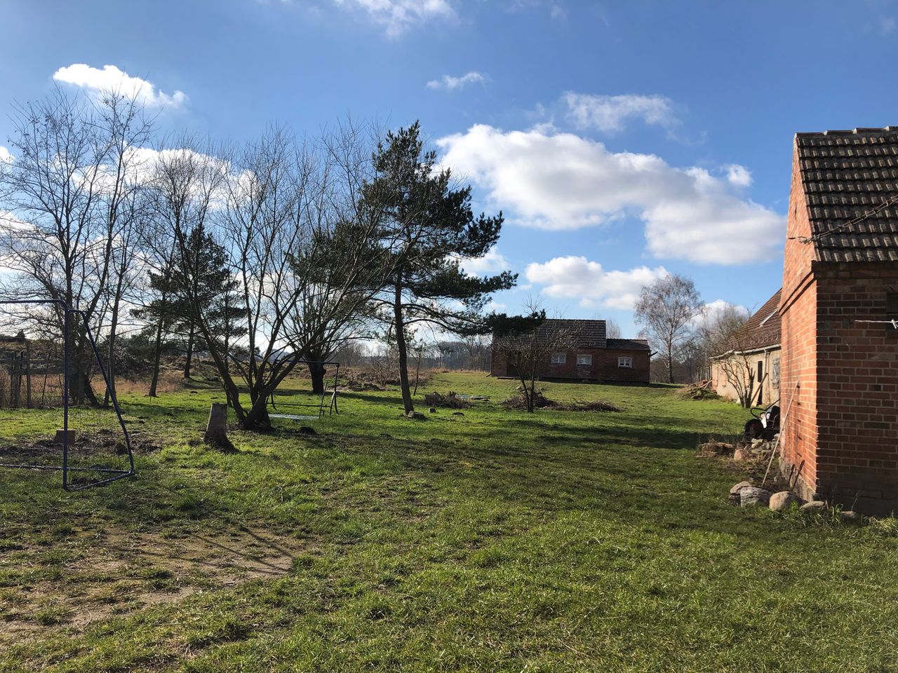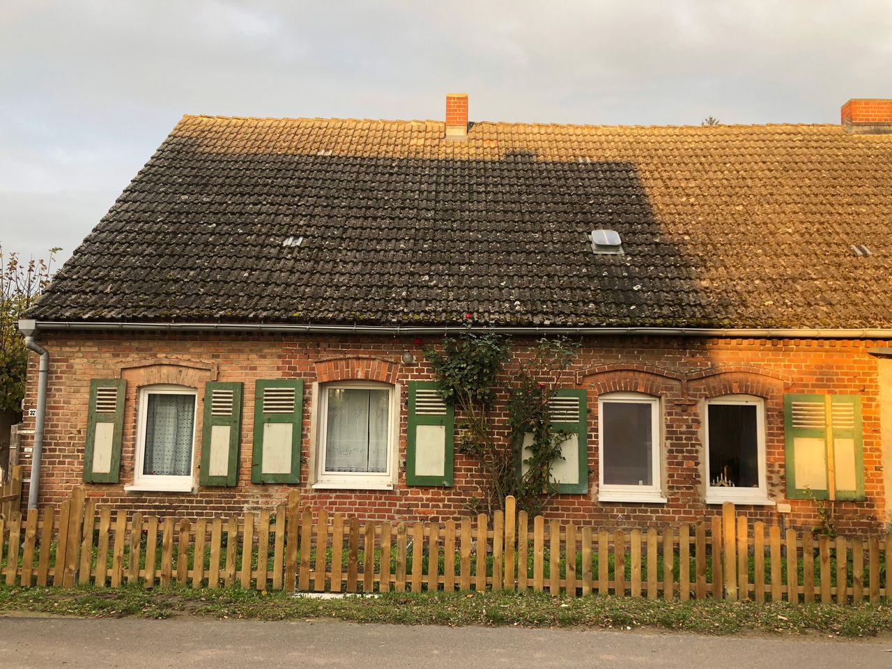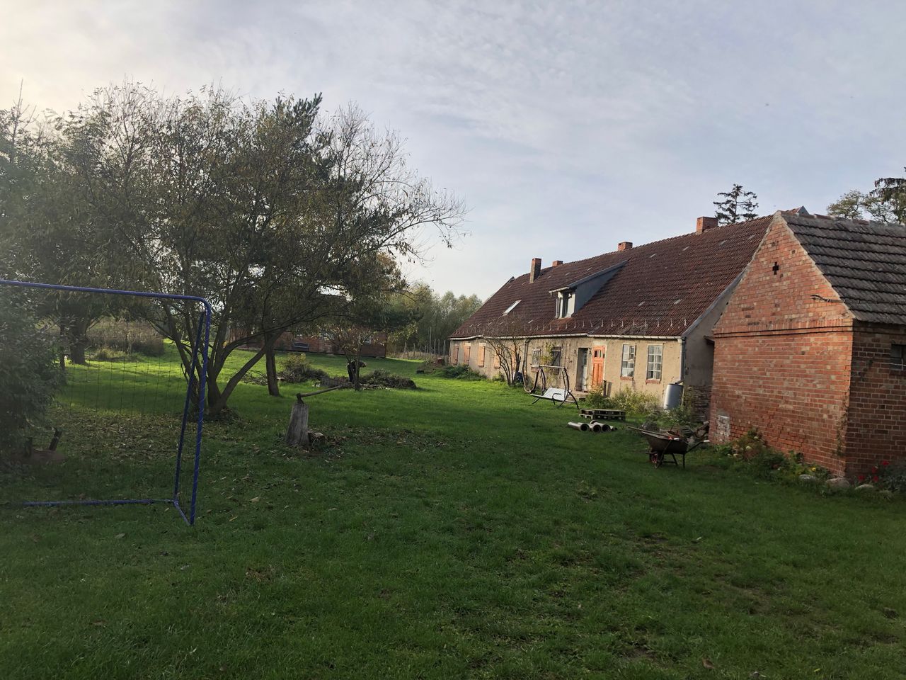 Denkmalgeschütztes Bauernhaus aus Backstein am Ende einer kleinen Sackgasse , die als gesamtes Ensembledenkmal aus Bauernhäusern unter Denkmalschutz steht. Das Haus ist von Feldern umgeben. Kein Autoverkehr. Auf dem Grundstück stehen mehrere Stallgebäude (denkmalgeschützt) . Ein ungenutztes großes ehemaliges Wohnhaus (ehemals Fachwerk) und auf einem Hügel in der Mitte des Grundstückes, ein als 2. Wohnhaus ausgebauter Stall