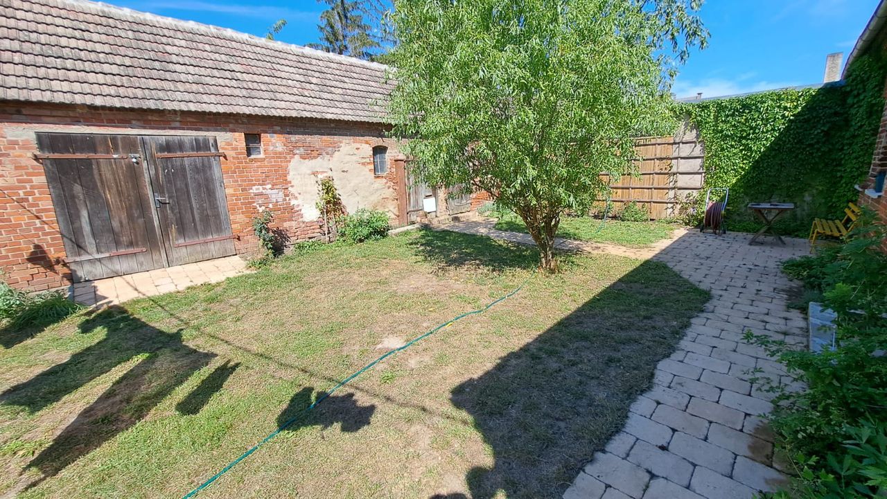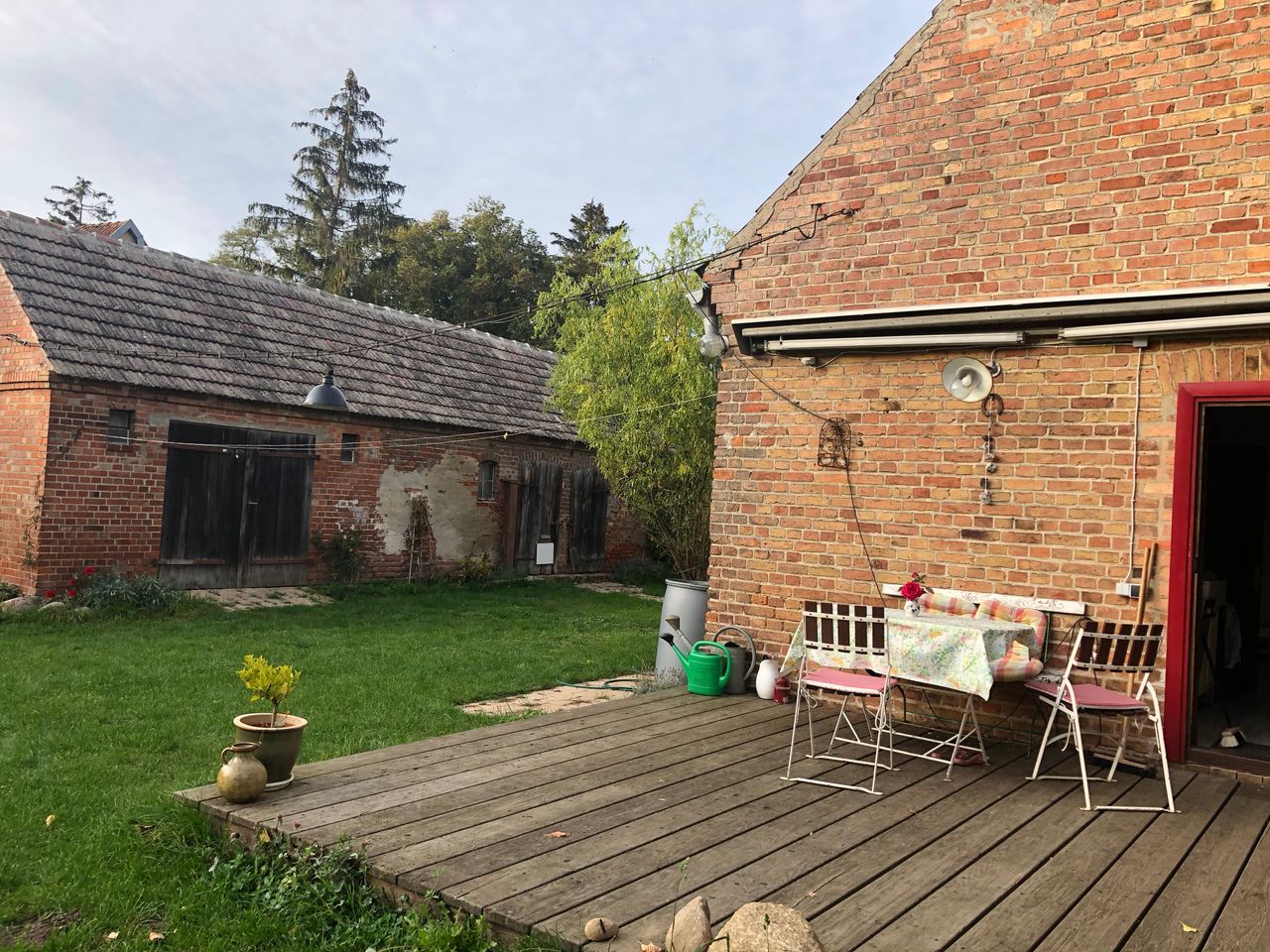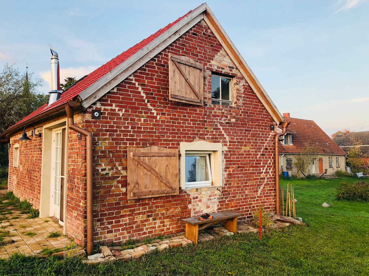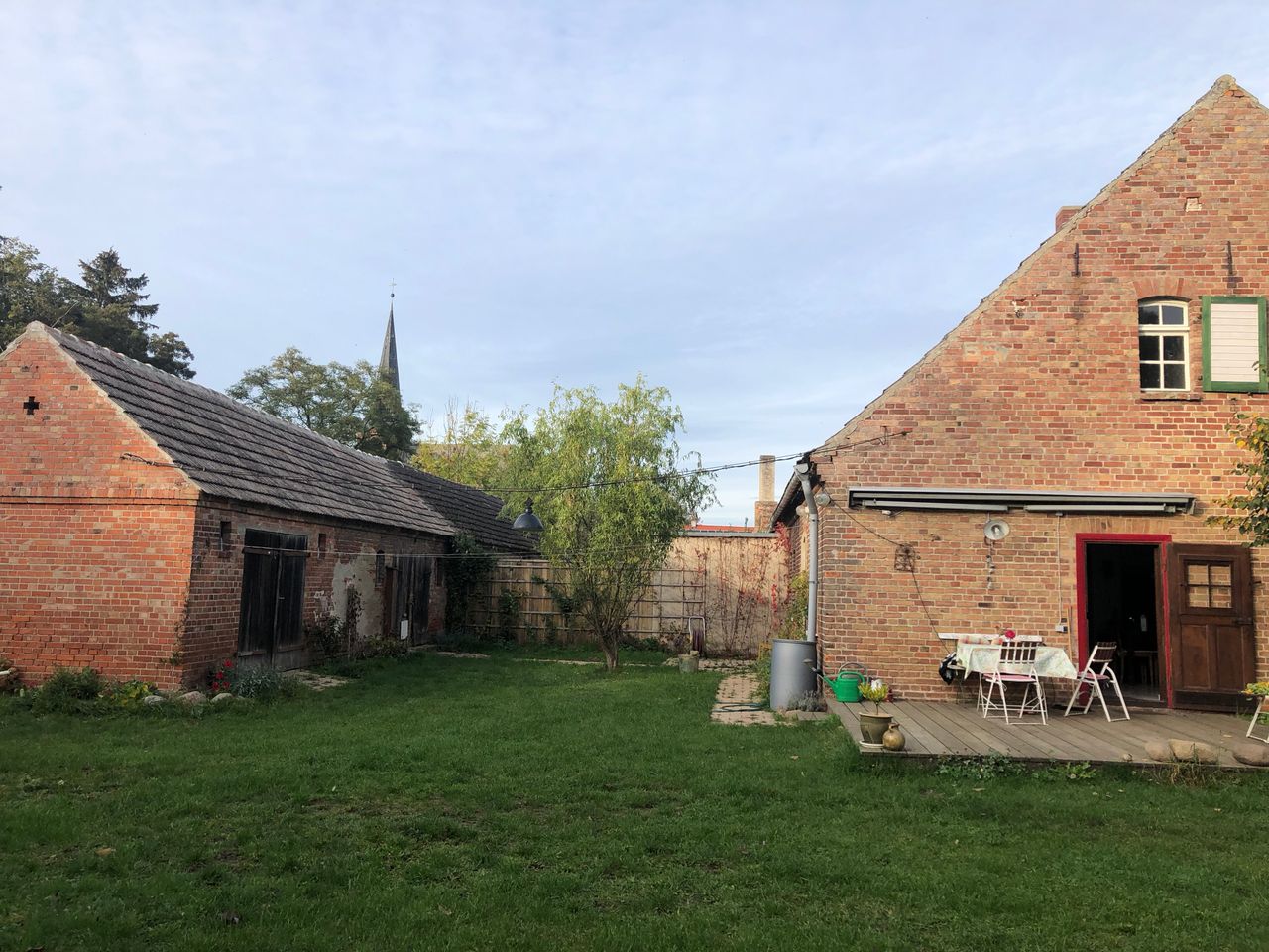 Denkmalgeschütztes Bauernhaus aus Backstein am Ende einer kleinen Sackgasse , die als gesamtes Ensembledenkmal aus Bauernhäusern unter Denkmalschutz steht. Das Haus ist von Feldern umgeben. Kein Autoverkehr. Auf dem Grundstück stehen mehrere Stallgebäude (denkmalgeschützt) . Ein ungenutztes großes ehemaliges Wohnhaus (ehemals Fachwerk) und auf einem Hügel in der Mitte des Grundstückes, ein als 2. Wohnhaus ausgebauter Stall