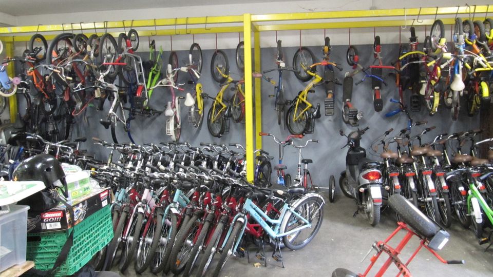 es sind vorort eine Vielzahl von größeren und kleineren Fahrrädern und Kinderfahrzeuge wie Tretroller, Laufräder und Gokarts vorhanden, die für Aufnahmen genutzt werden können