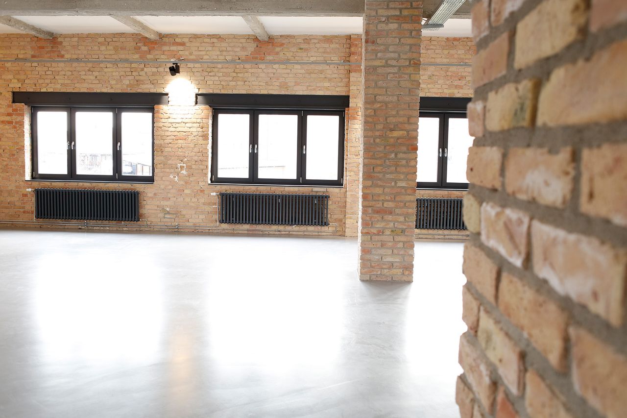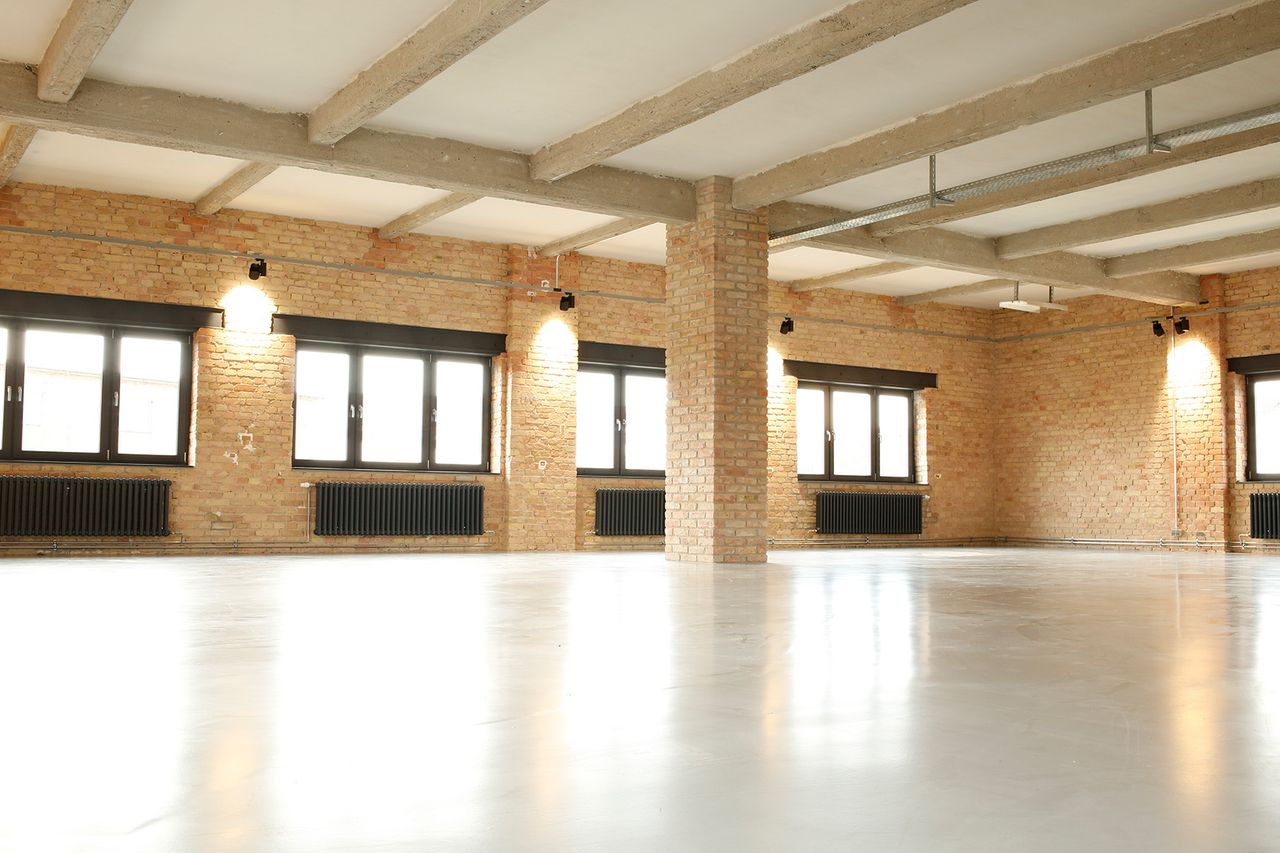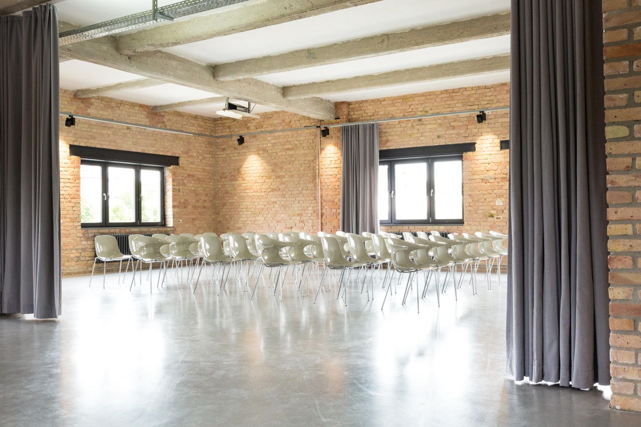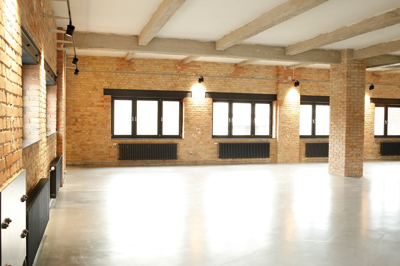 Das 200 qm große, lichtdurchflutete Loft ist in einem Gewerbegebäude gelegen und bietet genügend Gestaltungsspielraum für jegliche Veranstaltungszwecke. Hier treffen unterschiedliche Elemente wie Klinkerstein, Stahlträger, Beton und weiße glatt verputzte Wände aufeinander und verleihen dem ganzen Raum den Charakter eines Industrielofts. Es verfügt über einen 200 qm offenen und hellen Raum mit Klinkersäulen, eine Gastro-Küche, getrennte Toiletten und einer Kammer. Die Räumlichkeiten sind hochwertig ausgestattet und verfügen über eine stilechten Lounge und einer individuellen Barkonstruktion. An den 3,6m hohen Decken werden weiße glatte Flächen von unbehandelten Betonträgern durchgekreuzt. Die Location befindet sich im 1. Stock und kann über eine breite Treppe oder einen Lastenaufzug erreicht werden. Sie liegt in einer Ecke des Gebäudes, wodurch jedes Zimmer Licht über große Fenster bekommt (Steiger, bzw. Scheren Stellmöglichkeit). Da sie in einem Gewerbepark liegt, gibt es direkt am Gebäude viele Möglichkeiten Stellplätze für Technikfahrzeuge und Basis anzumieten. Es gibt keine Nachbarn und einen hausinternen Starkstromanschluss. Für weitere Informationen und Fragen stehen wir natürlich gerne zur Verfügung.