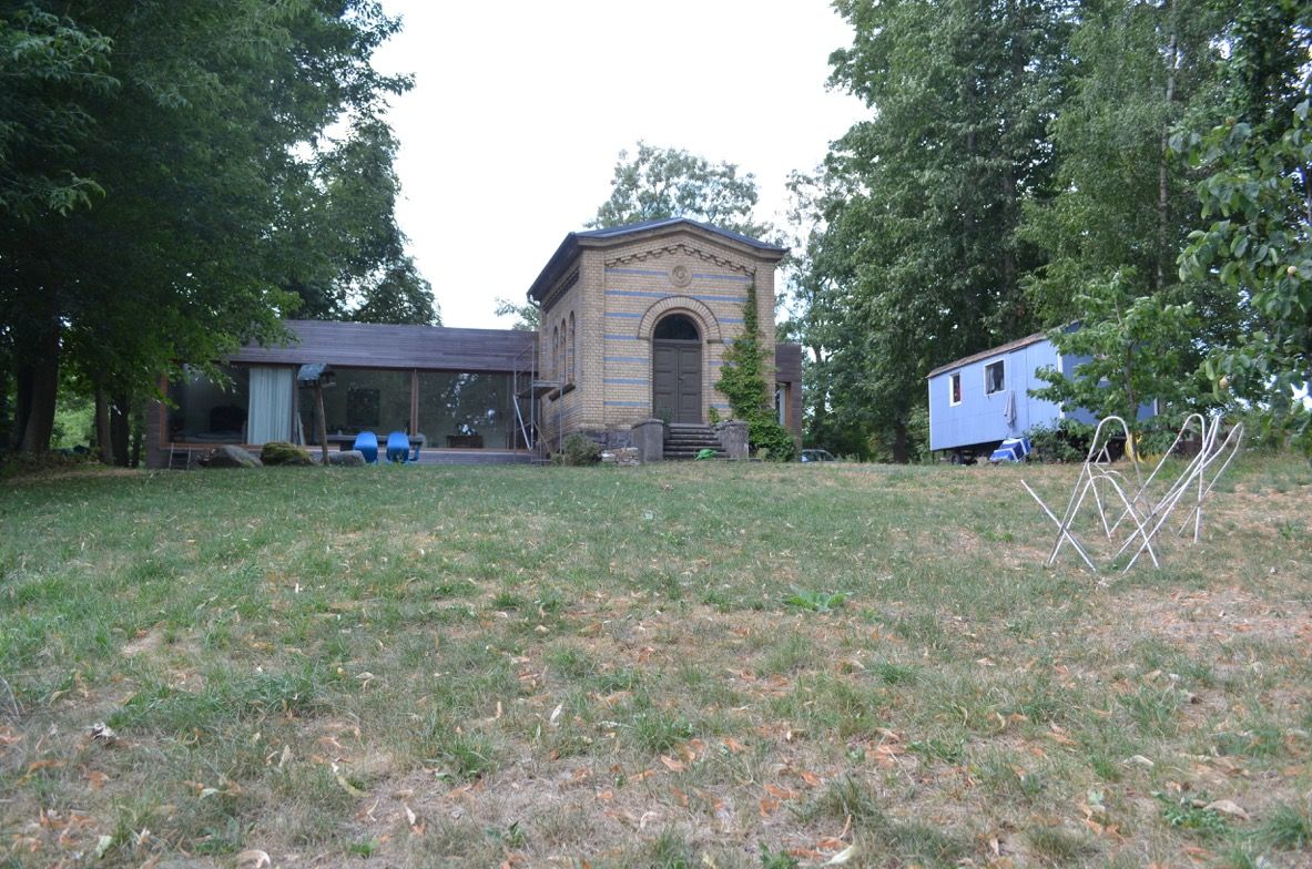 Kleine Kapelle mit Holzdecke und Wandgemälden, bildet mit angrenzendem Holzhaus eine Wohneinheit