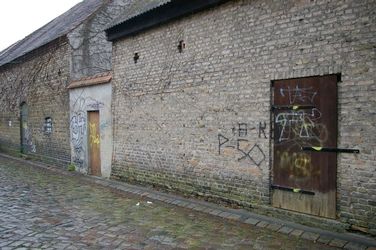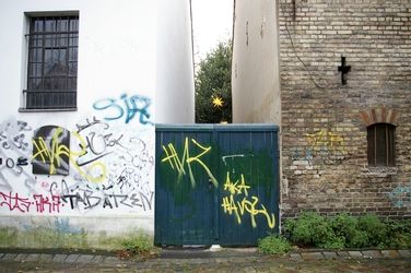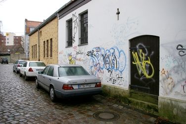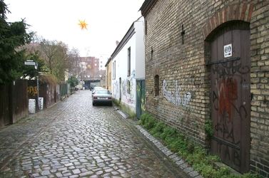 Gasse im Stadtteil Neukölln, ehemals Rixdorf / Böhmisches Dorf mit denkmalgeschützten Häusern. Siehe unter www.neukoelln-online.de