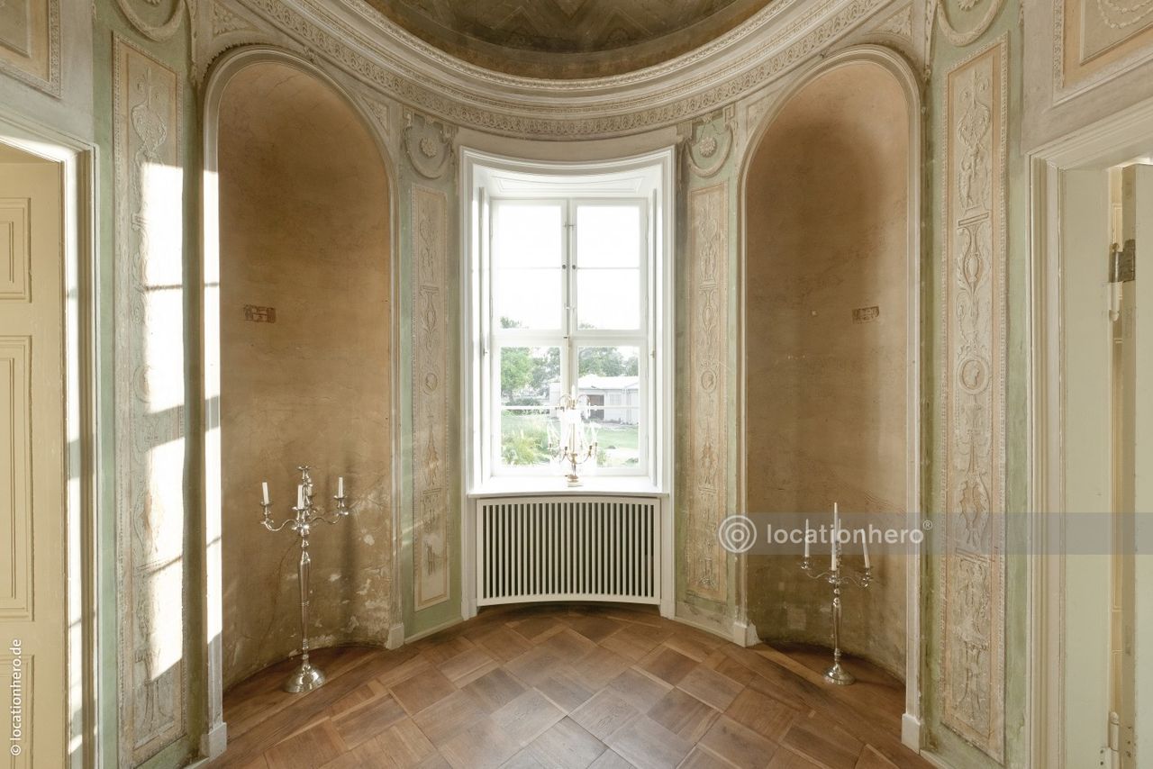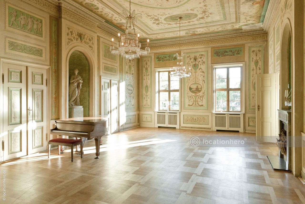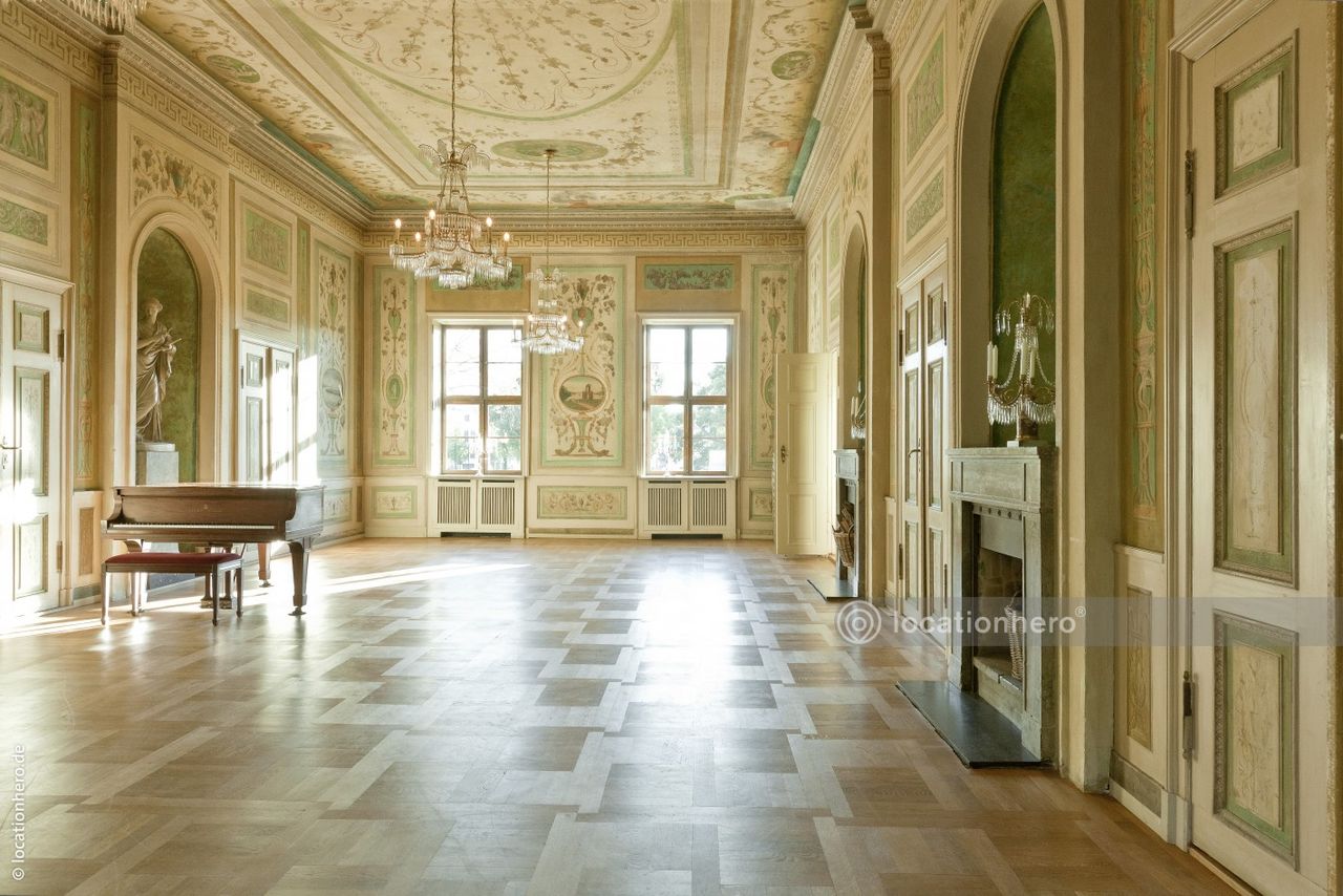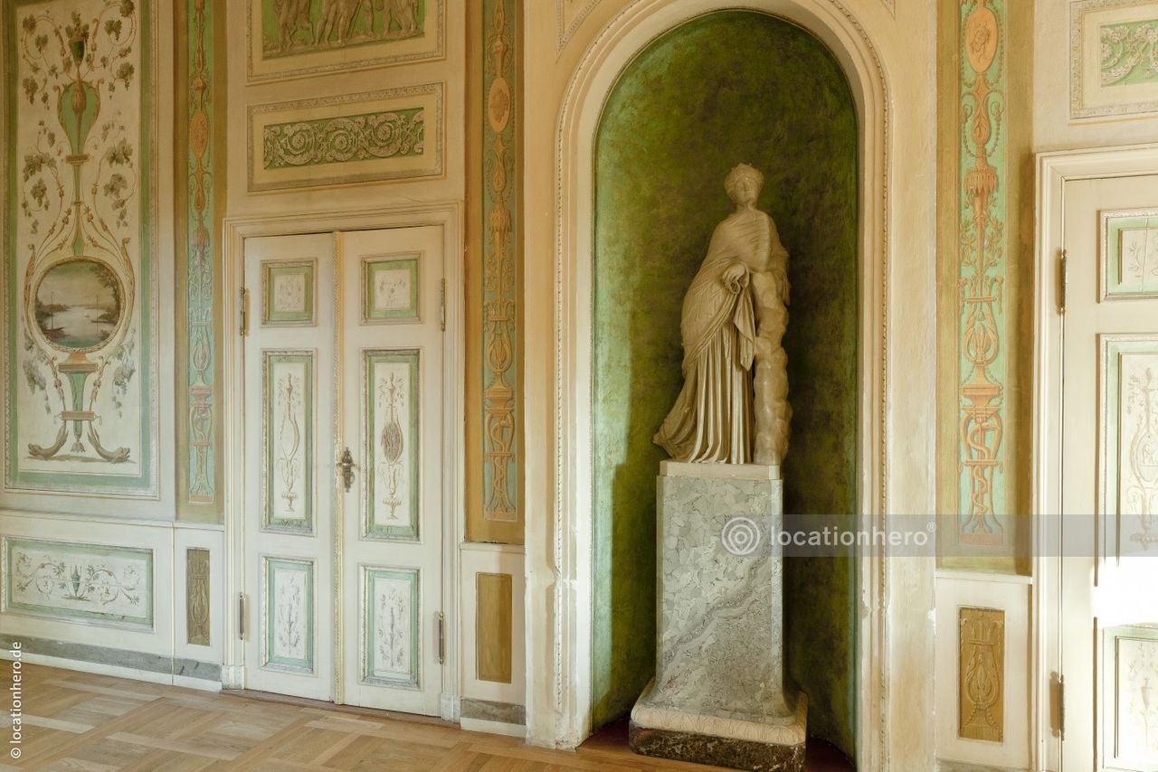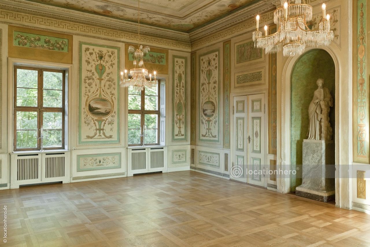 Sehr gut erhaltene Räumlichkeiten in einem frühklassizistischen Bau. Holzvertäfelungen, Wandmalereien, Kassettendecken zeigen innovative architektonische Elemente dieser Epoche.
