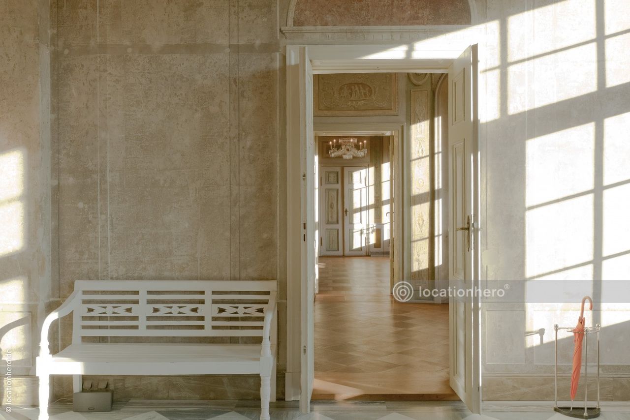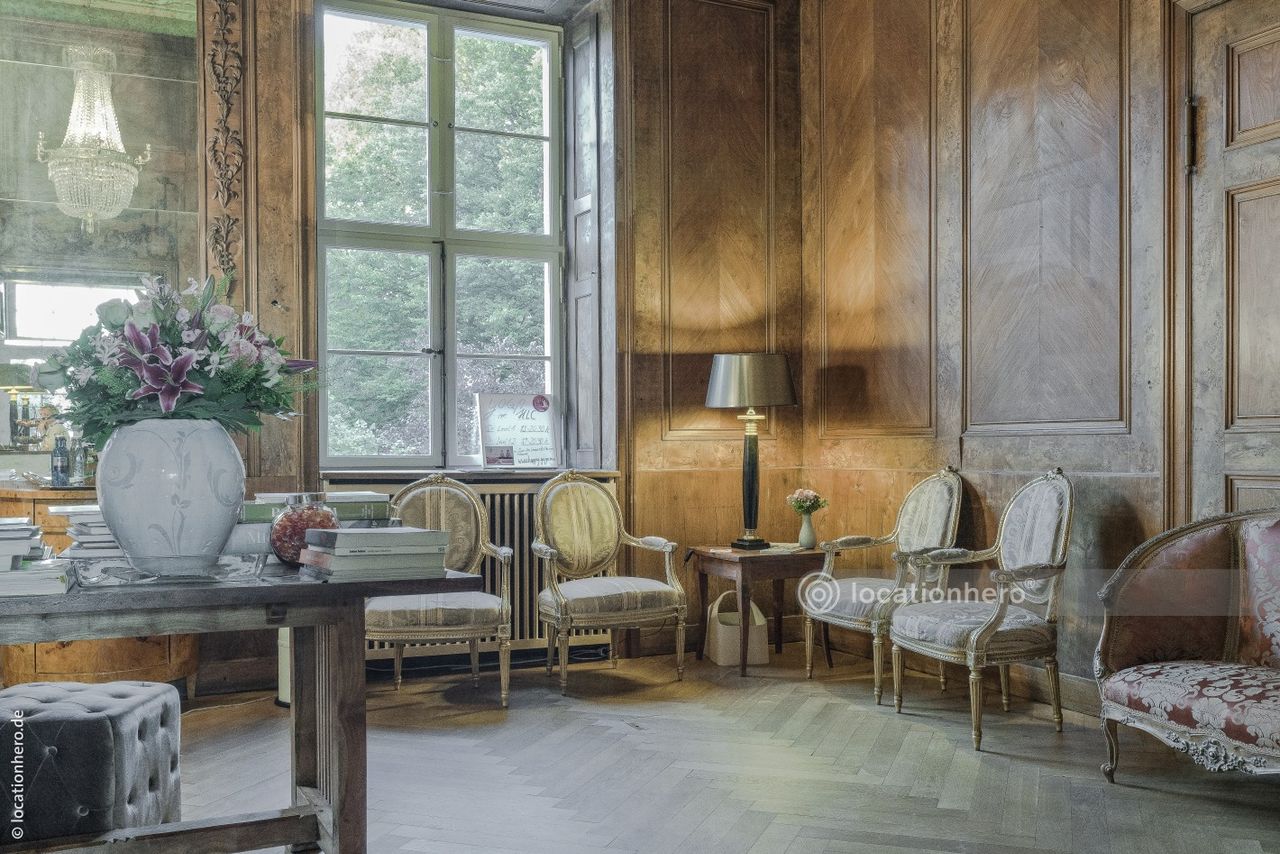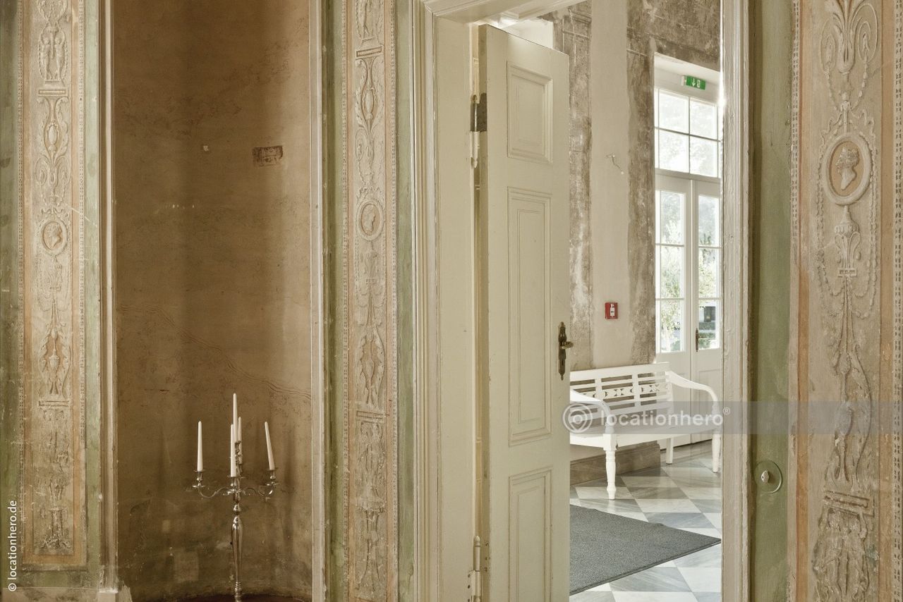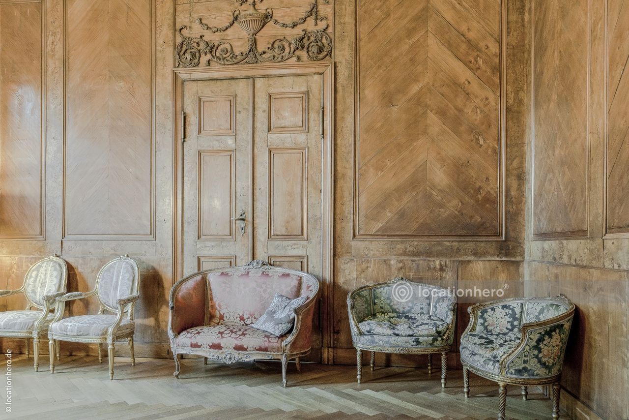 Sehr gut erhaltene Räumlichkeiten in einem frühklassizistischen Bau. Holzvertäfelungen, Wandmalereien, Kassettendecken zeigen innovative architektonische Elemente dieser Epoche.