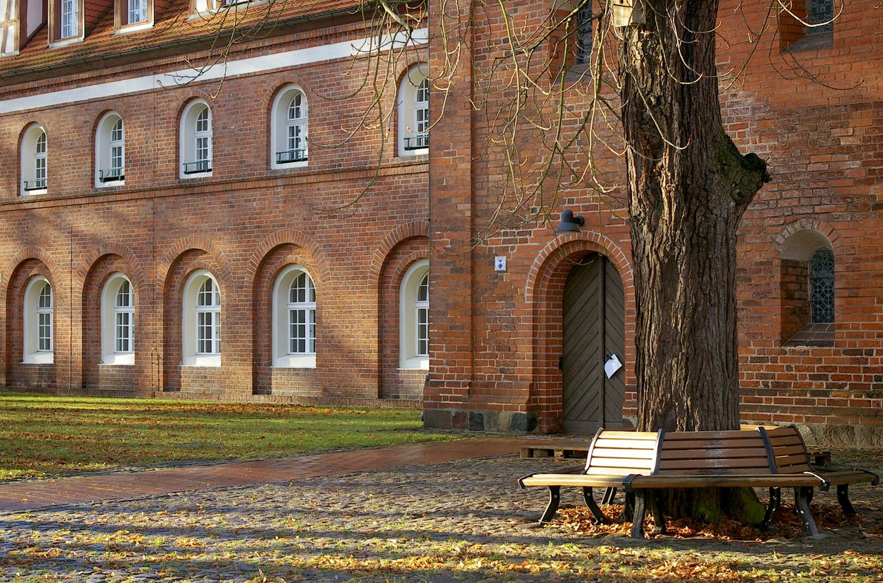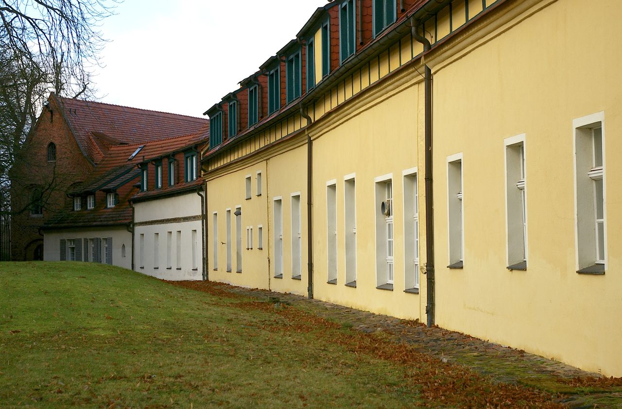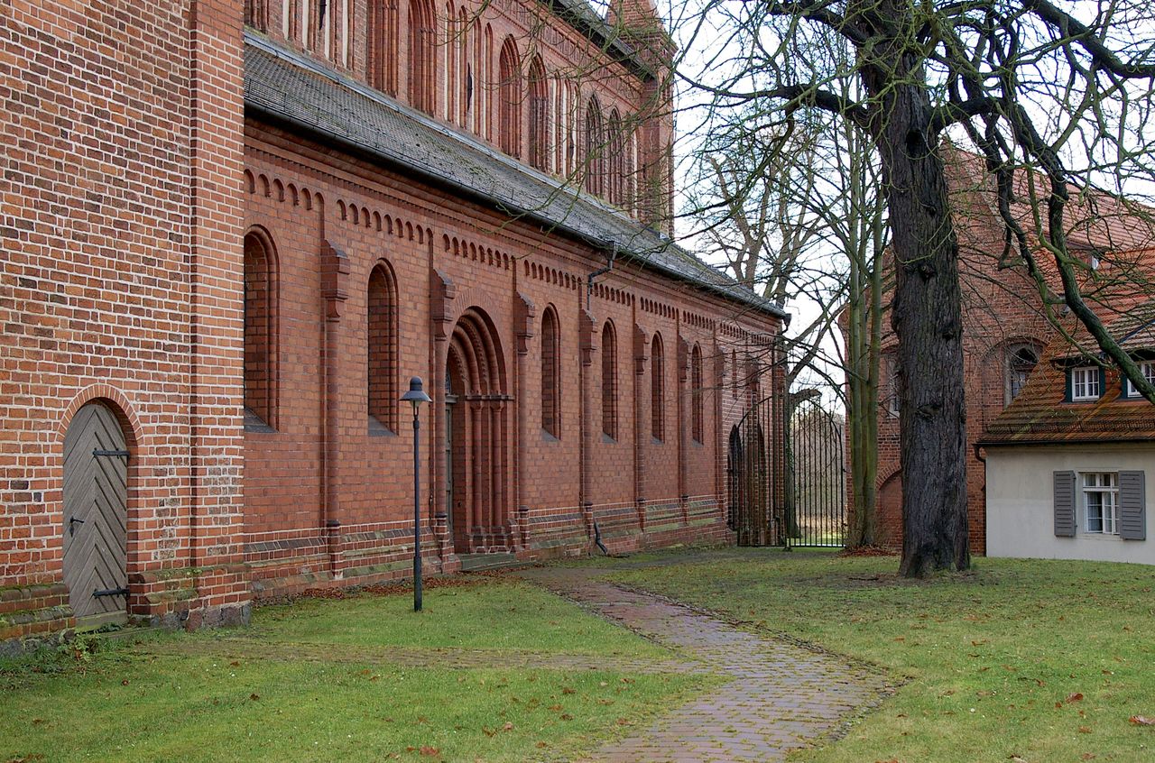 Die Klosterkirche ist ein hervorragendes Beispiel früher norddeutscher Backsteinarchitektur. An den in romanischen Bauformen errichteten Ostteil mit Chor, Chorhaus und einem Langhausjoch schließt sich der Westteil im Stil der Frühgotik an. 1183 wurde mit dem Bau der Kirche und der Klosteranlage begonnen, der im wesentlichen bis 1260 zum Abschluss kam. Die Kirche ist als eine kreuzförmige Pfeilerbasilika gebaut und besticht durch ihre typisch zisterziensische Schlichtheit. Die Westfassade ist in ihrer repräsentativen Anlage bestimmend für die Backsteinfassaden des Ordens über die Grenzen der Mark hinaus. Weitere historische Gebäude auf dem Gelände sind: - das ehemalige Hospital aus dem 13. Jahrhundert mit repräsentativem gotischem Deckengewölbe und einzigartiger Holzbalken-Zwischendecke; - das Falkonierhaus, das nach der Klosterauflösung den königlichen Jagdgesellschaften als Gästehaus diente; - das Pfarrhaus, das 1845 im neugotischen Stil von Ludwig Persius errichtet wurde; - ein alter Kornspeicher aus dem 14. Jahrhundert; - einige Wirtschaftgebäude; - das Abtshaus, das mit seiner romantischen Atmosphäre heute als Gästehaus genutzt wird; - das barocke Amtshaus von 1696, in dem sich heute das Museum, ein Café und der Klosterladen befinden. Heute wird das gesamte Gelände durch das Evangelische Diakonissenhaus Berlin Teltow Lehnin bewirtschaftet. So entstanden um die historische Anlage herum Neubauten u.a. für ein Krankenhaus und ein Altersheim. Die gesamte Anlage ist sehr weitläufig mit vielen unterschiedlichen Gärten und präsentiert sich nach dem klösterlichen Ideal einer irdischen Gottesstadt.