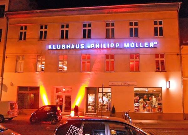 1835 als Bürgerhaus errichtet, wurde das Gebäude ab 1952 zum "Jugendklubhaus Philipp Müller" und bot durch Gastronomie, Tanz, Konzerte, Theater, Zirkeln, Kegelbahn, Bars, etc. vielseitige Vergnügungsmöglichkeiten. (Vgl: klubhaus-philipp.de)