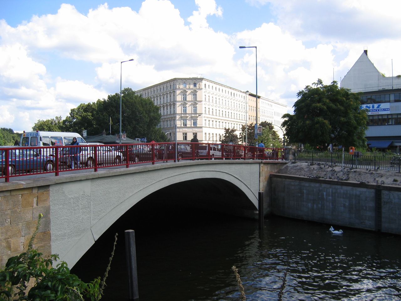 Um 1705 als Rixdorfer-Damm-Brücke errichtet, ist sie 1786 als Zugbrücke über den Landwehrgraben bezeugt. Im Volksmund hieß sie Leichenbrücke, da über sie viele Tote zu den vor der Stadtmauer gelegenen Friedhöfen gefahren wurden. 1852 wurde sie als Klappbrücke aus Holz in der Verlängerung der 1839 benannten Kottbusser Straße neu erbaut und benannt. Von 1891 bis 1893 wurde die Holzbrücke von Heinrich Liersch und Friedrich Hoese (1853–1929) durch eine steinerne Brücke mit einer Spannweite von 20,00 m ersetzt. 1970 wurde sie abgebrochen und durch eine Spannbetonbrücke ersetzt. Die einfache Betonbrücke hat ein Eisengeländer.