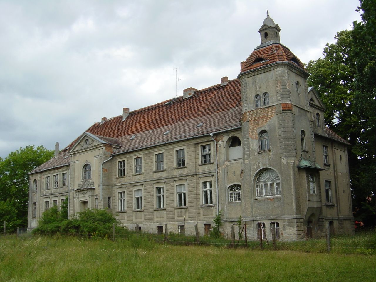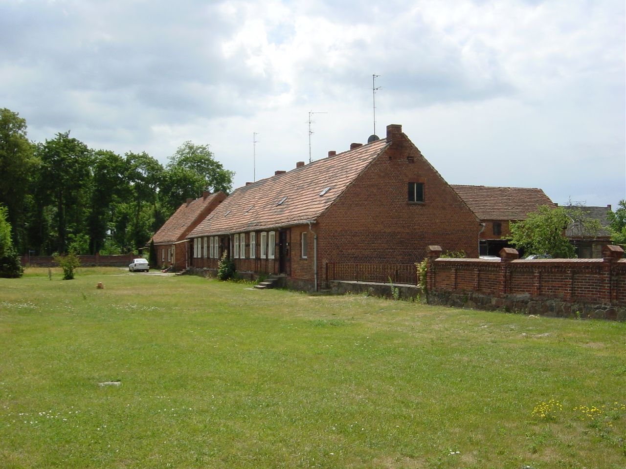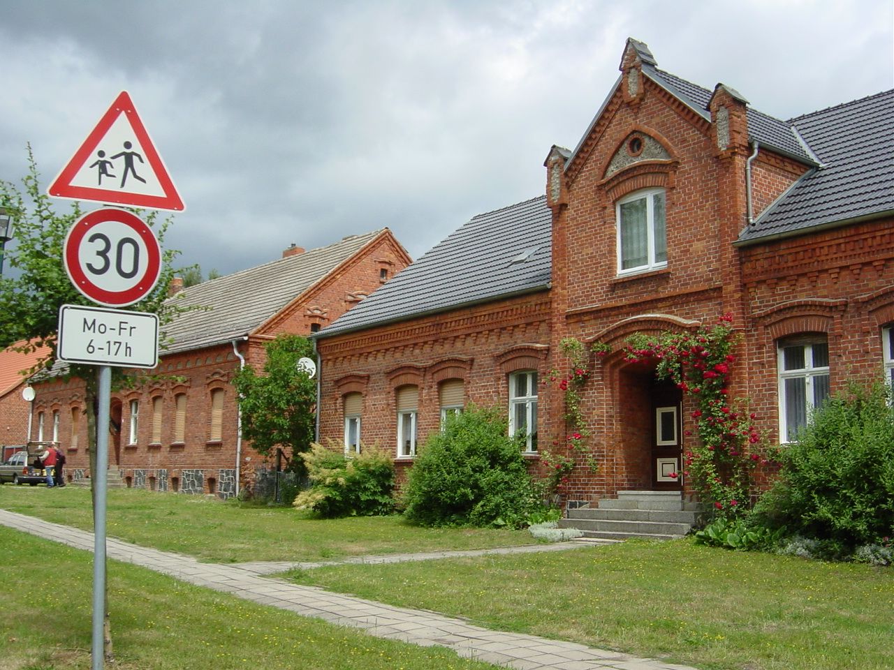 Idyllisches Dorf, größtenteils erhaltene ein- bis zweigeschossige Backsteinbauten an der Dorfstrasse, Feuerwehr, Schloss Krampfer, sowie Kirche aus Feldstein