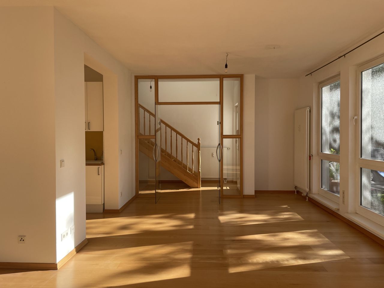 Das Maisonette-Haus befindet sich im Hinterhof eines Mehrfamilienhauses und ist separat mit Zugang zum Garten und hat oben eine große Terrasse (insgesamt 3 Etagen). Im Moment gibt es fast keine Möbel im Gebäude und niemand wohnt dort. Das wird sich wohl bald ändern. Senden Sie uns einfach eine Nachricht und wir können über alles reden. Wir sind sehr professionell und unkompliziert. Das Rauchen ist nur außerhalb des Gebäudes gestattet.