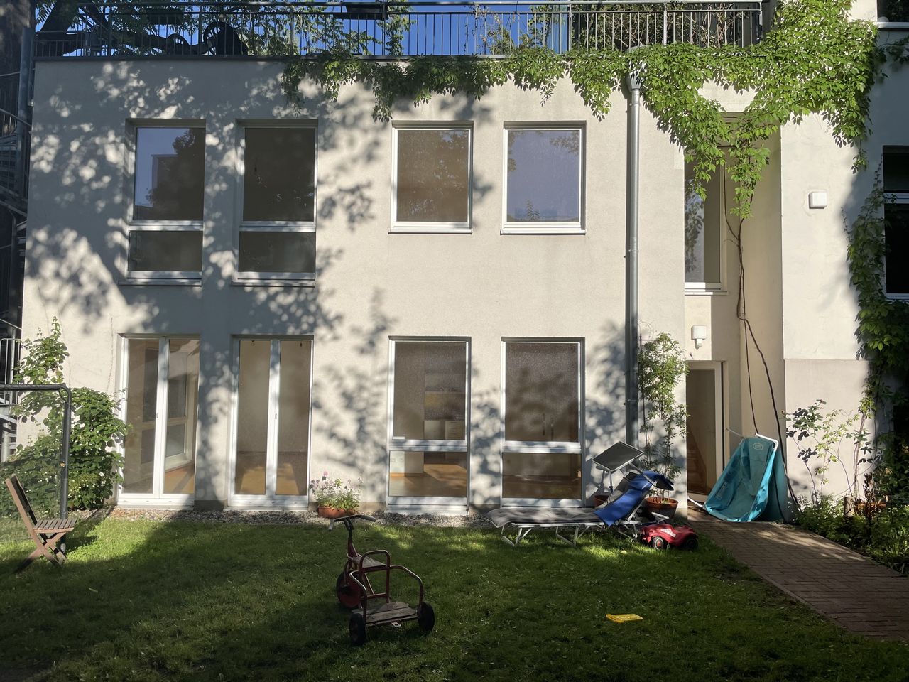 The maisonette house is in the backyard of a multi family house and it is separate with access to the garden and it has a big terrace on top (in total 3 floors). At the moment there is almost no furniture in the building and nobody lives there. This is probably going to change soon. Just send us a message and we can talk about everything. We are very professional and easy going. Smoking is only allowed outside of the building.
