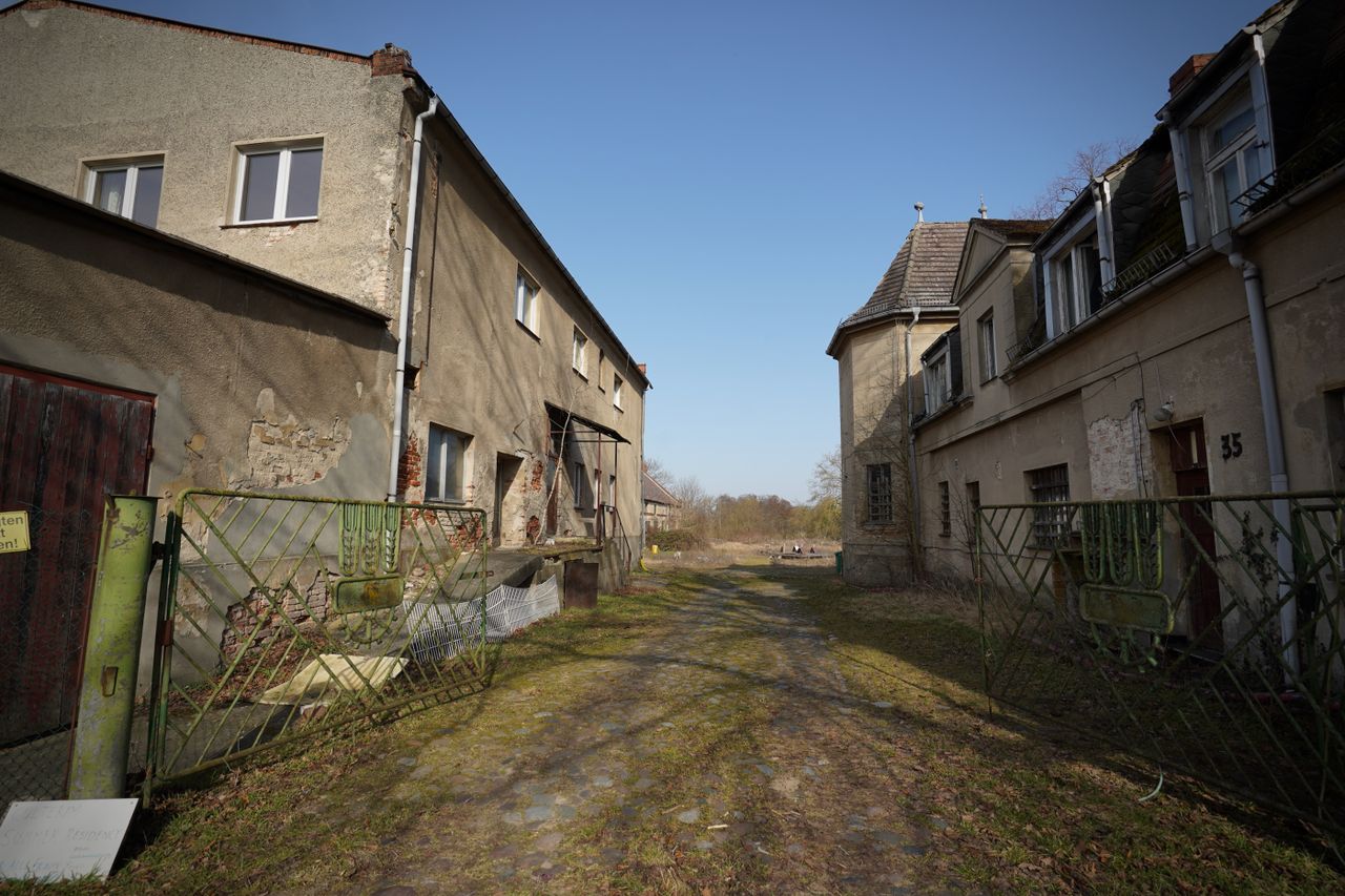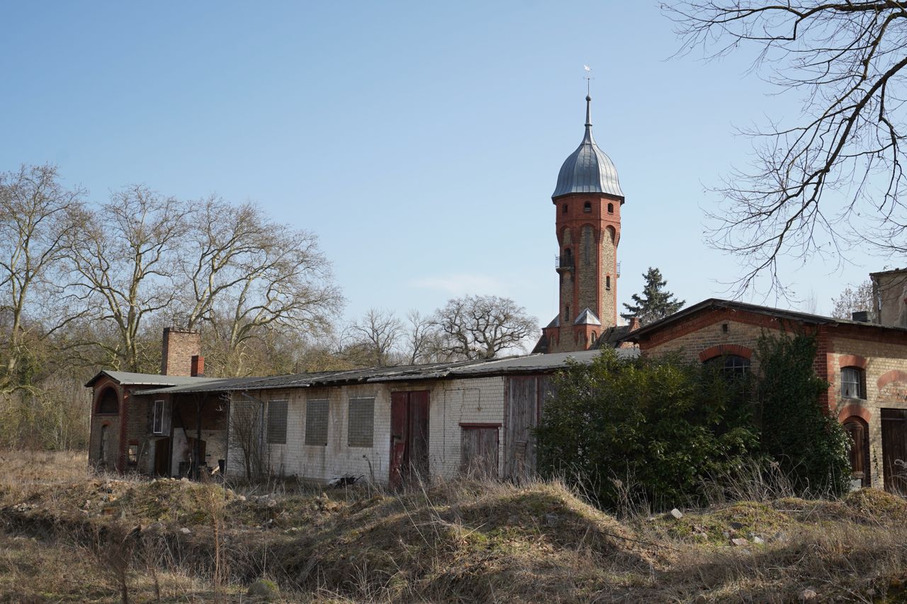 Wenige Kilometer von der Berliner Stadtgrenze entfernt und in rund 45 Minuten von Berlin-Mitte erreichbar, eröffnet dieses ehemalige Landgut eine außergewöhnliche und atmosphärisch dichte Kulisse. Das weitläufige Areal umfasst mehrere historische Gebäude und frühere Lagerhallen, darunter eine alte Schmiede, einen Wasserturm, ein bunkerartiges Industriegebäude sowie mehrere stark heruntergekommene Wohnhäuser. Die ältesten Bauwerke stammen aus dem Jahr 1850 und stehen unter Denkmalschutz.