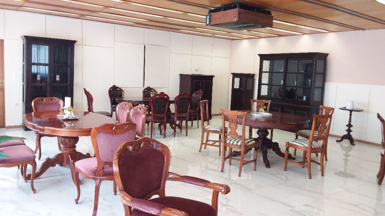Die Location, unterschiedliche Baujahre, mit Anbauten, ist mit großer Liebe zum Detail komplett im Stil der ehemaligen DDR gehalten. Vom Lichtschalter über das Treppengeländer, Dachterasse, Clubraum, Wandtäfelung bis zur Gardine ist die Optik 70er Jahre DDR komplett erhalten. Tagunsraum Stasi, Jugendtreffen oder Familiensituationen gehen gleichermaßen. In einigen Räumen könnte man auch 20er- bis 30er Jahre gut herstellen.