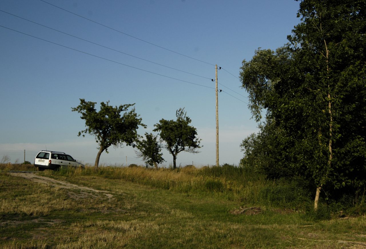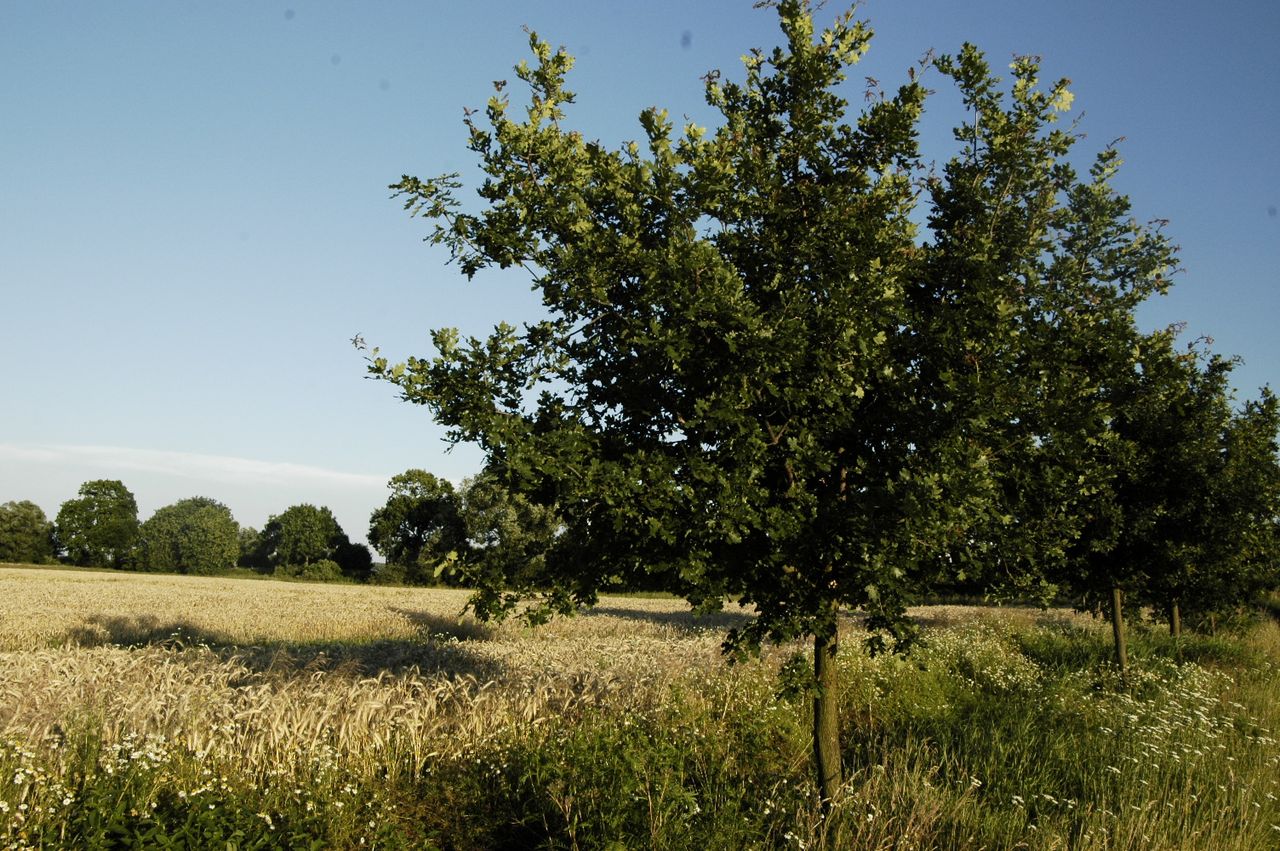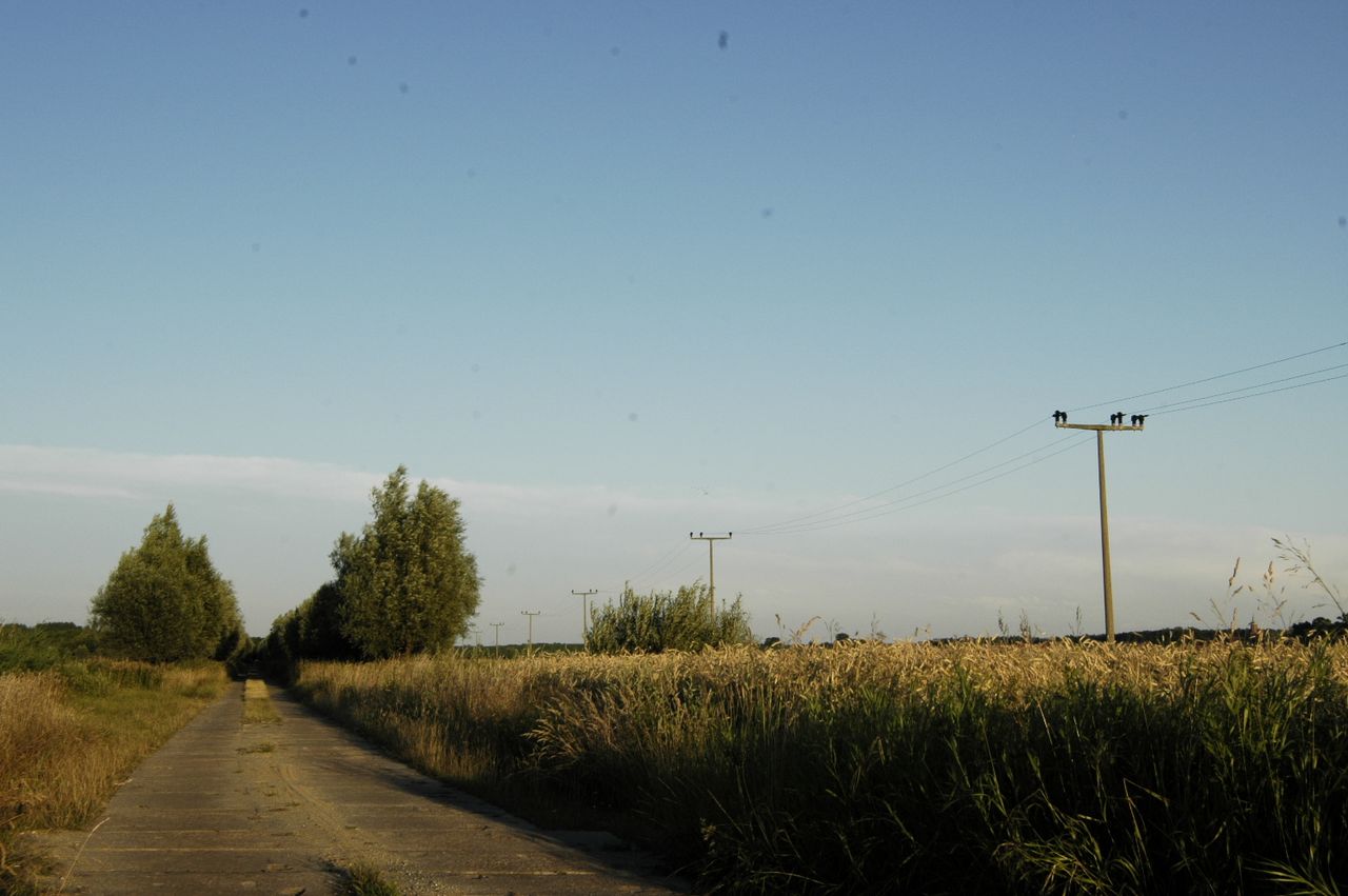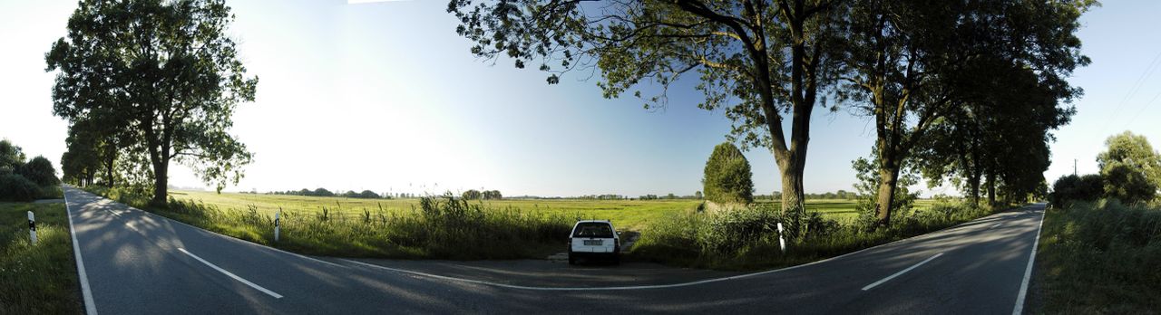 Idyllische Landschaft im Havelland mit Feldwegen und einer neu geteerten Allee