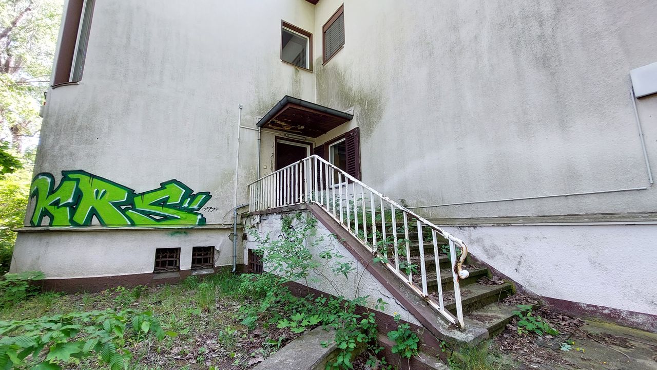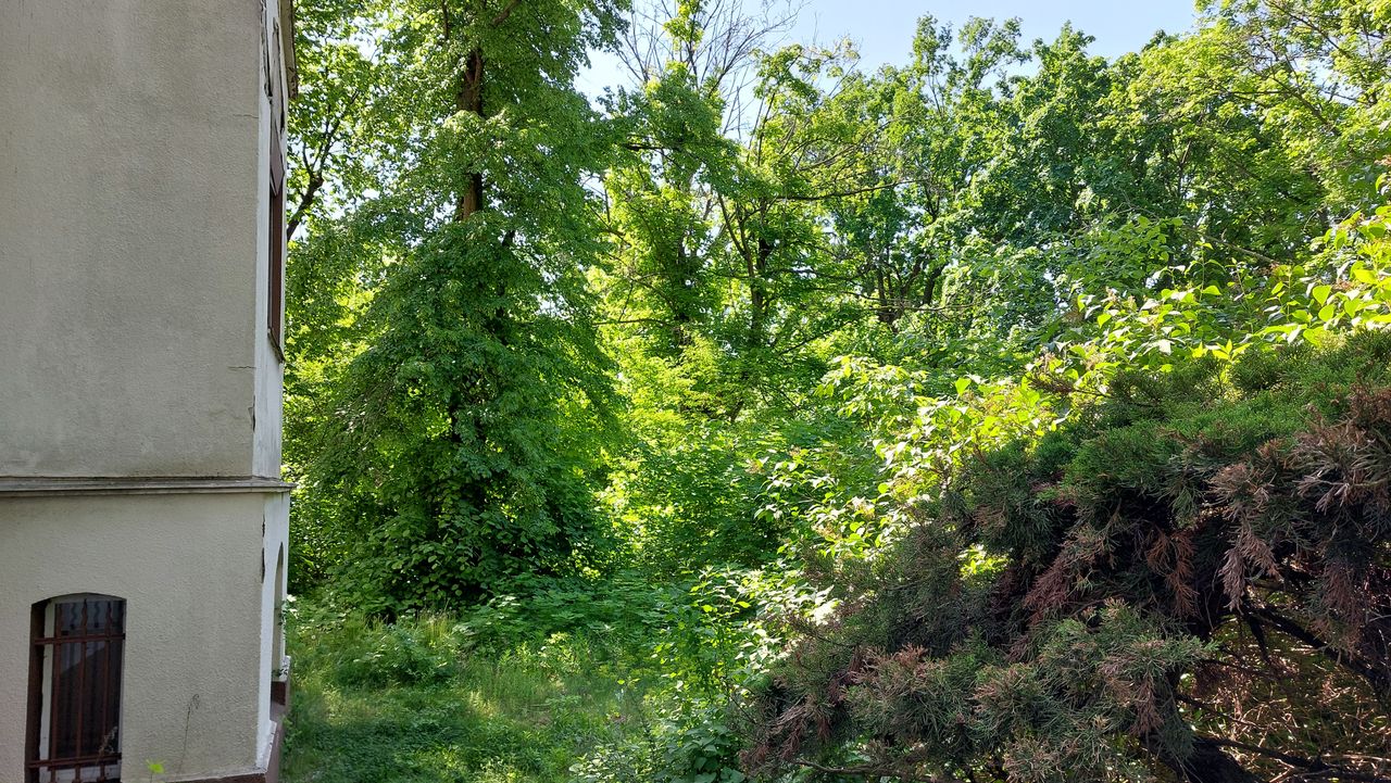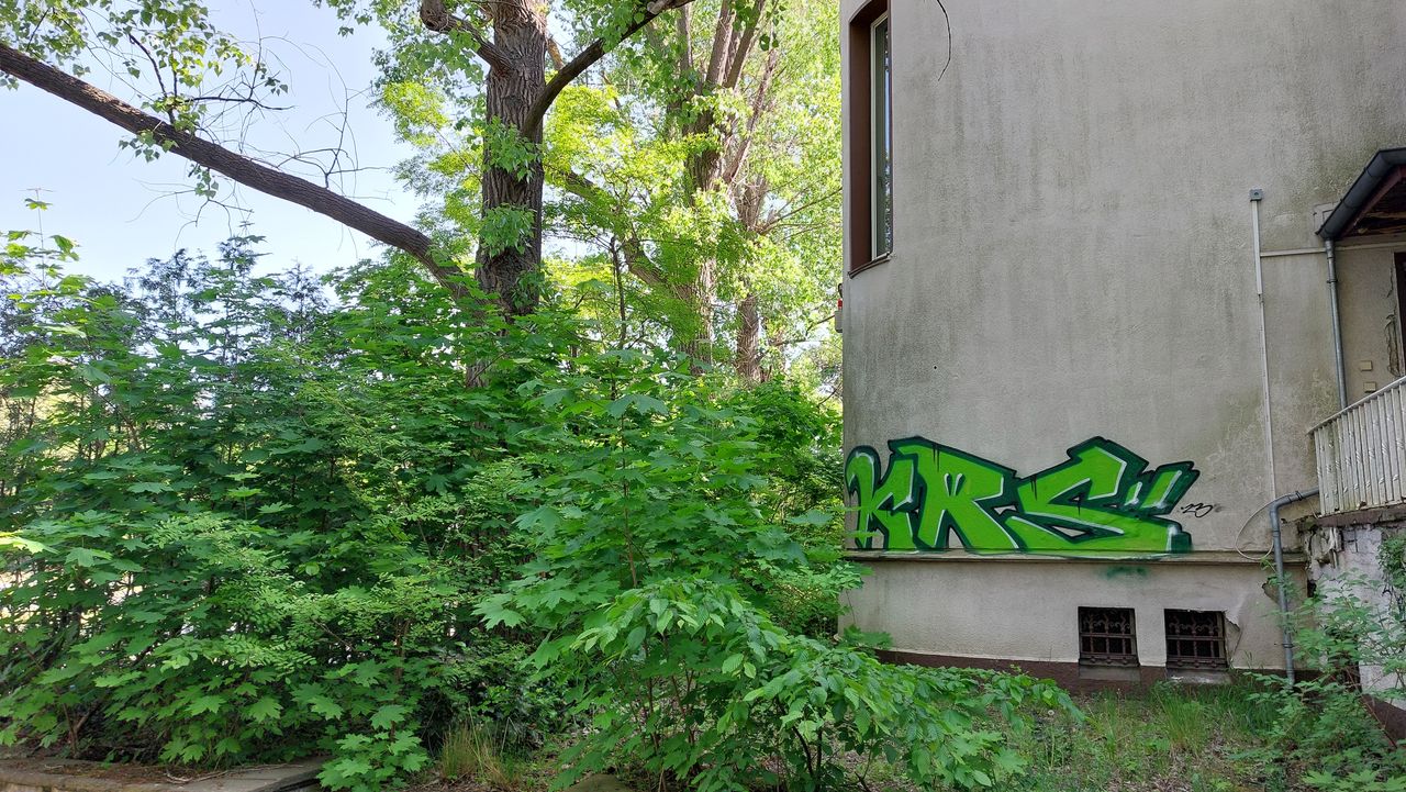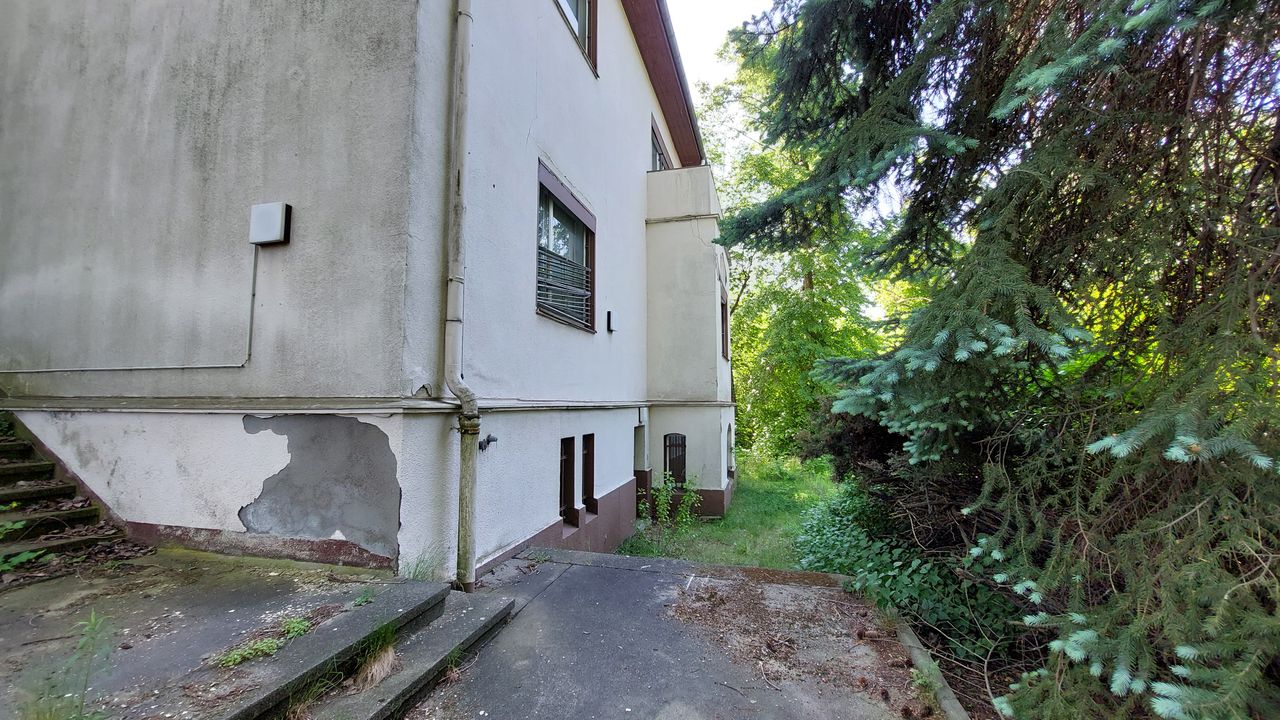 Die Außenanlagen wurden sichtbar schon seit einiger Zeit keiner Grünflächenpflege mehr unterzogen. Das Grundstück ist mit Gestrüpp überwuchert. Baum- und Grünschnitt erforderlich.