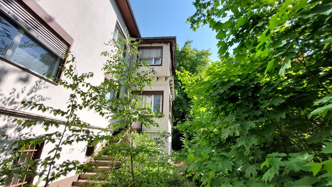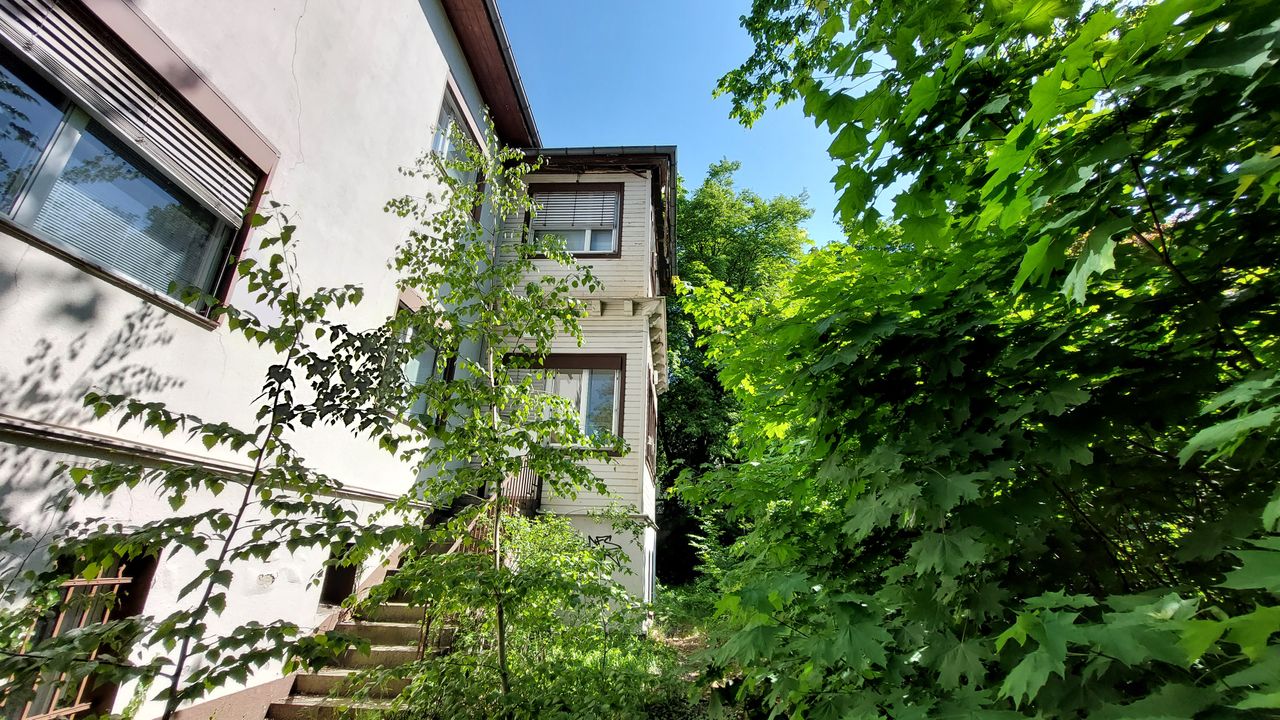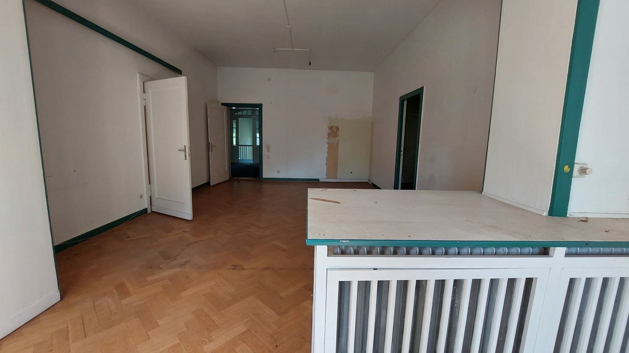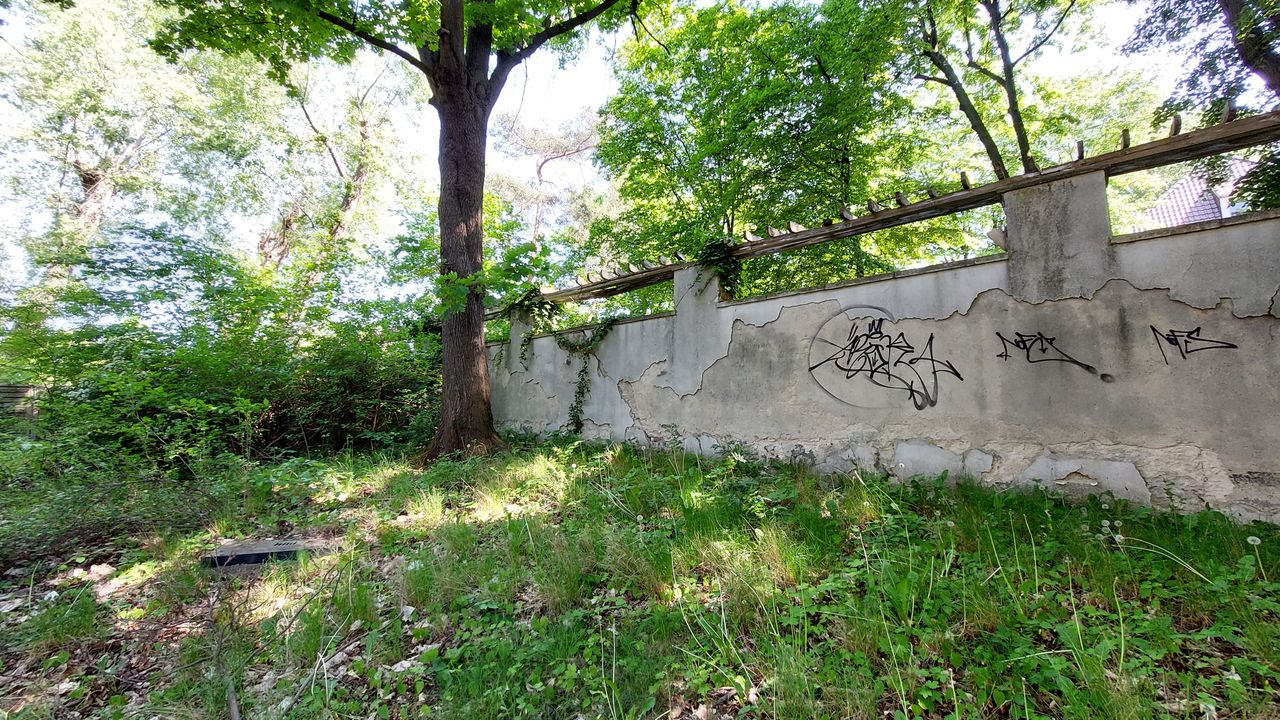 Die Außenanlagen wurden sichtbar schon seit einiger Zeit keiner Grünflächenpflege mehr unterzogen. Das Grundstück ist mit Gestrüpp überwuchert. Baum- und Grünschnitt erforderlich.