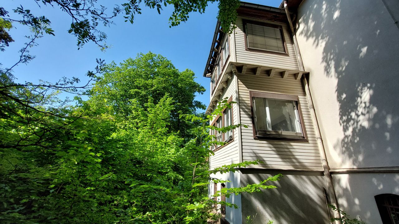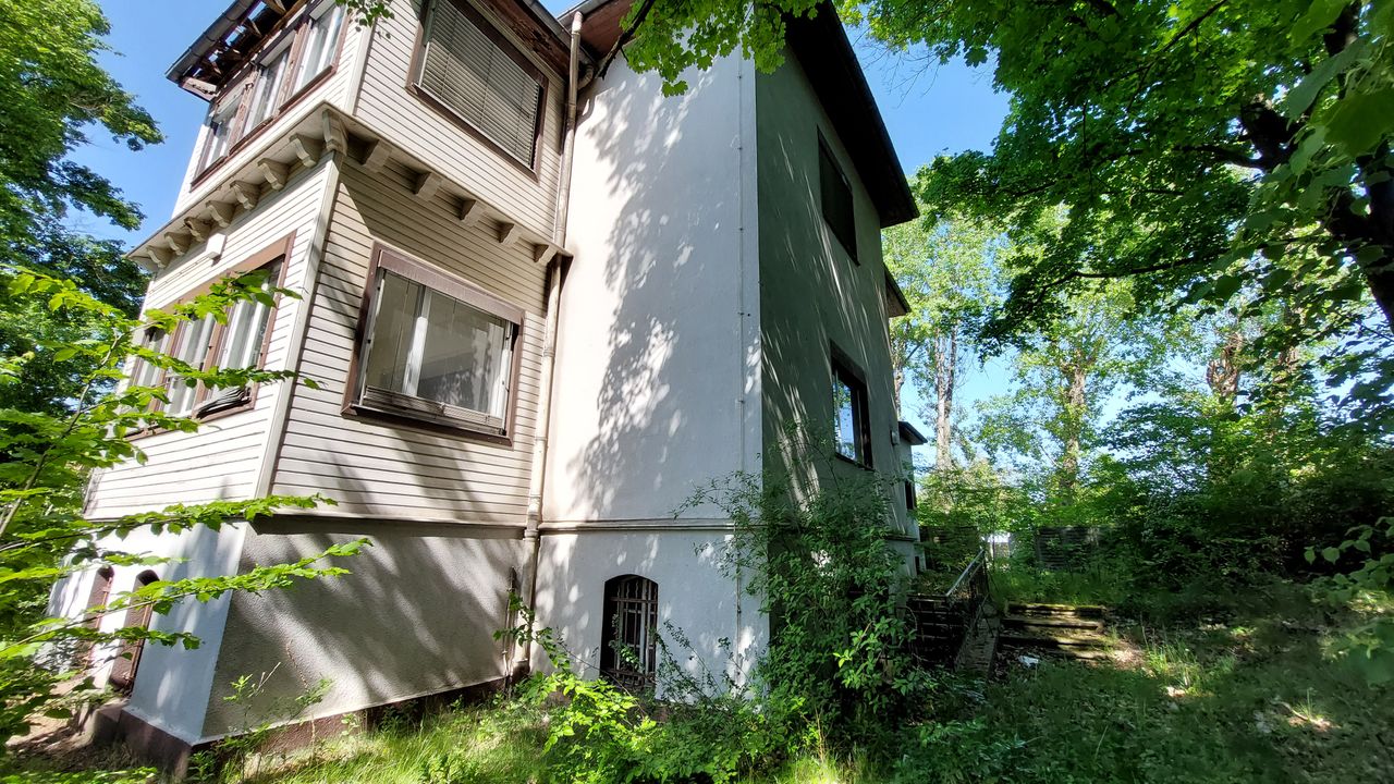 Das Grundstück ist ca. 2.850 m² groß. Das Grundstück ist neben 2 sanierungsbedürftigen Einzelgaragen mit einer denkmalgeschützten Villa (1900 – 1918) bebaut.