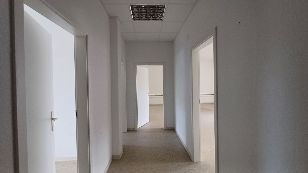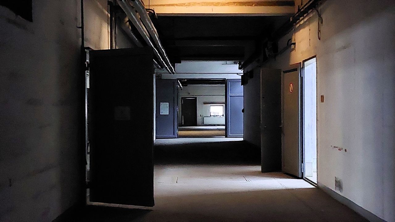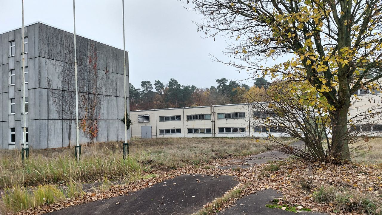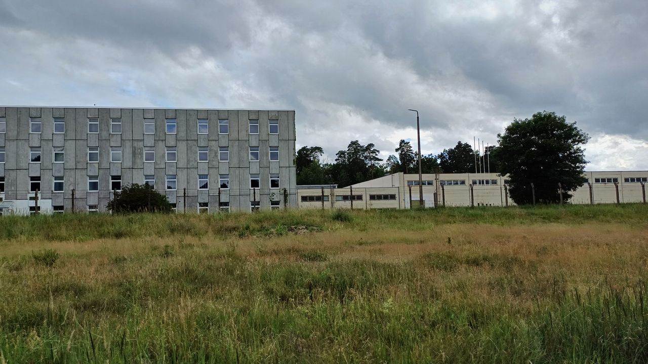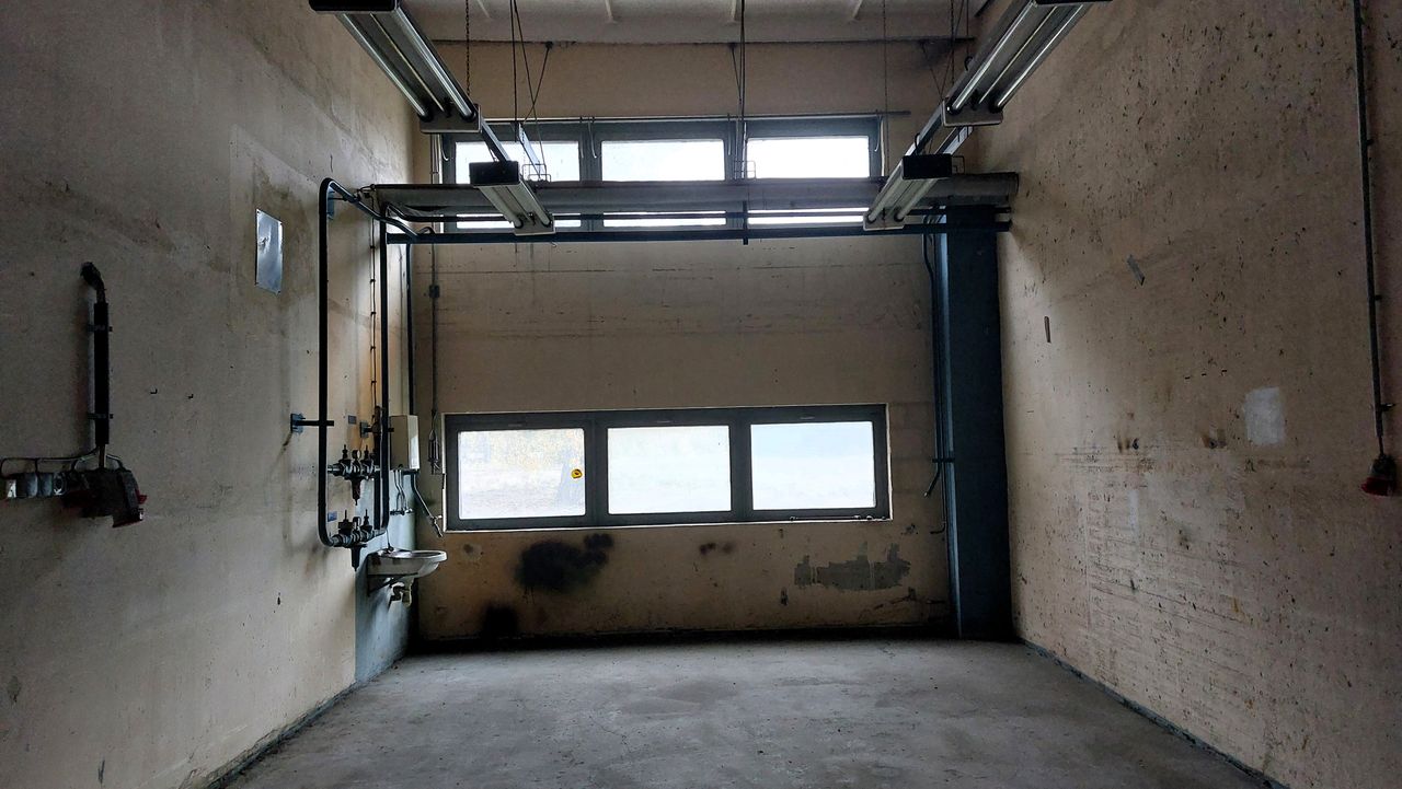 Leerstehendes Bürogebäude mit langen Fluren und diversen Produktionshallen auf abgelegenem Gelände.