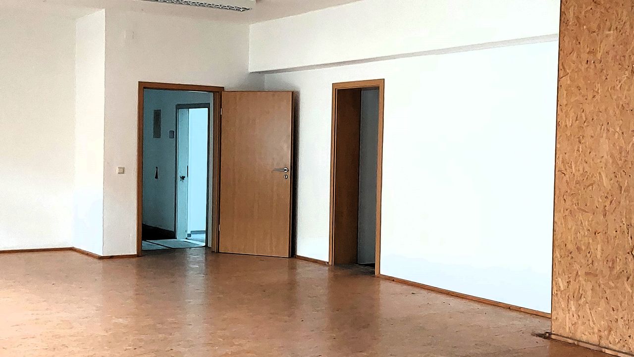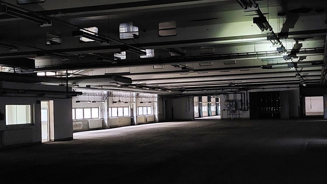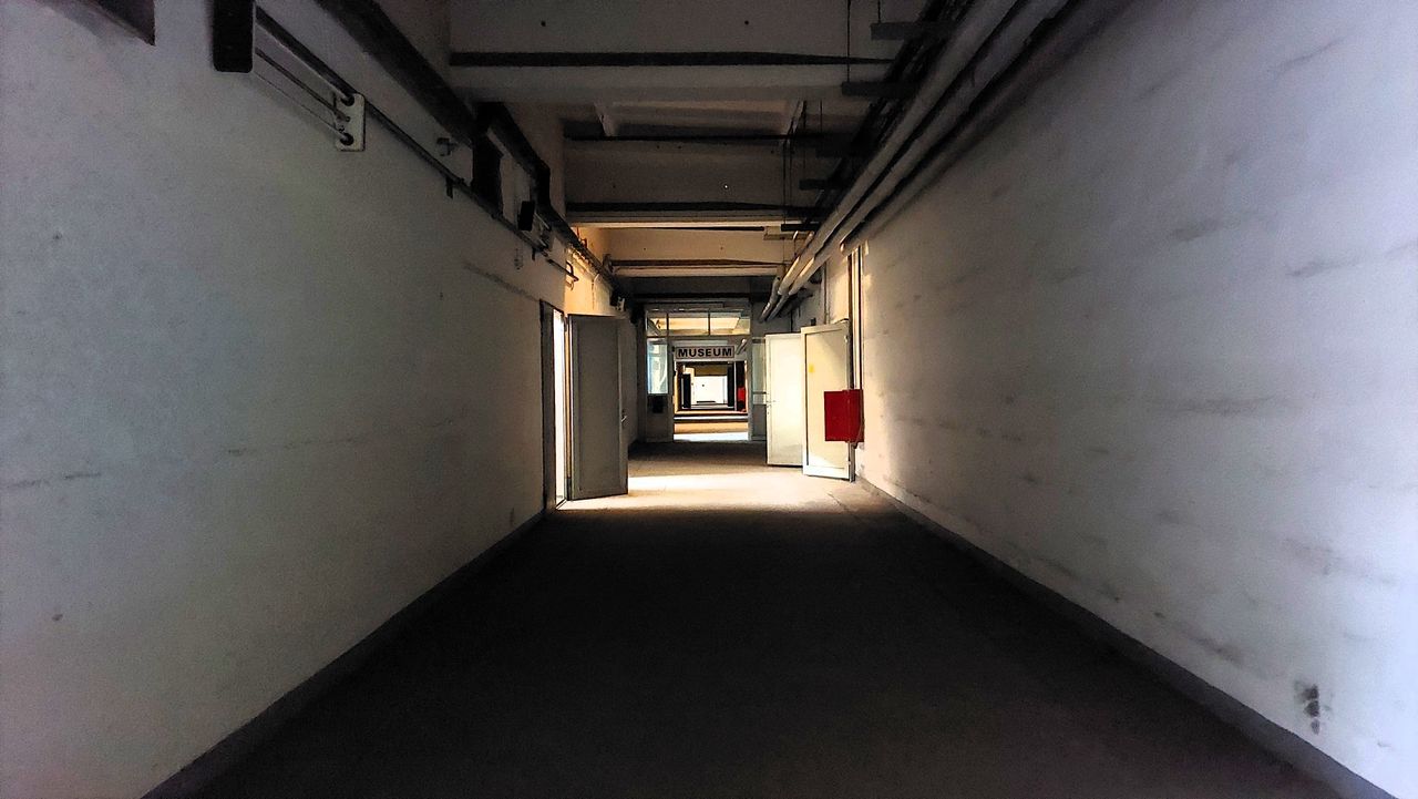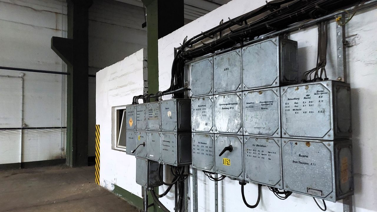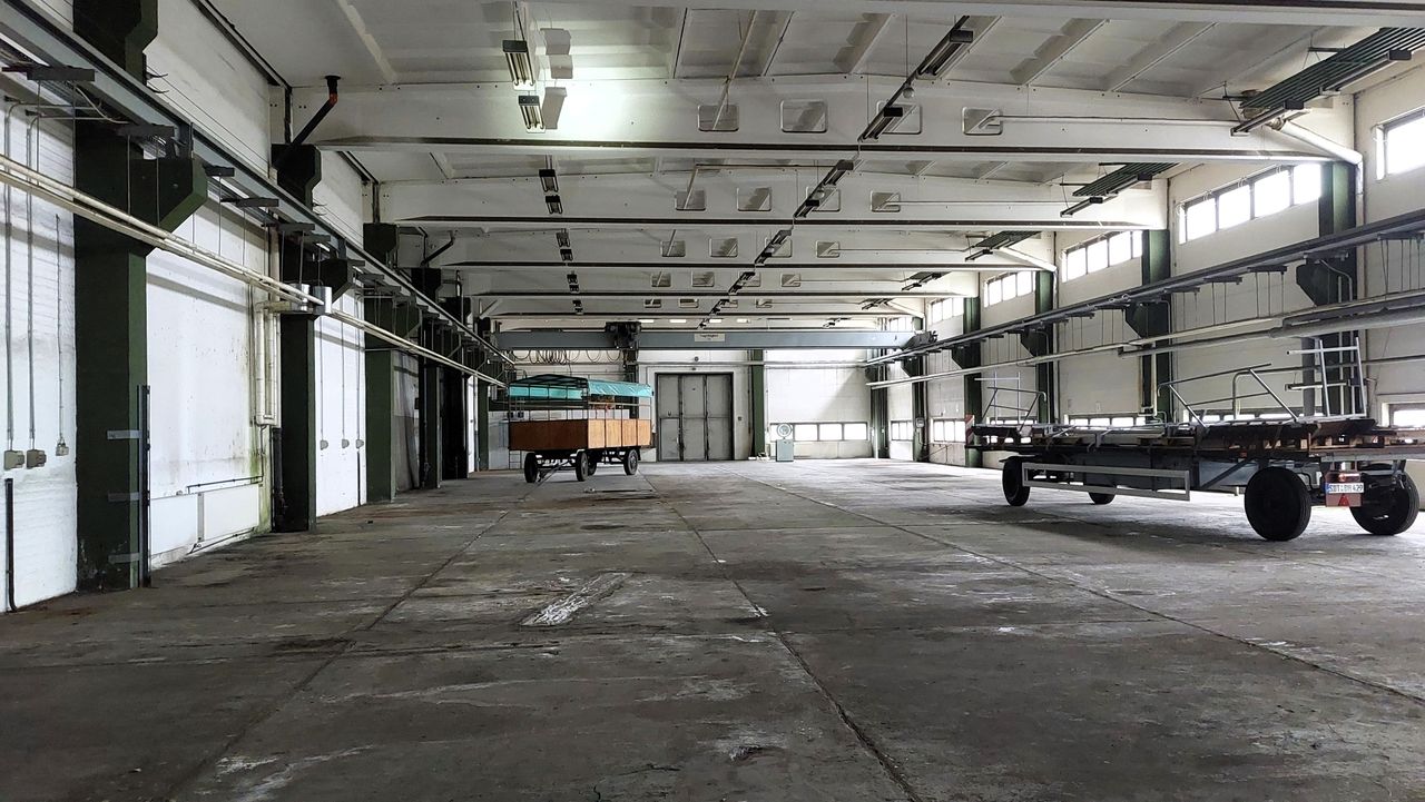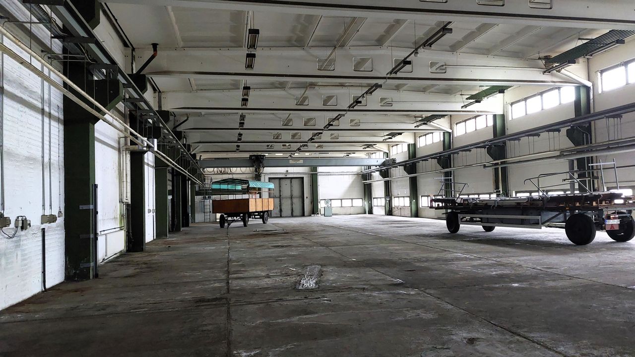 Leerstehendes Bürogebäude mit langen Fluren und diversen Produktionshallen auf abgelegenem Gelände.