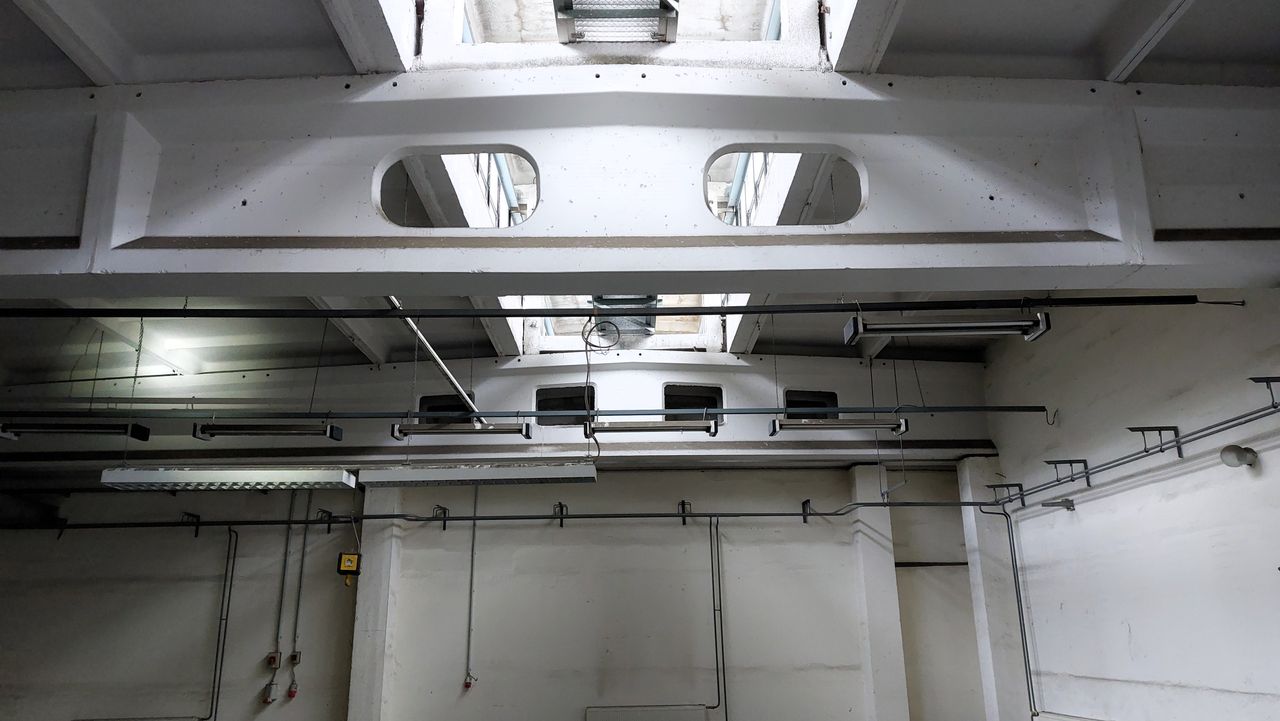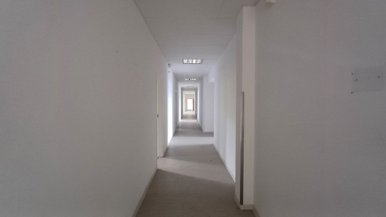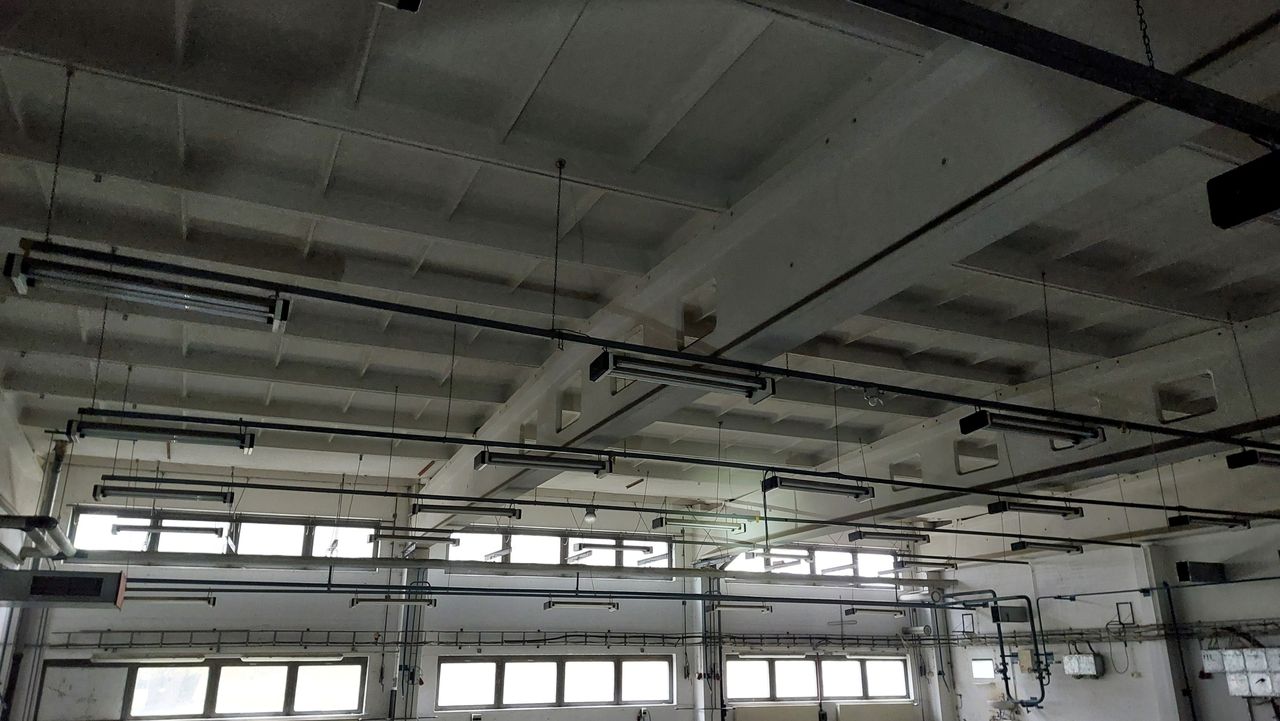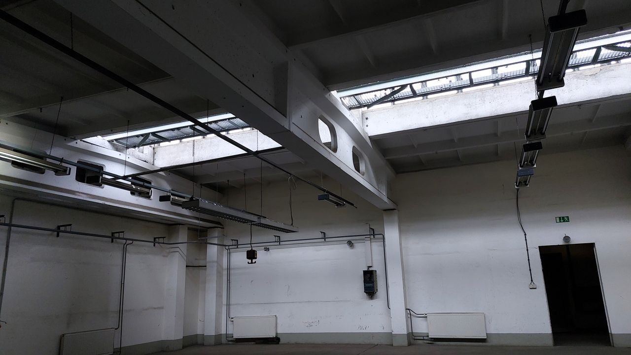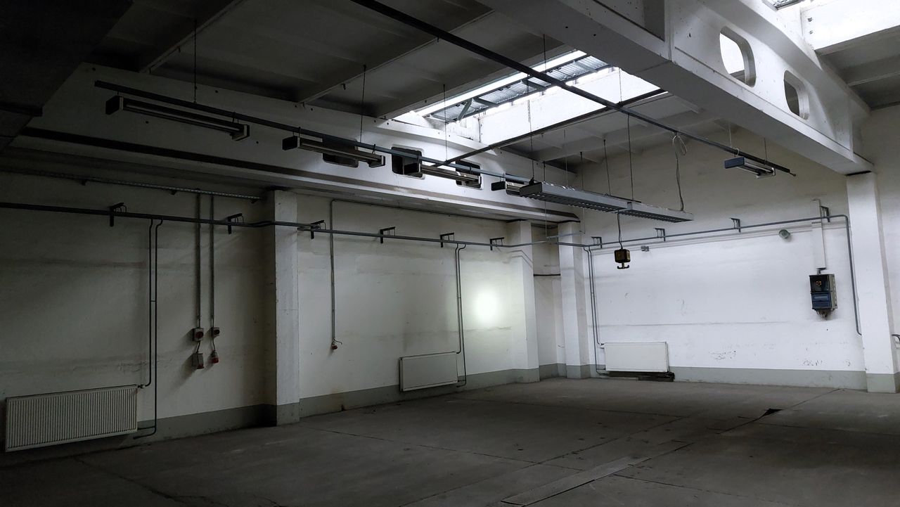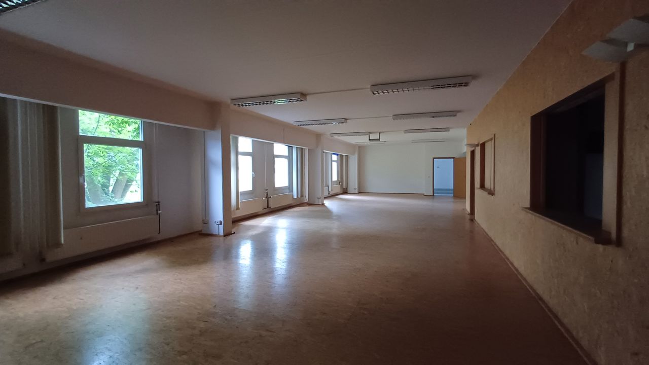 Leerstehendes Bürogebäude mit langen Fluren und diversen Produktionshallen auf abgelegenem Gelände.
