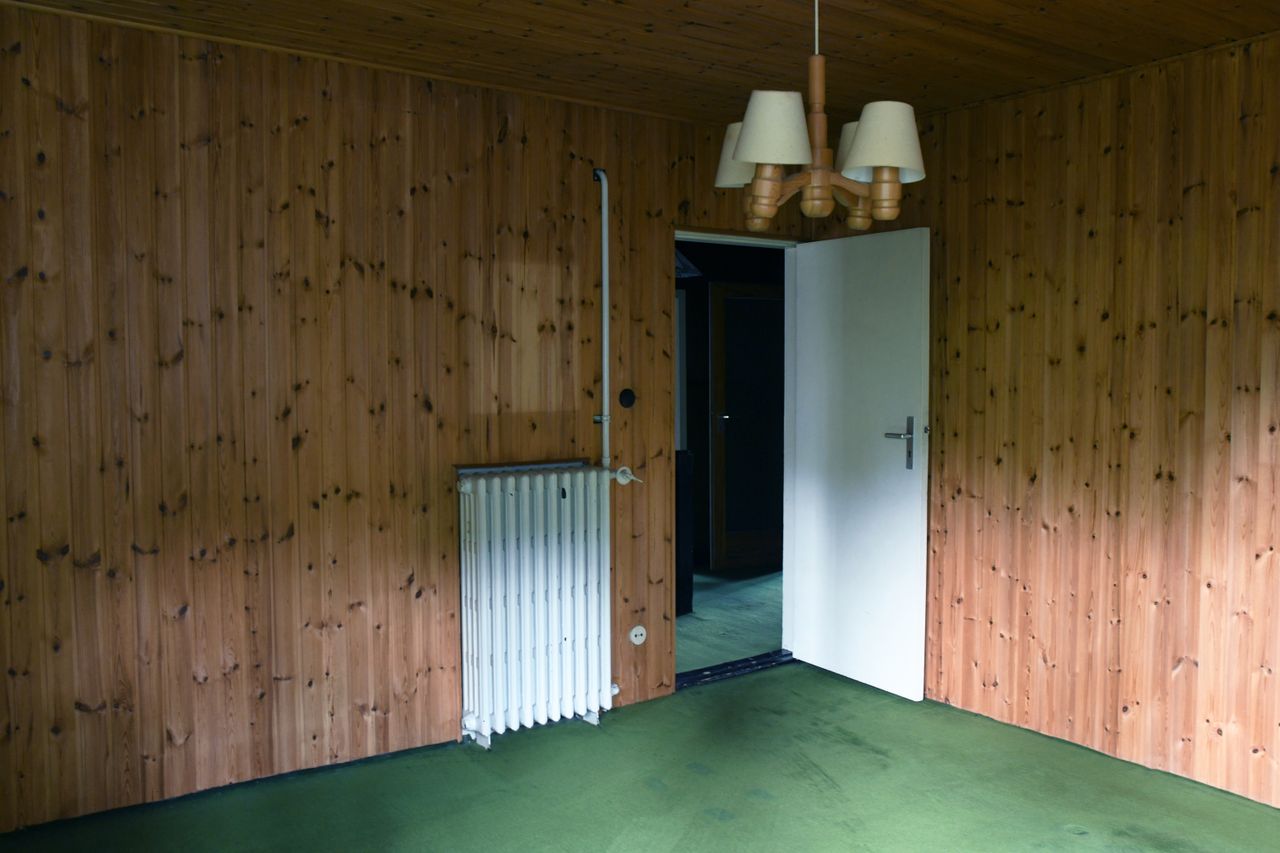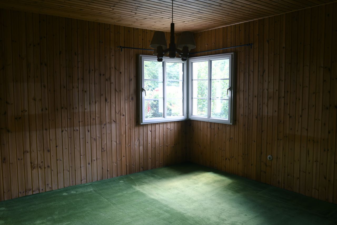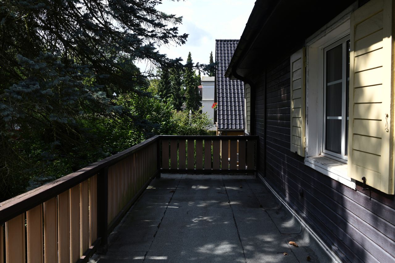 Leerstehendes Holzhaus in Spandau mit verwunschenem Garten. Auf einer Gesamtfläche von 1000 m2 befindet sich das zweietagige Haus, welches eine Wohnfläche von 160 m2 hat. Im Inneren des Hauses ist lange Zeit nicht renoviert worden und man hat ein recht ungebrochenes Gefühl der 50er bis 70er Jahre.