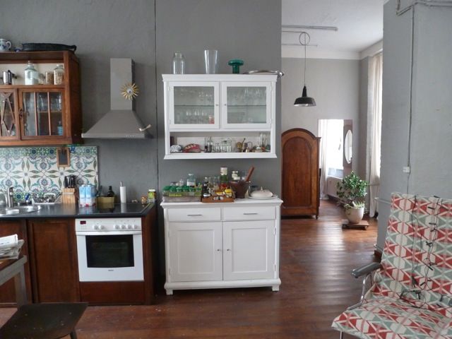 300 qm Loft-Etage, großzügige Aufteilung: Wohnung mit großer Bibliothek ( 3 x 4 m), Wohnung, Küche und Officebereich gehen ineinander über, Lastenaufzug fährt direkt in die Wohnung, riesige Küche individuell gestaltet, schöne orientalische Fliesen, viel Platz, riesige Fenster (20er Jahre), hell,