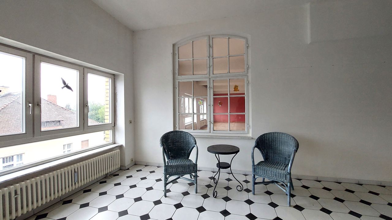 Die Location befindet sich in Obergschoß einer ehemaligen Tuchfabrik. Fahrstuhl vorhanden.