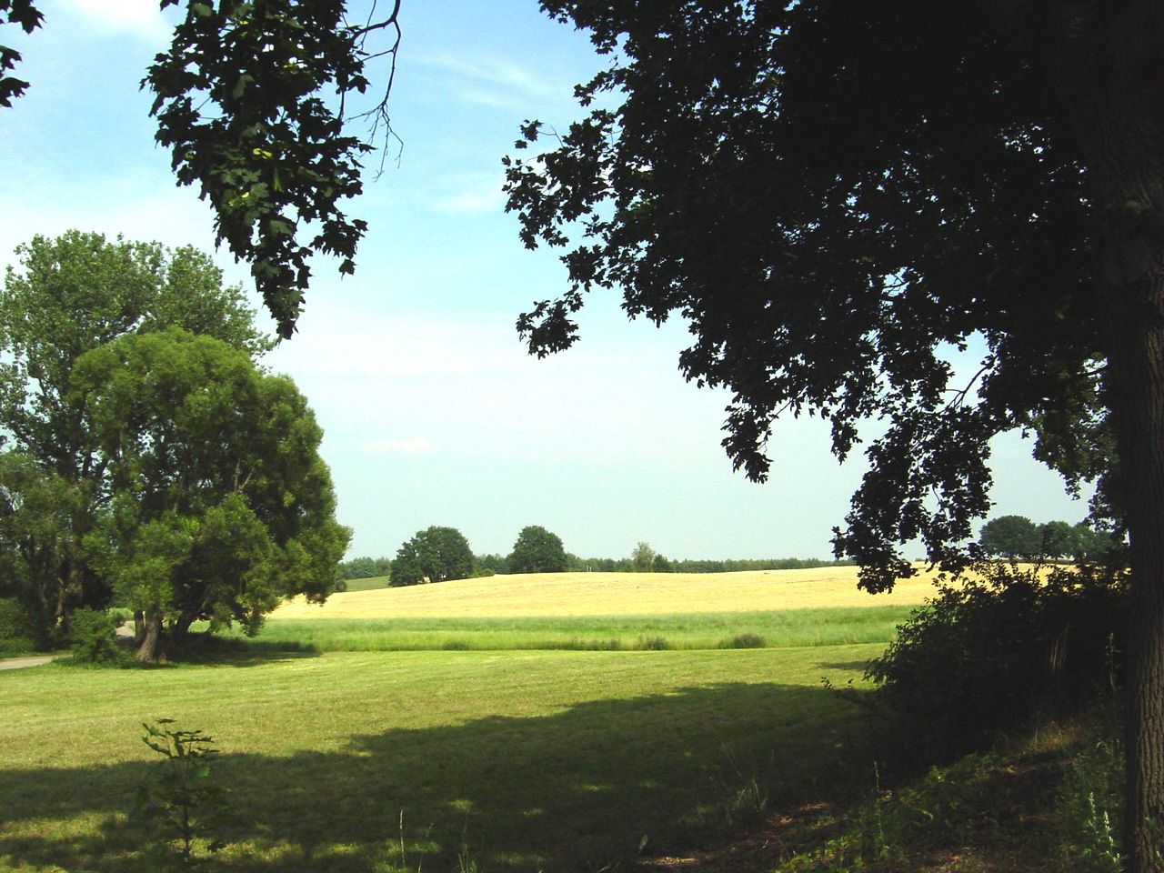 Die Aue in Lübars ist die einzige der zahlreichen Dorfauen Berlins, die tatsächlich noch im Mittelpunkt eines dörflichen Geschehens liegt. Ein Barockkirchlein von 1793, ein Feuerwehrhaus, das Schulhaus mit schönem Bauerngarten und alte Eichen, Eschen, Kastanien und Maulbeerbäume bilden das kleine Auenrund. Darum liegen in engem Kreis Reiterhöfe, einstöckige Bauernhäuser mit klassizistischen Stuckfassaden, ein strohgedecktes Kossätenhaus, der große, alte Dorfkrug und der „Labsaal“, ein schöner, historischer Gasthaussaal, der als Veranstaltungsort dient, und dessen Programm sich zu kennen lohnt, wenn man Lübars besuchen will. Nach Norden geht der Blick über Pferdekoppeln hinunter in das Tegeler Fließ, eine eiszeitliche Abflussrinne, die sich vom Höhenzug des Barnim bis zum Tegeler See hinzieht. In großen Schleifen durchfließt ein Wiesenbach das mit schönen Wegen erschlossene und unter Vogelkundlern sehr beliebte Tal. Wer Lübars nach Osten hin, in Richtung Blankenfelde, verlässt, gelangt auf eine von Bäumen und Feldern gesäumte Chaussee, deren Wirkung auf den landschaftshungrigen Großstädter geradezu überwältigend ist