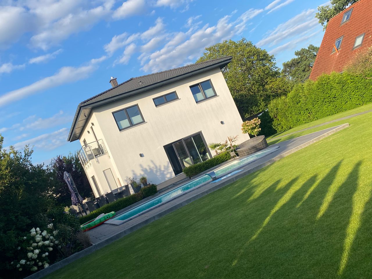 Es handelt sich um eine moderne Stadtvilla (Baujahr 2019) mit einer Wohnfläche von ca. 190 m², gelegen im ruhigen Randbereich von Berlin-Pankow. Die Lage zeichnet sich durch eine besonders angenehme Mischung aus guter Erreichbarkeit und absoluter Ruhe aus: Auf einer Seite befinden sich lediglich zwei bis drei Nachbarhäuser, während die andere Seite direkt an ein freies Feld grenzt. Dadurch sind ungestörte Dreharbeiten jederzeit gut umsetzbar.