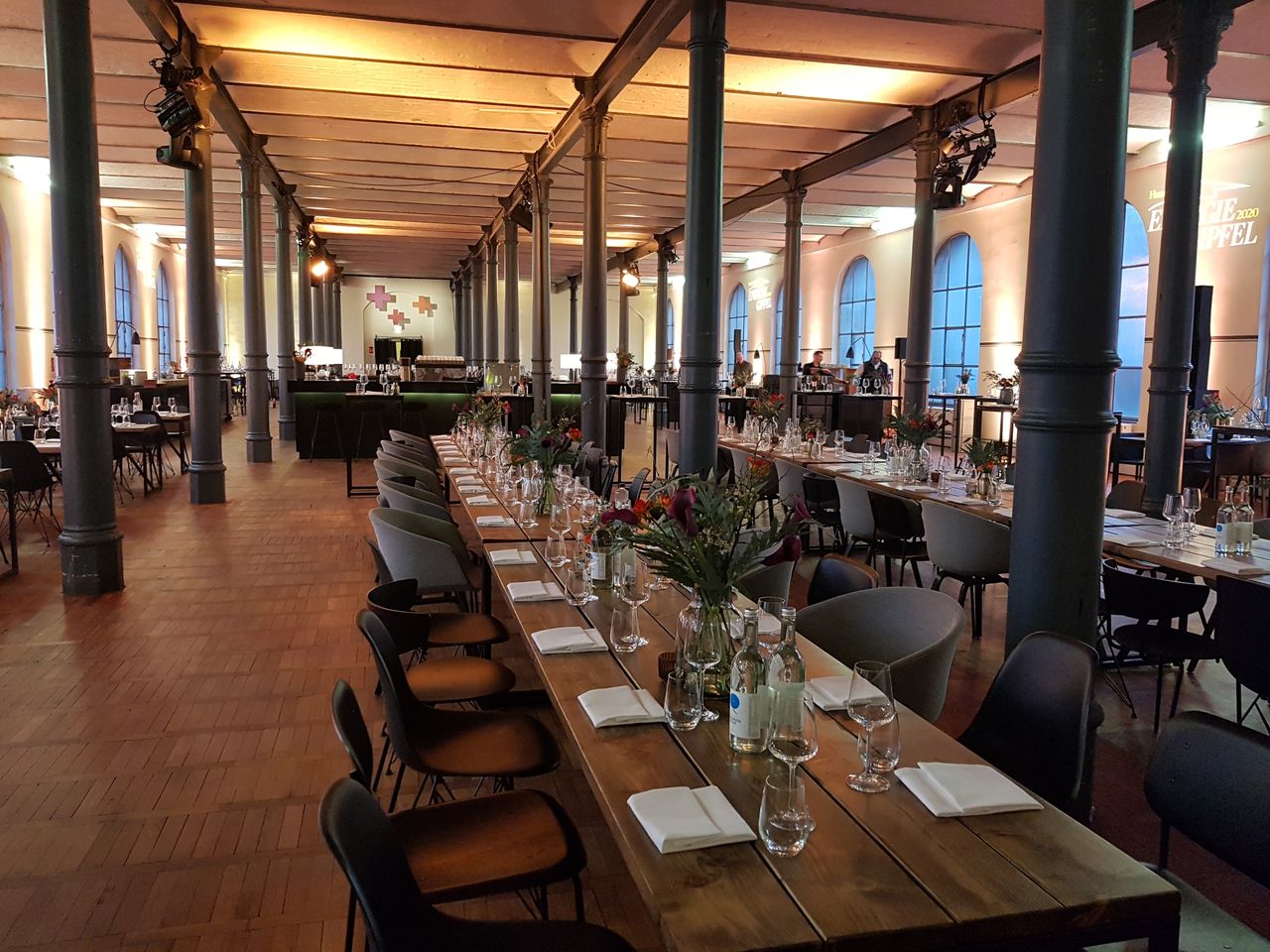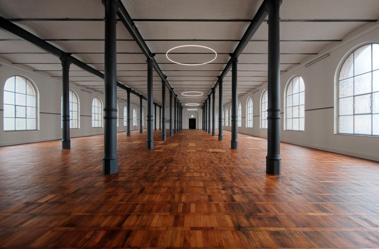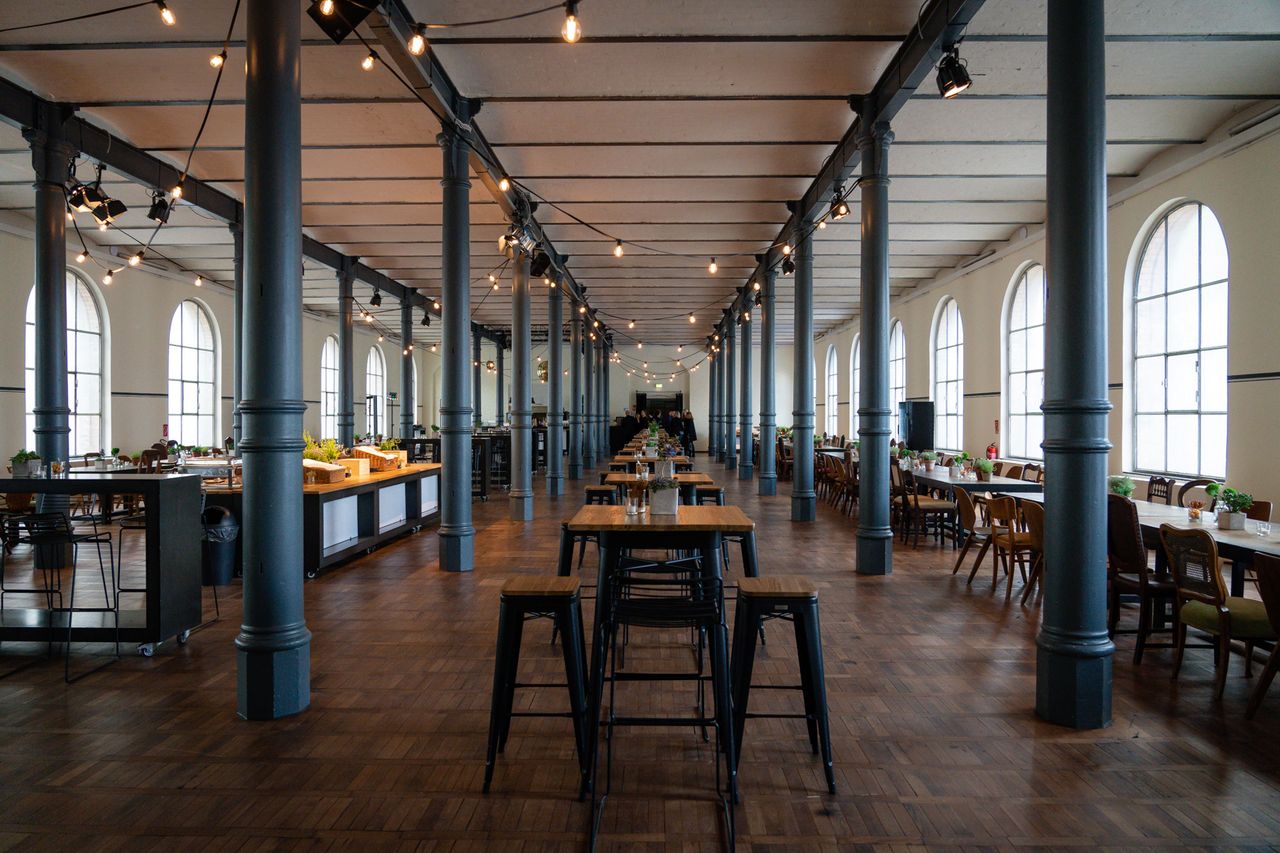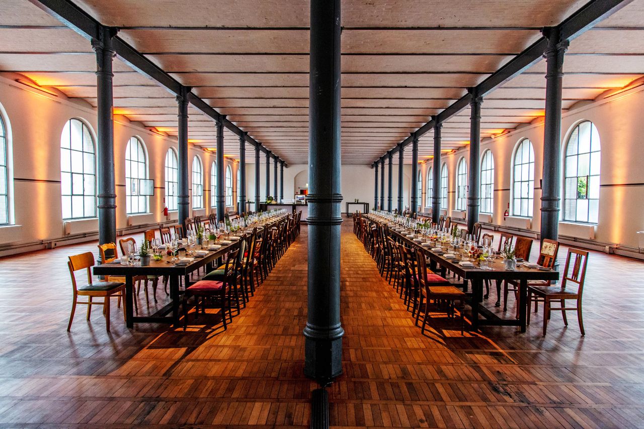 Die Heeresbäckerei in Berlin Kreuzberg ist ein beeindruckendes Industriedenkmal an der Spree. Das Backsteingebäude hat sich seine Substanz über die Jahre bewahrt. Gusseiserne Stützen tragen eine fünf Meter hohe Kappendecke, das Parkett ist aus alter Rotbuche, tiefe Rundbogenfenster öffnen den Raum zum Licht.