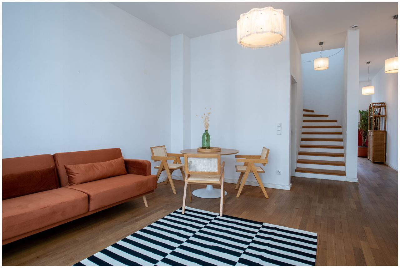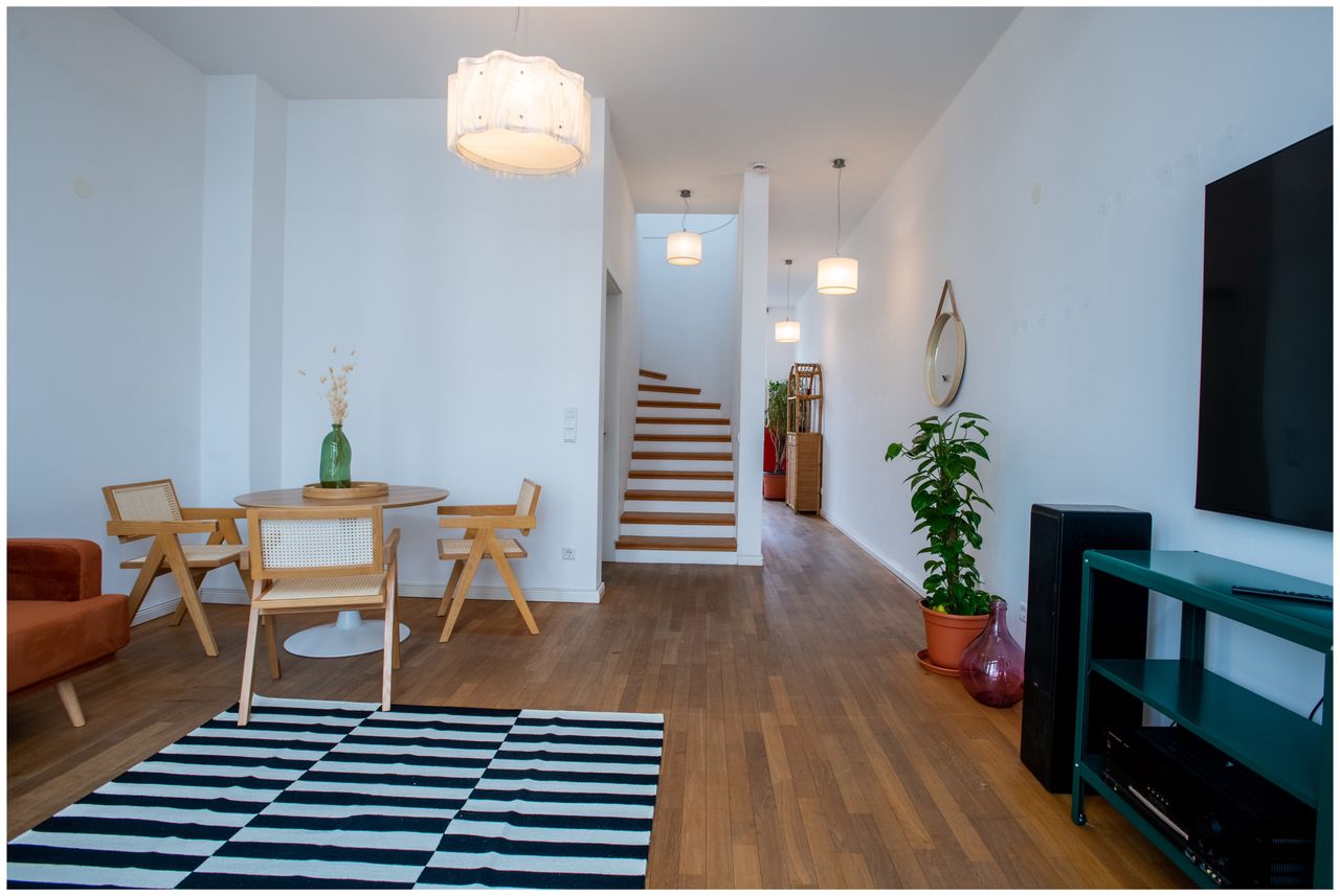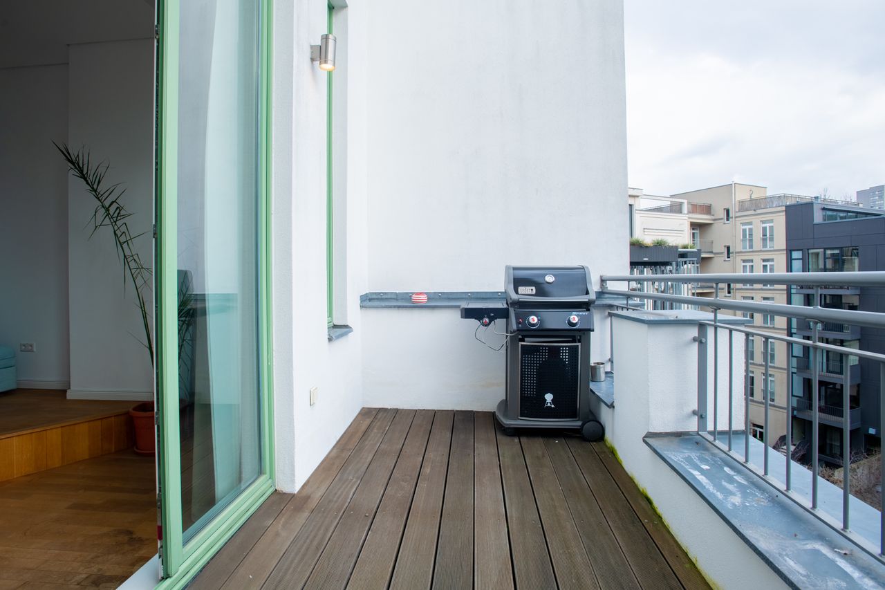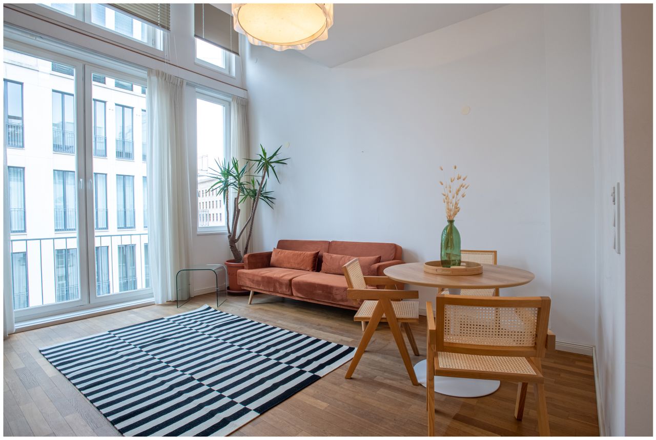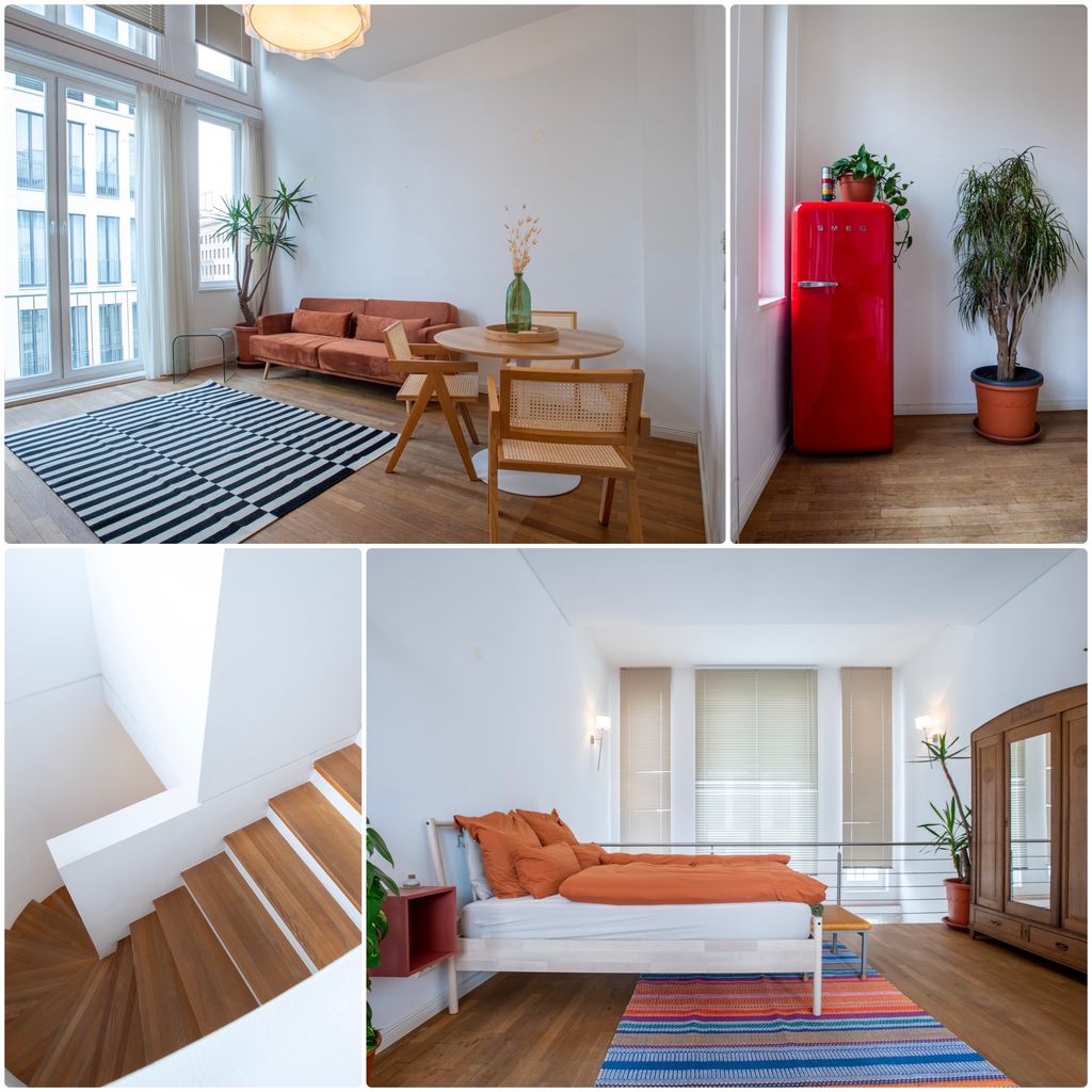 Willkommen in unserem luxuriösen Maisonette-Penthouse, das sich im Herzen der Stadt am Gendarmen Markt befindet und den perfekten Ausgangspunkt für Ihren Aufenthalt bietet. Diese atemberaubende Wohnung erstreckt sich über zwei Etagen und verfügt über moderne Annehmlichkeiten, eleganten Komfort und einen kompletten Hausrat, der Ihren Aufenthalt so angenehm wie möglich gestaltet.