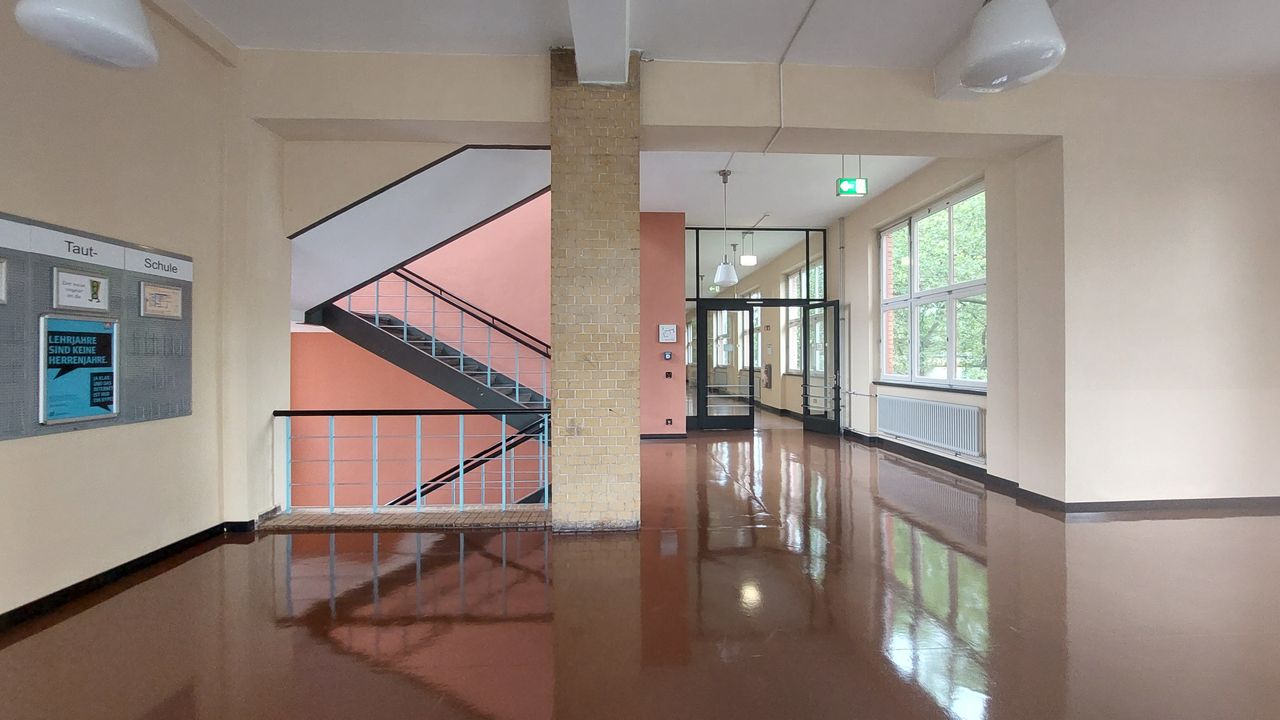 Die Max Taut Schule ist ein Denkmal der Klassischen Moderne. Der denkmalgeschützte Schulkomplex an der Schlichtallee und Fischerstraße wurde 1927 bis 1932 errichtet und zählt zu den größten Schulbauprojekten der Weimarer Republik. Die Aula - schon von Max Taut als öffentlicher Veranstaltungssaal konzipiert – wurde im Zweiten Weltkrieg stark beschädigt,. 2003 bis 2007 wurde die Aula restauriert und mit moderner Technik ausgestattet, so dass sie - obwohl sie zum Oberstufenzentrum gehört - wieder nach dem Unterricht, am Wochenende und in den Ferien für öffentliche Veranstaltungen genutzt werden kann. Dreharbeiten sind in der Aula aber auch nach Absprache in den Fluren und Klassenzimmern der Schule möglich.