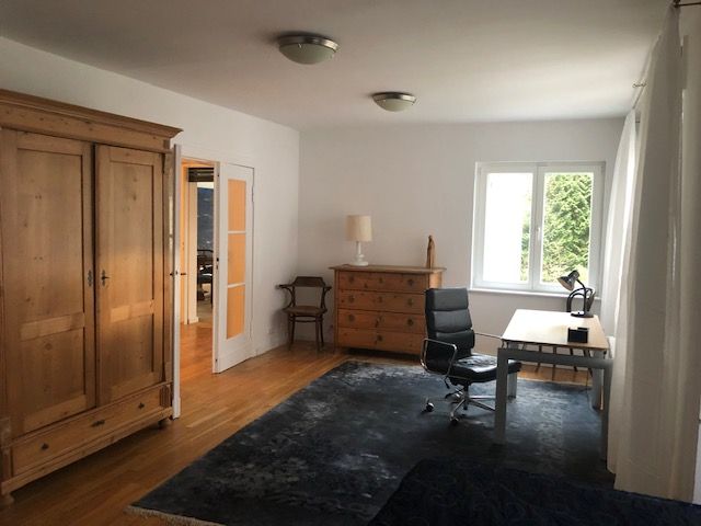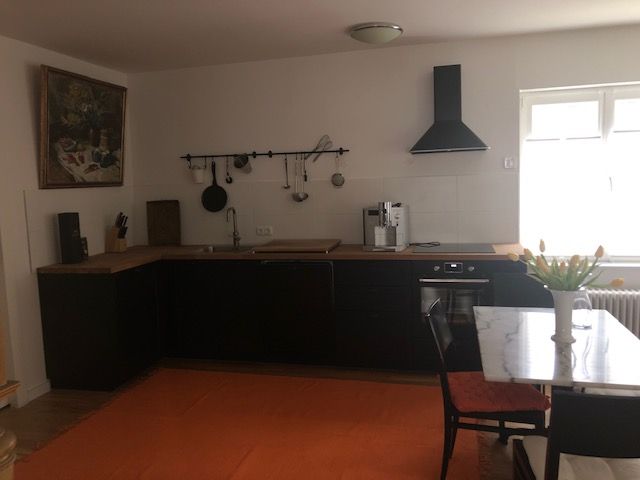 Komplett saniertes Haus aus den frühen dreißiger Jahren. Zur Verfügung steht die Belle Etage mit Wohnküche, Wohnzimmer, Badezimmer, Terasse und Blick nach hinten in den Garten und Natur. Das Wohnzimmer hat französische Fenster.