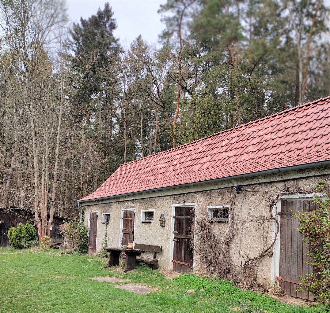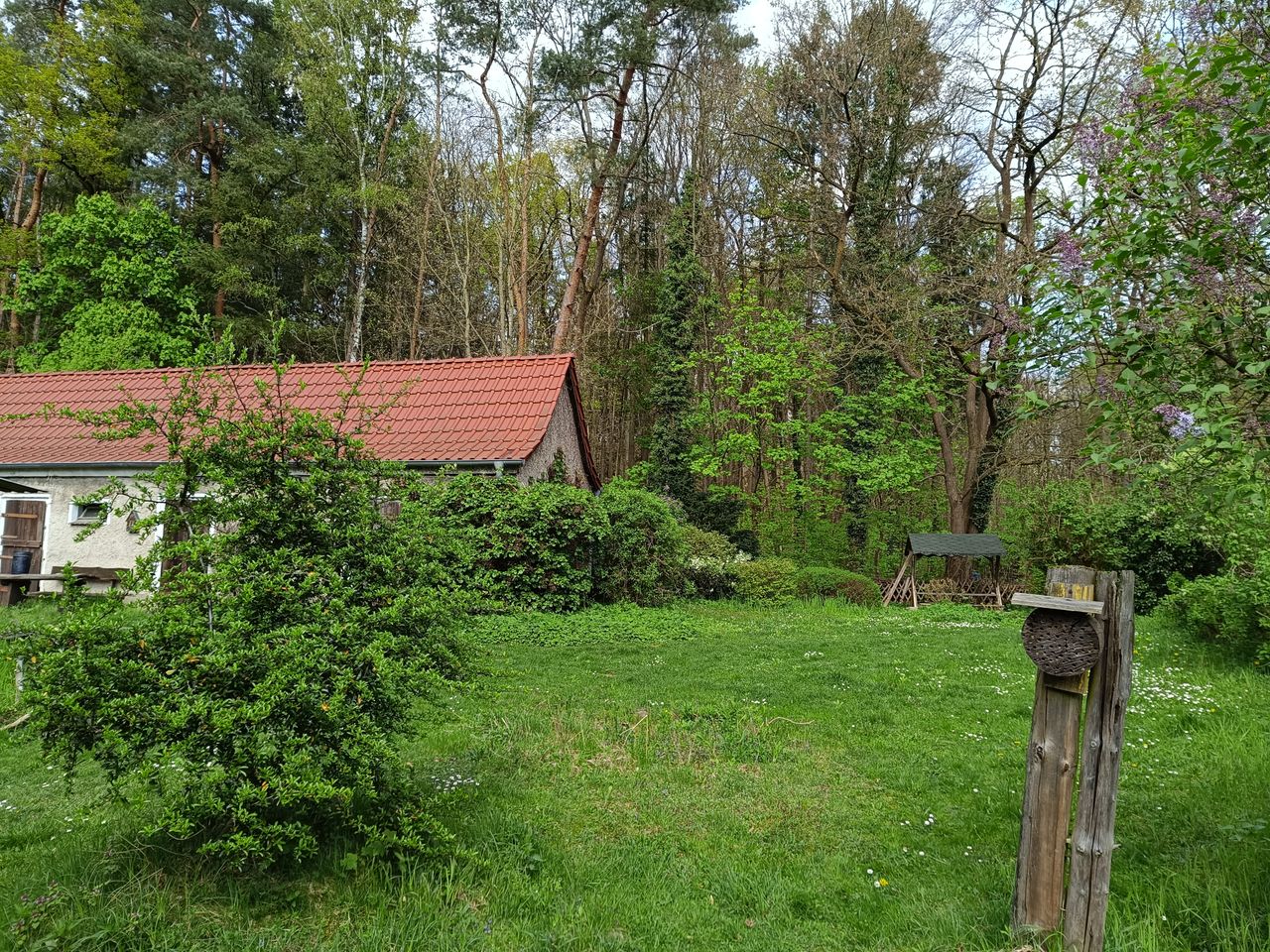 Haus mit Grundstück befinden sich abgelegen von einer Ortschaft, keine nachbarschaftlichen Grundstücke bzw. Häuser - umgeben von Wald. Es ist ein 3.500 Quadratmeter großes Grundstück, sehr naturnah, keine Ziergarten-Anlage, bedacht auf ökologische Vielfalt.