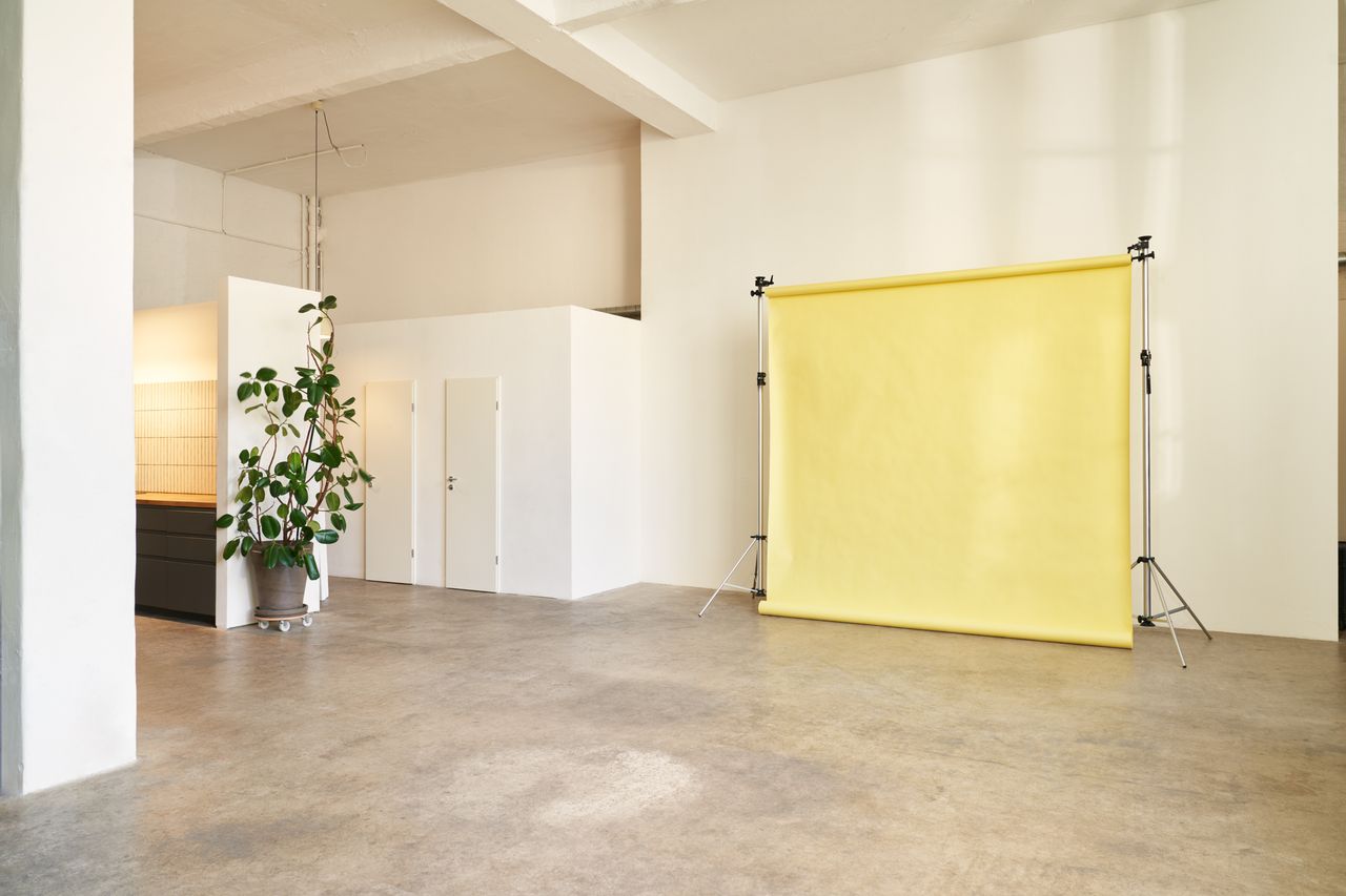 Designed to provide a beautiful, functional space, the 130 m² ground-floor studio features a 4.7 m ceiling and a 5.7-meter-wide white photo wall, bathed in natural daylight that can easily be darkened as needed.