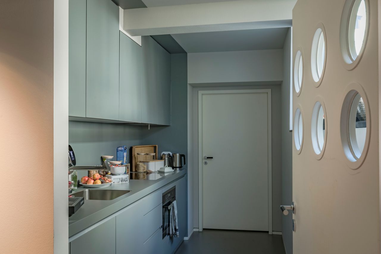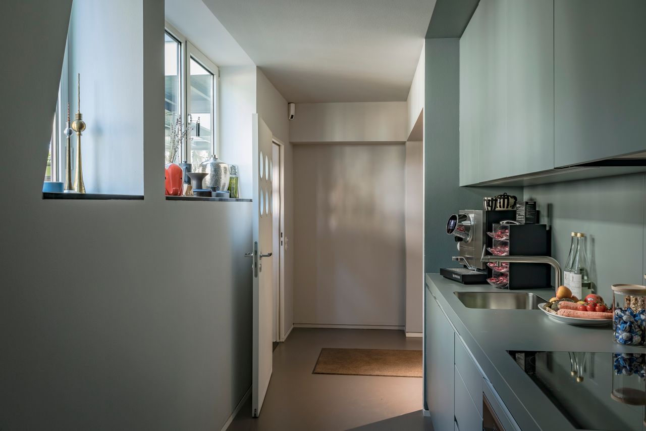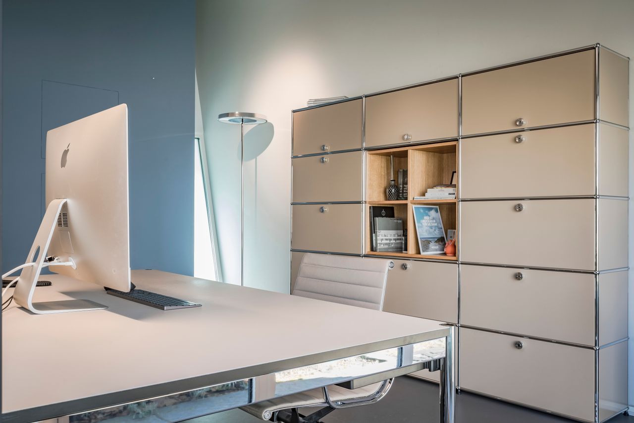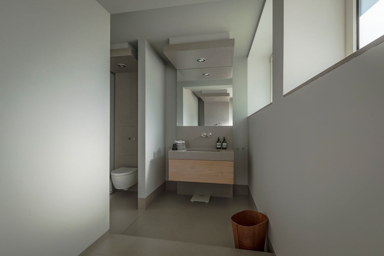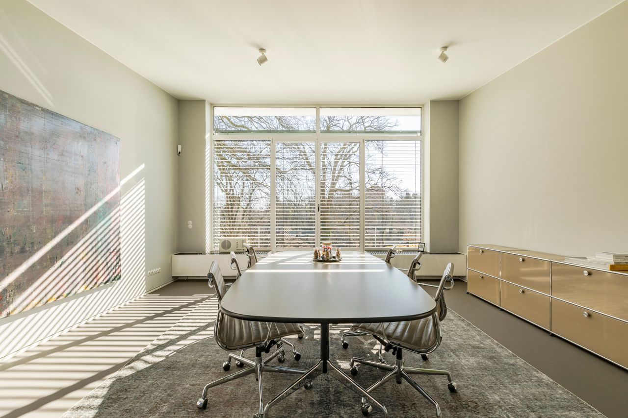 Das Baudenkmal und ehemalige Eternit Gästehaus bietet auf 2 Etagen großzügige, lichtdurchflutete Wohnflächen mit ca. 210 m². Der geöffnete Salon in der oberen Etage mit seinen Terassen schafft durch weite Blickachsen ein beeindruckendes Raumgefühl. Designer-Möbel im Mid-Century-Stil unterstreichen den besonderen Charakter des Hauses und bieten mit Walk-in Dusche, Küche und Kamin eine moderne Repräsentanz. Die Wandfarben sind farbig bzw. hellen Grau – ideal für Filmaufnahmen gestaltet.