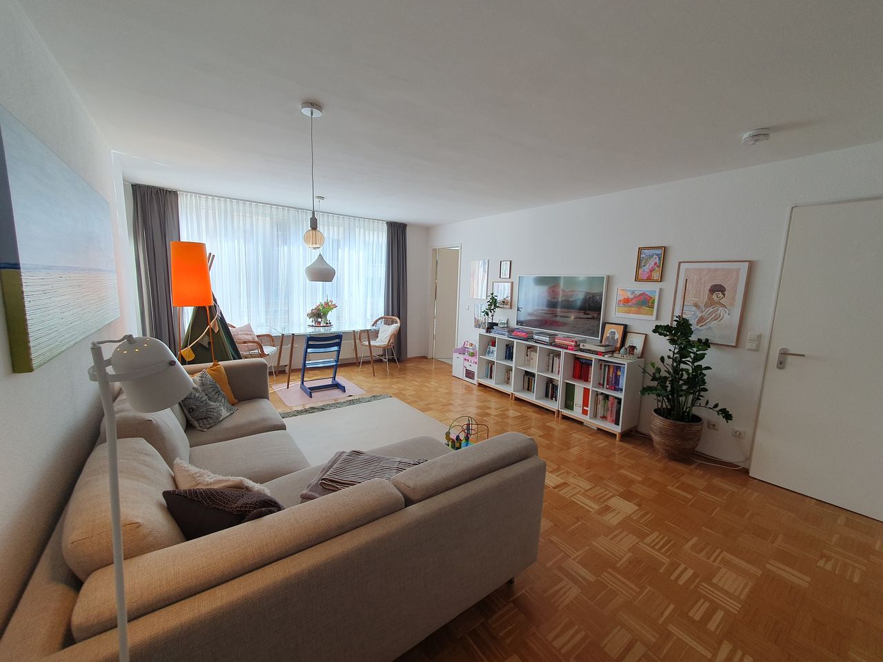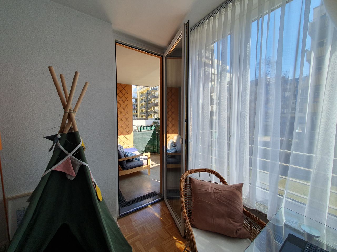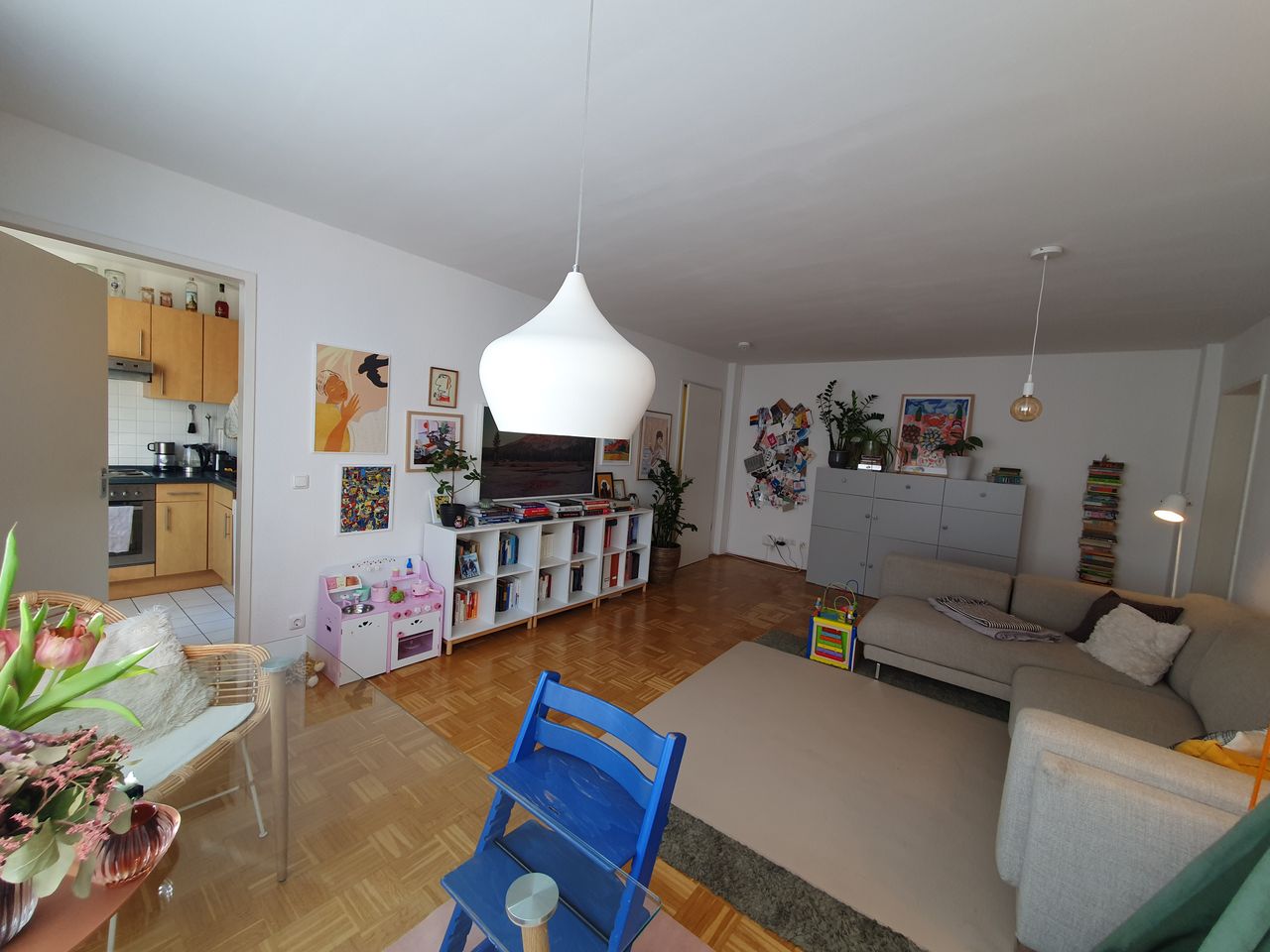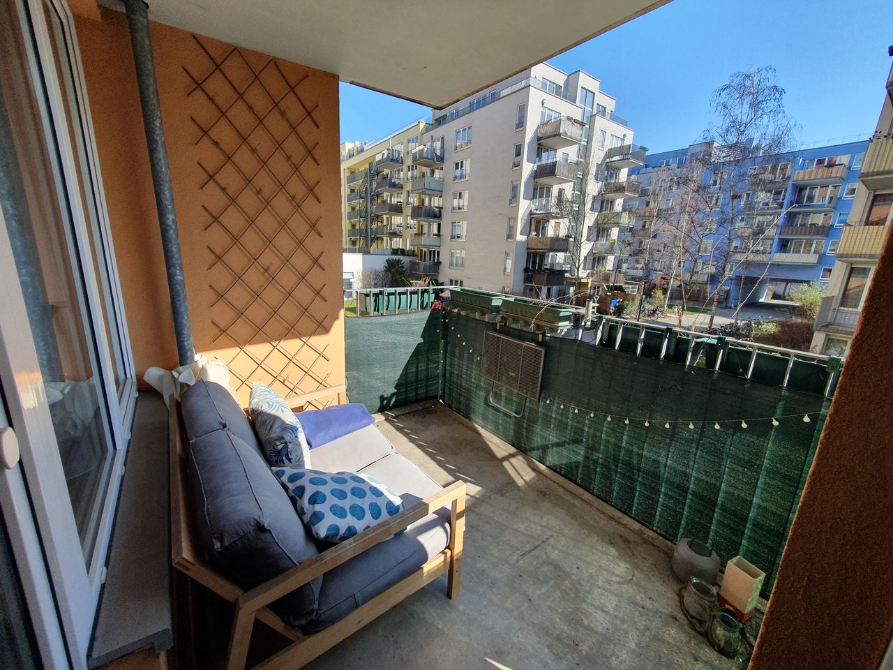 Helle moderne Wohnung in Berlin Mitte zwischen Alexanderplatz und Kottbusser Tor mit sehr guter Anbindung. Zahlreiche Parkplätze befinden sich unmittelbar vor dem Haus, zudem gibt es eine Tiefgarage in unmittelbarer Nähe. In Bezug auf die Wohnung ermöglicht die große Fensterfront im Wohnzimmer einen Blick in den weiten grünen Innenhof. Darüber hinaus verfügt die Wohnung über einen schönen Balkon sowie ein helles Schlafzimmer. Des Weiteren gibt es eine kleine gut ausgestattete Küche sowie ein Bad mit allem, was man braucht und einen abschließbaren Keller zum Verstauen von Gegenständen.