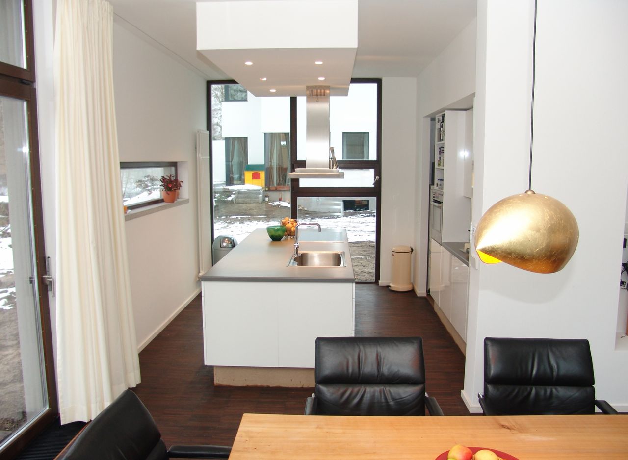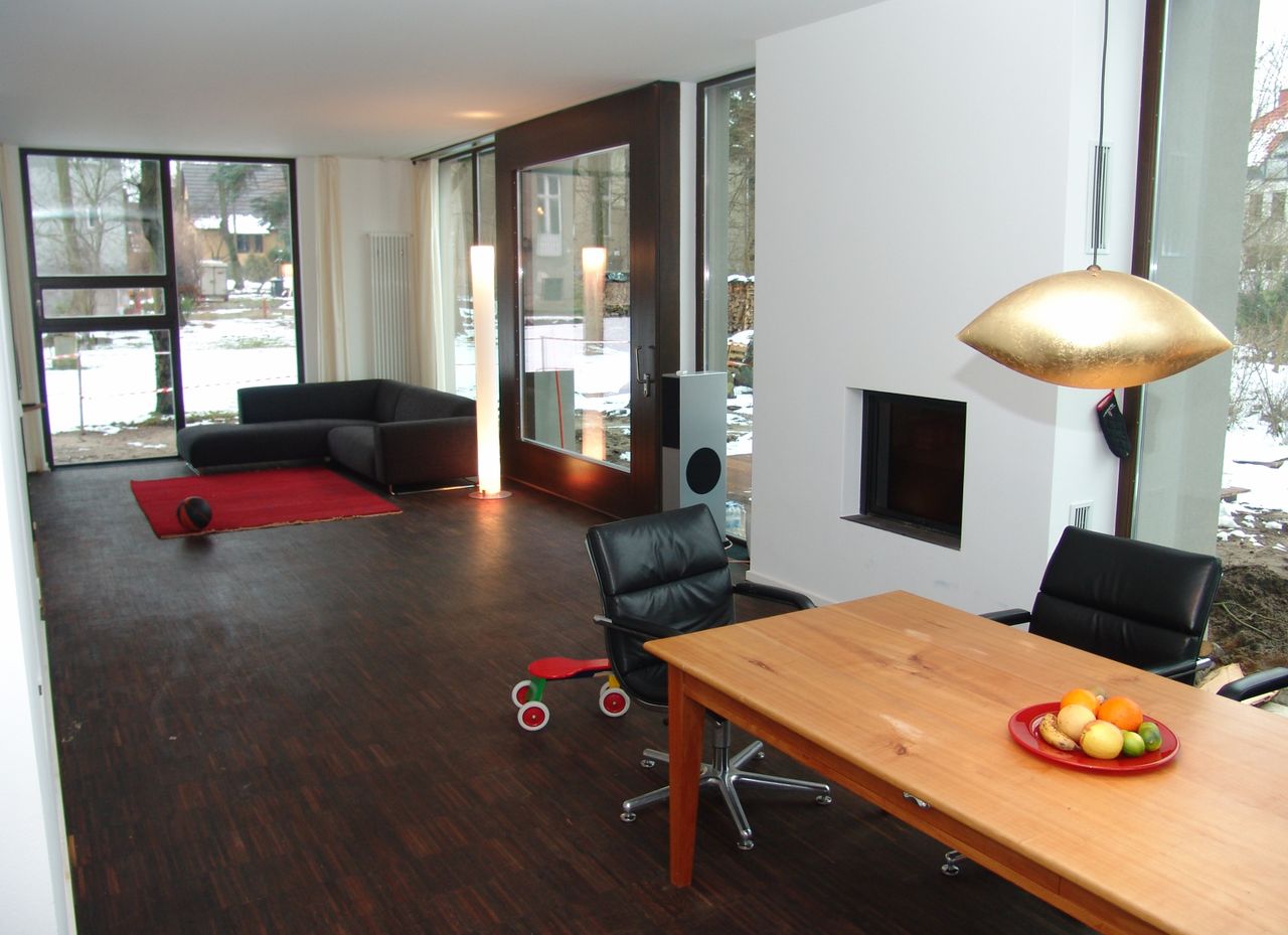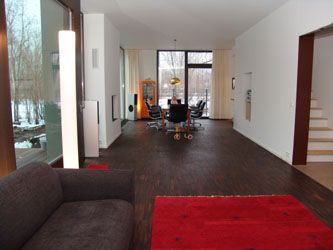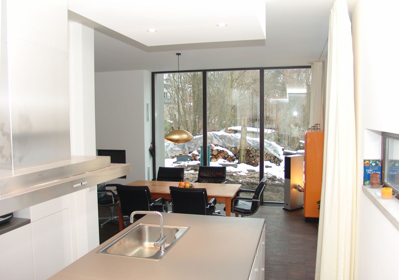 Modernes Wohnhaus: EG Nutzfläche 100qm, davon 71 qm Wohnraum/Küche, Raumhöhe 3 Meter