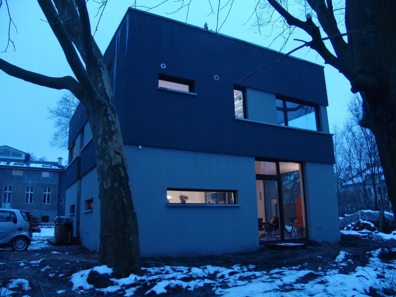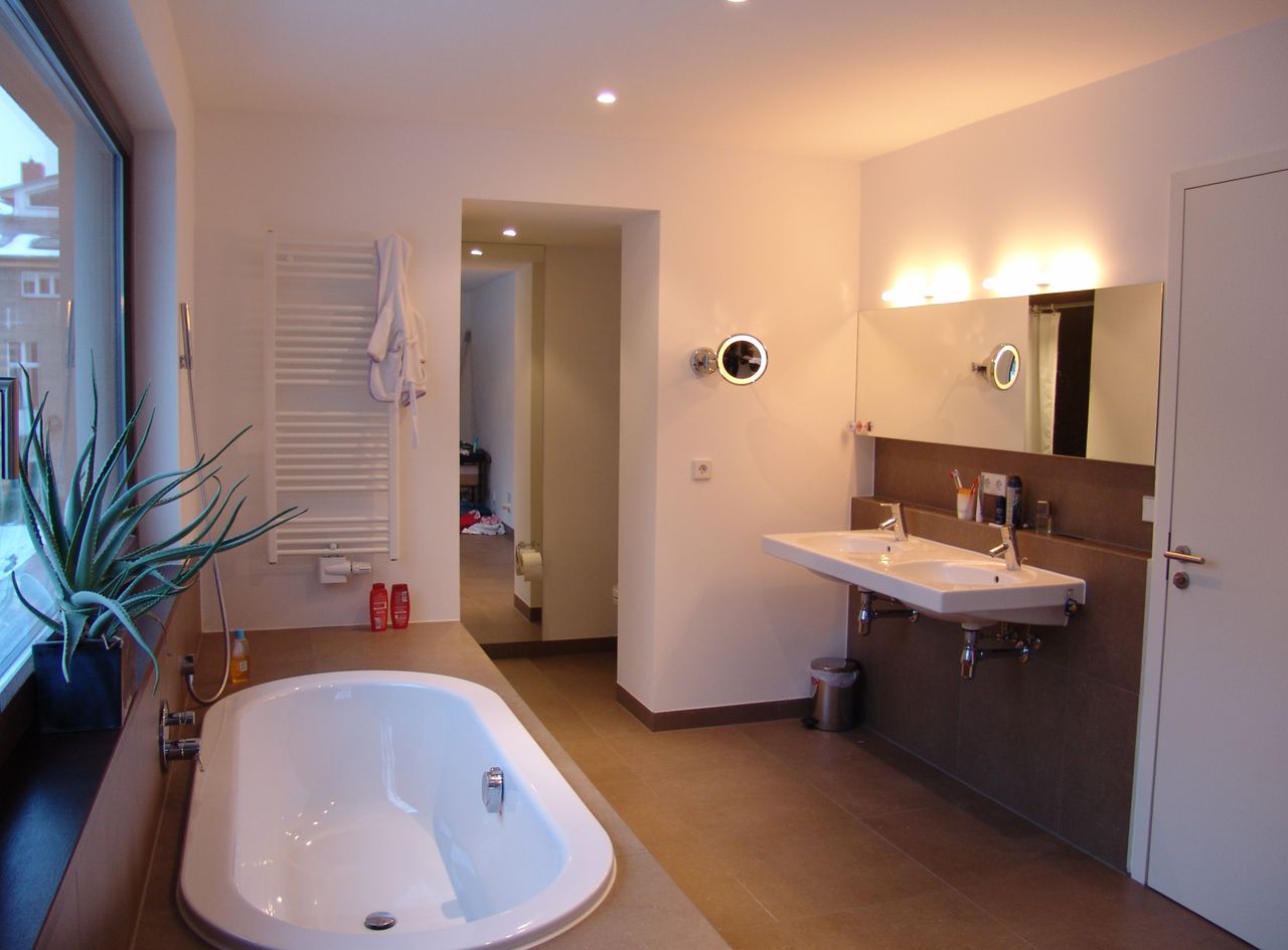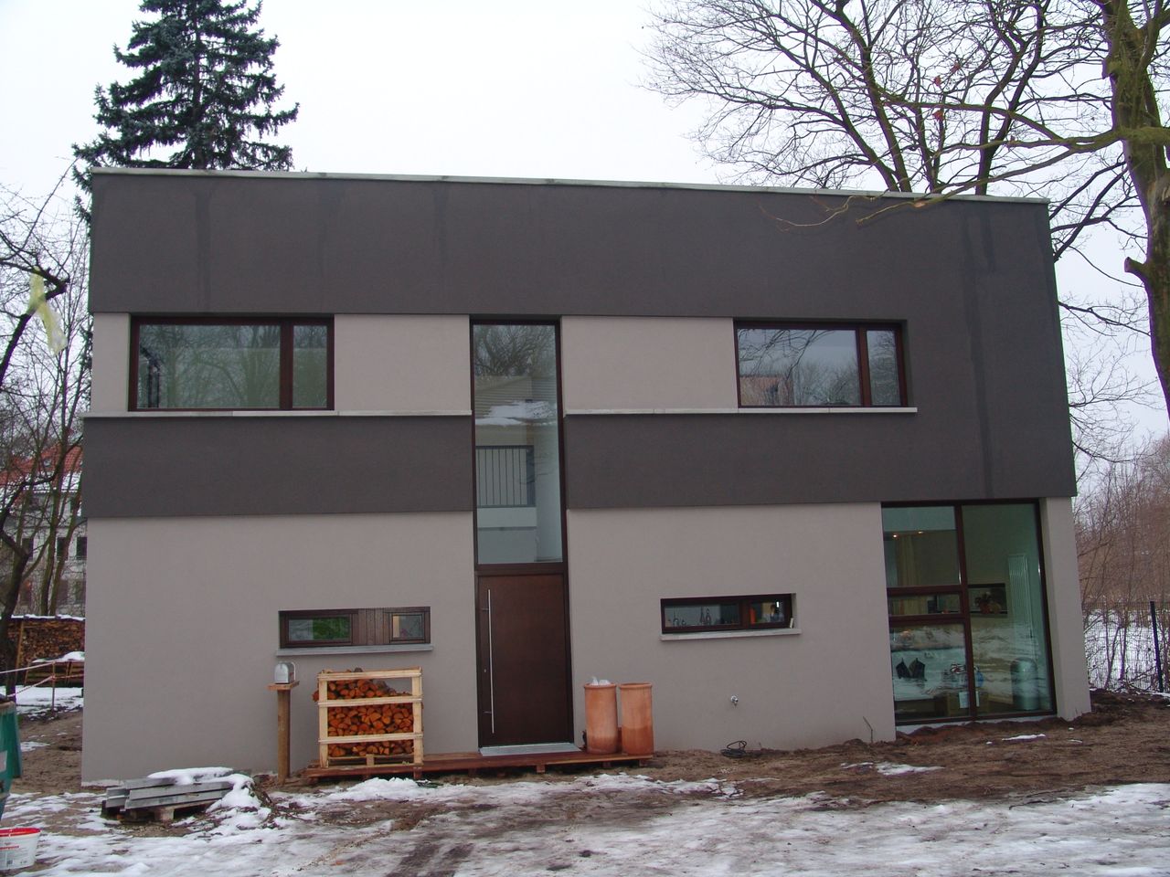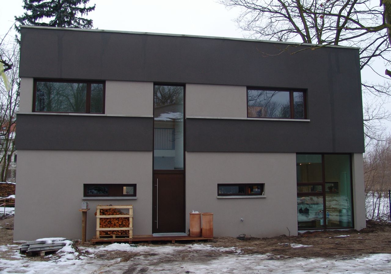 Modernes Wohnhaus: EG Nutzfläche 100qm, davon 71 qm Wohnraum/Küche, Raumhöhe 3 Meter