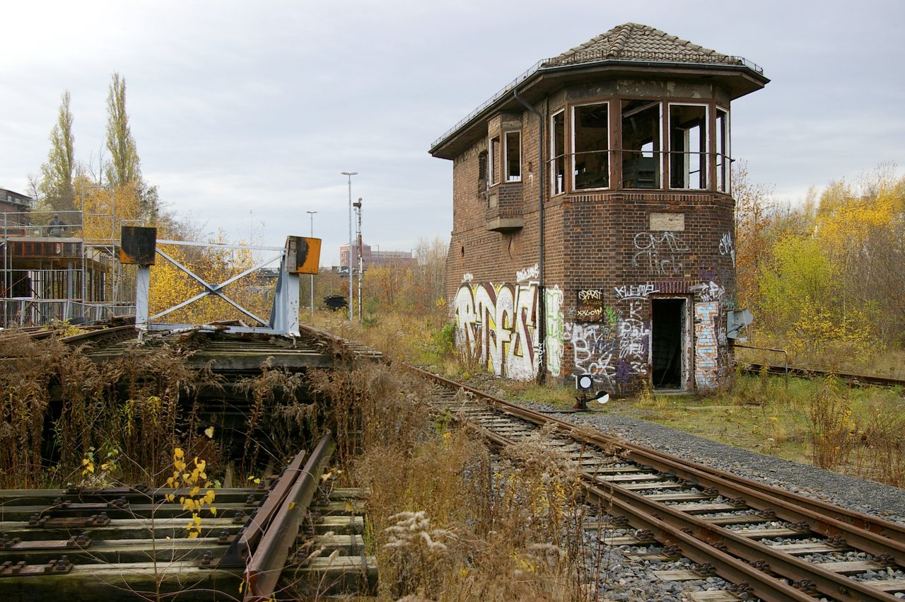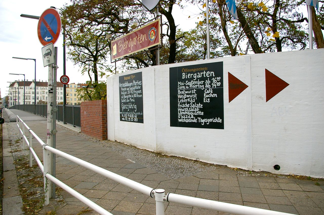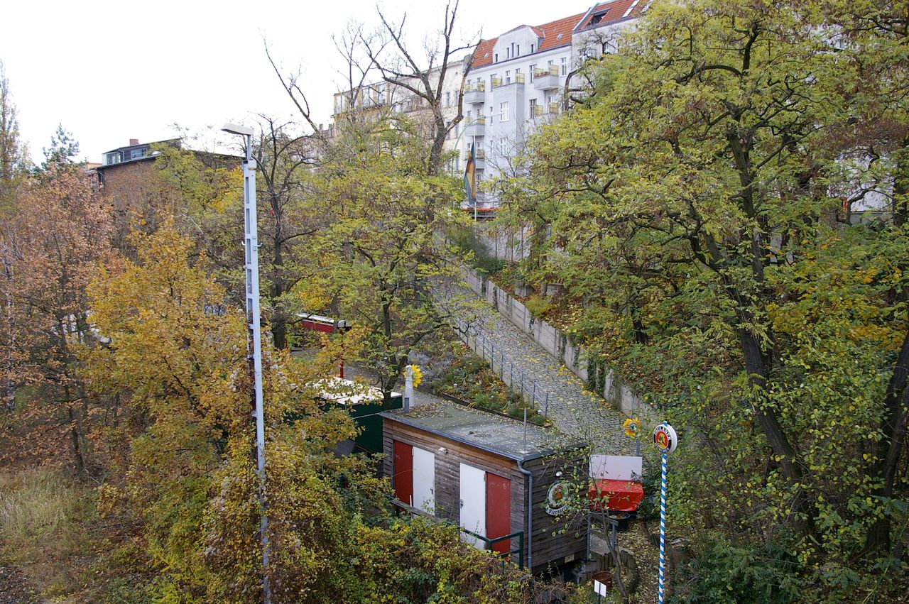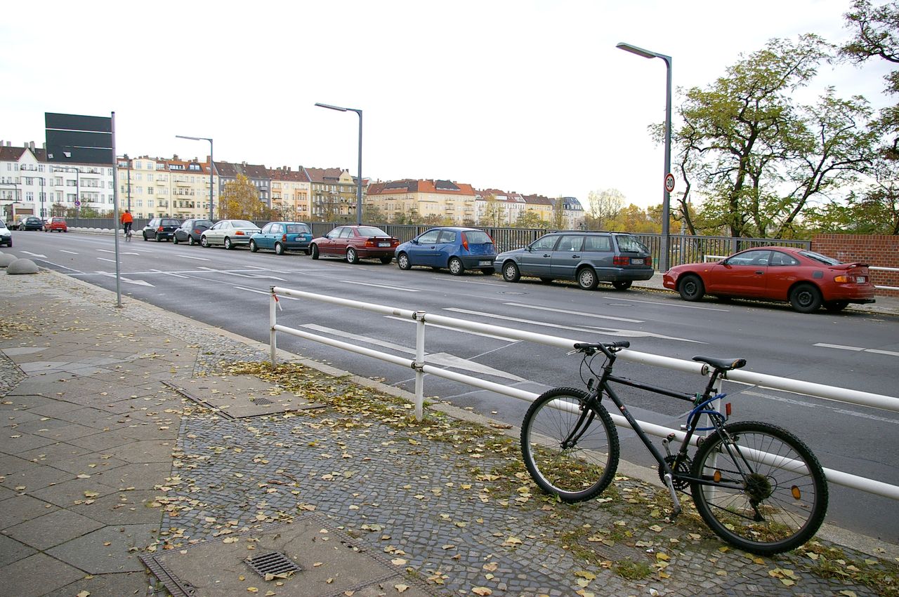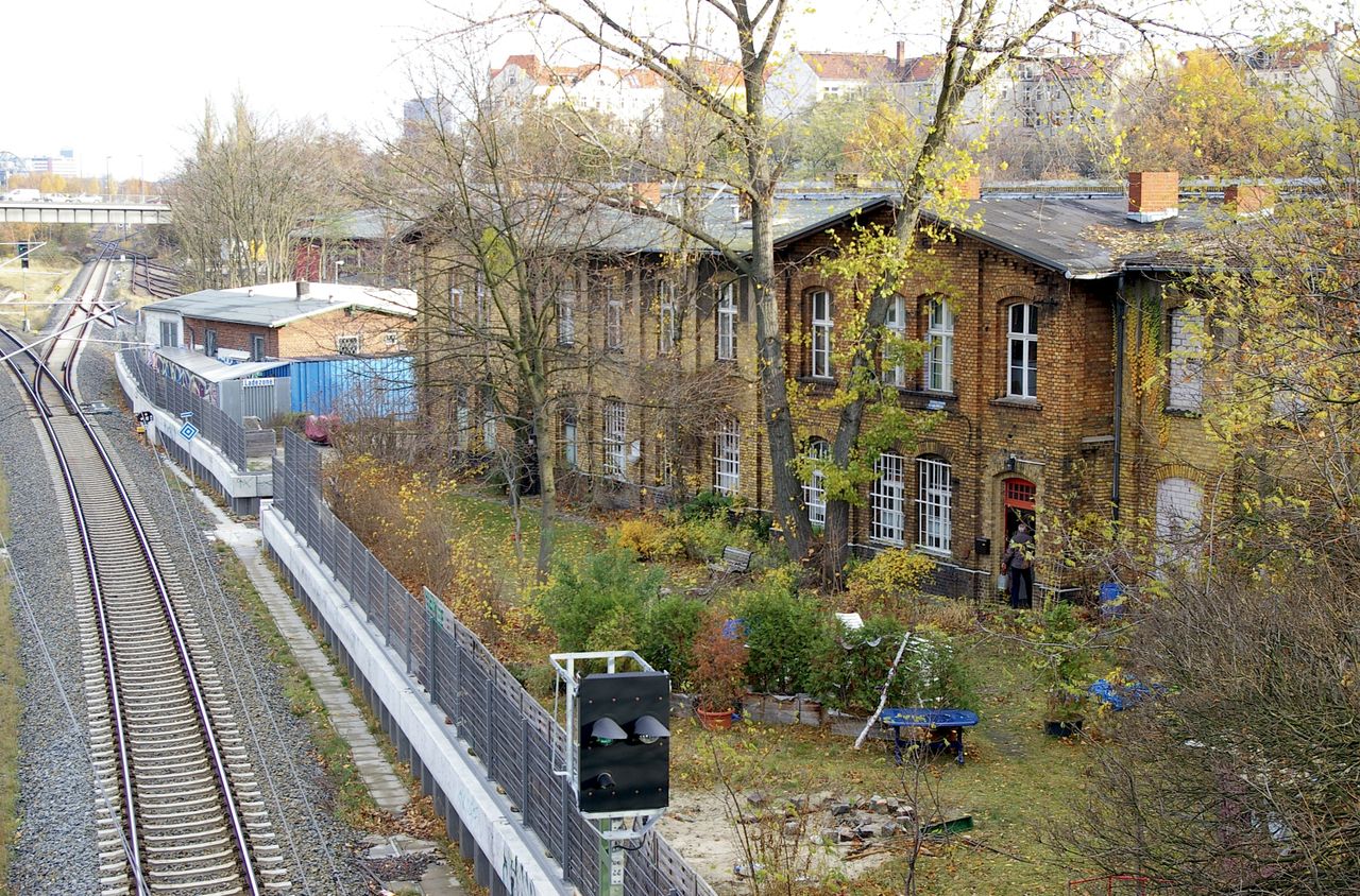 Die Brücke führt über die S-Bahn und Bahntrasse und gewährt einen guten Ausblick auf die Bauten am Potsdamer Platz.