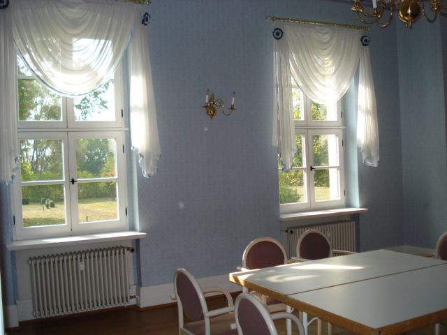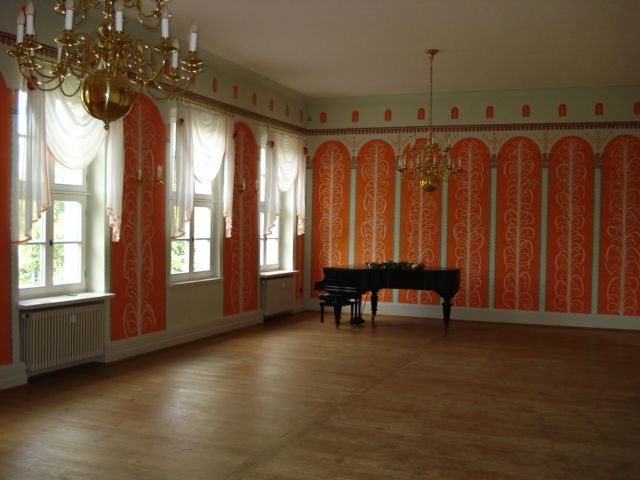 Ausstattung: Flügeltüren, Dielung originalgetreu, Wandbemalung Biedermeier,