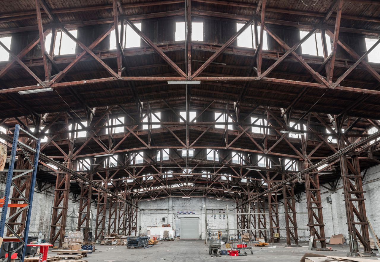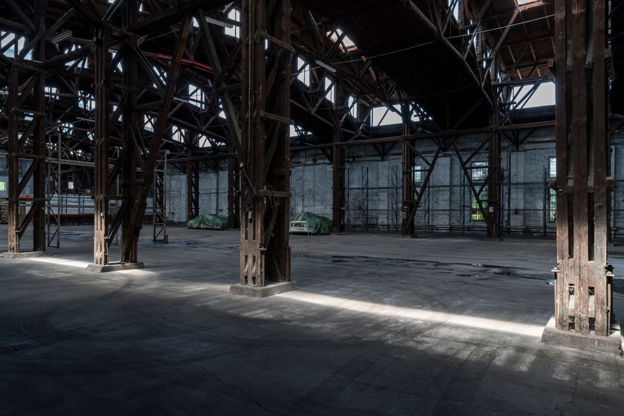 Die 1923 als Lager für Stahl erbaute Halle ist 2.650 qm groß und derzeit für 199 Personen zugelassen. Die Besonderheit ist die 10 Meter hohe und dabei stützenfreie Deckenkonstruktion aus Holzbalken, die der Halle einen unvergleichlichen Industriecharme verleiht.