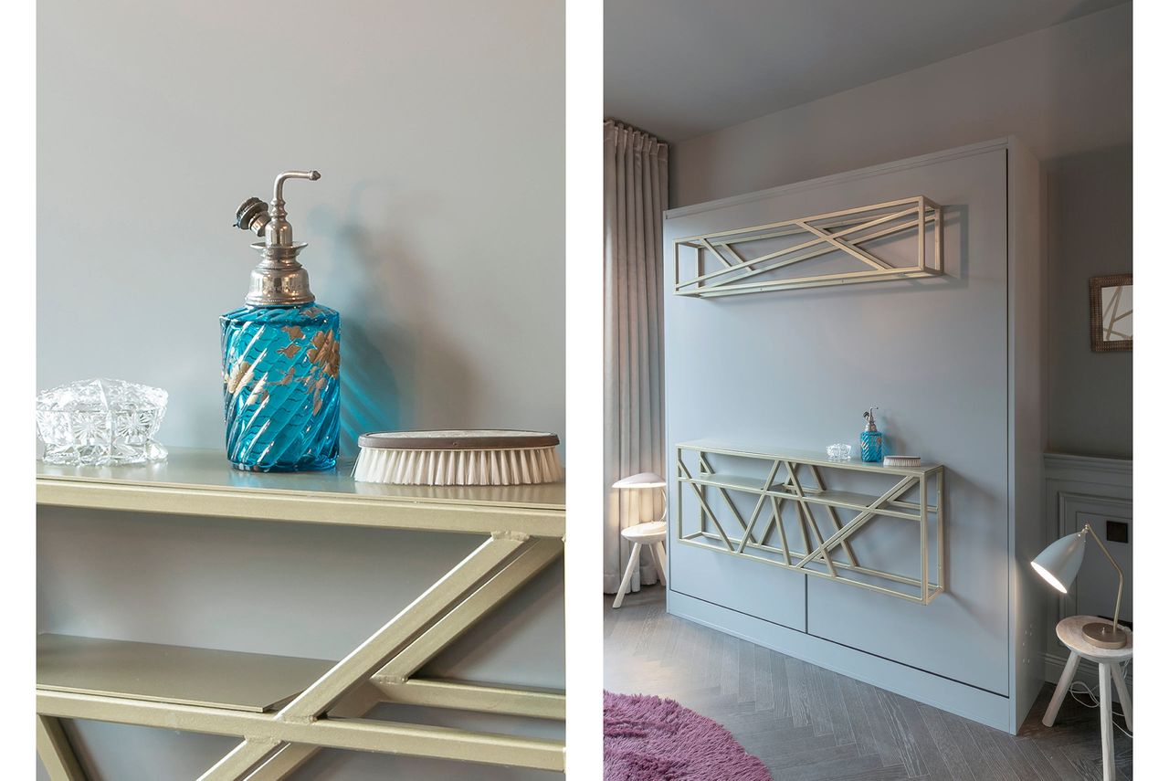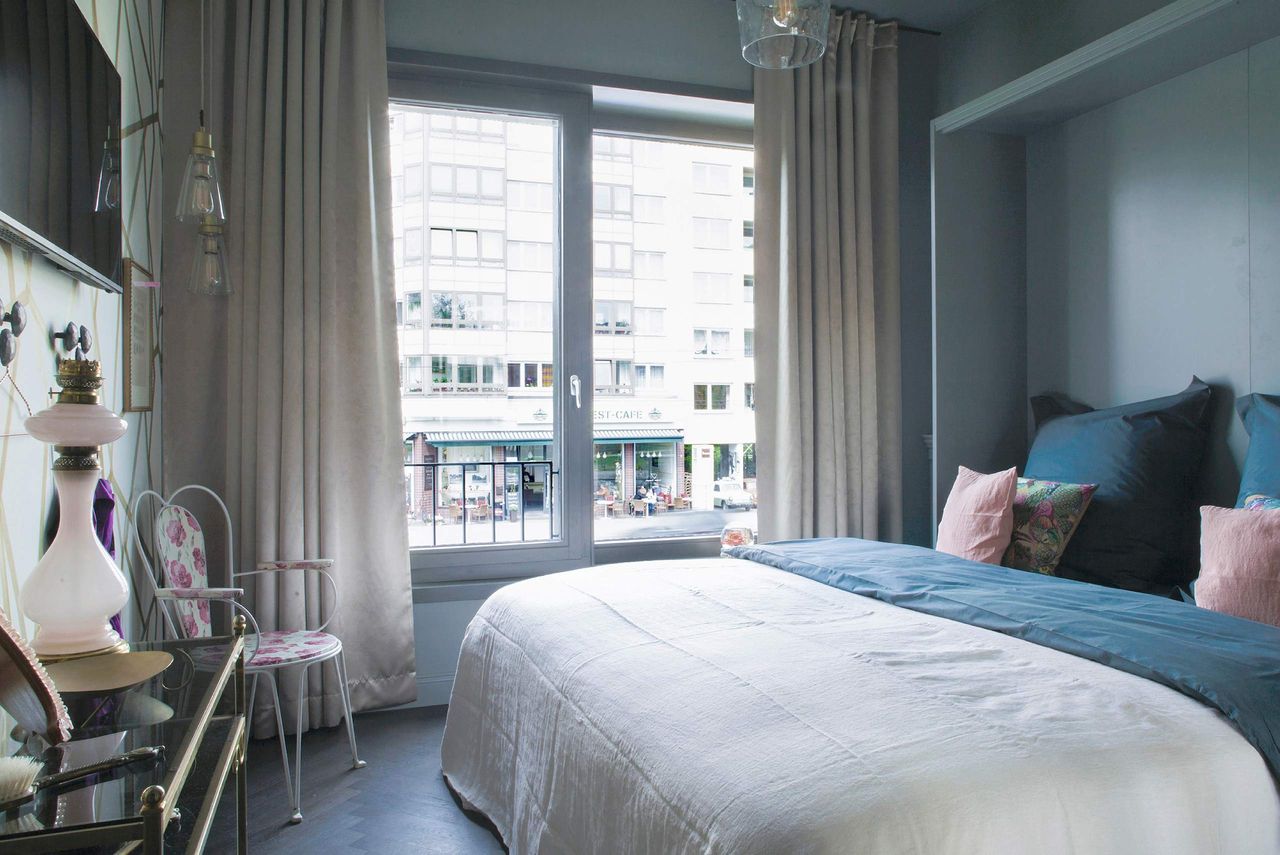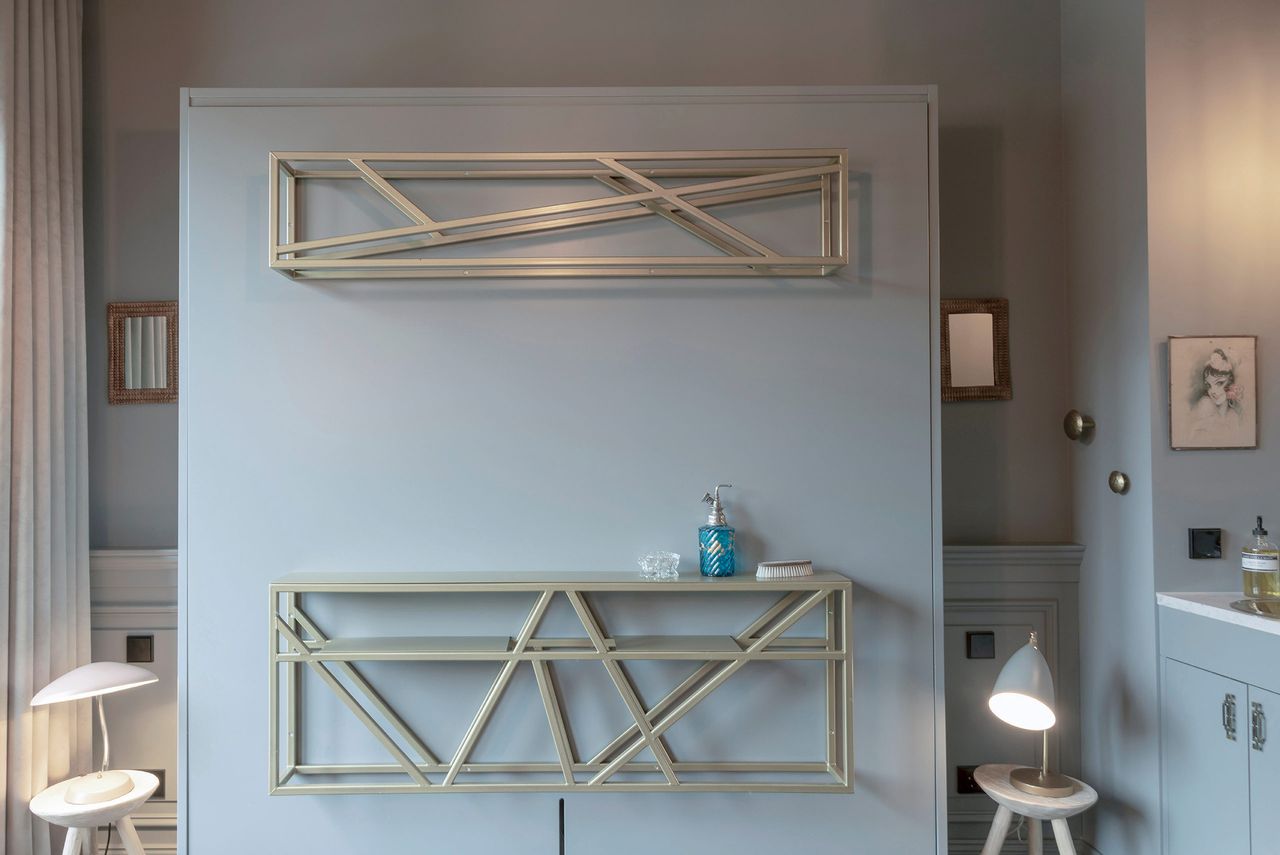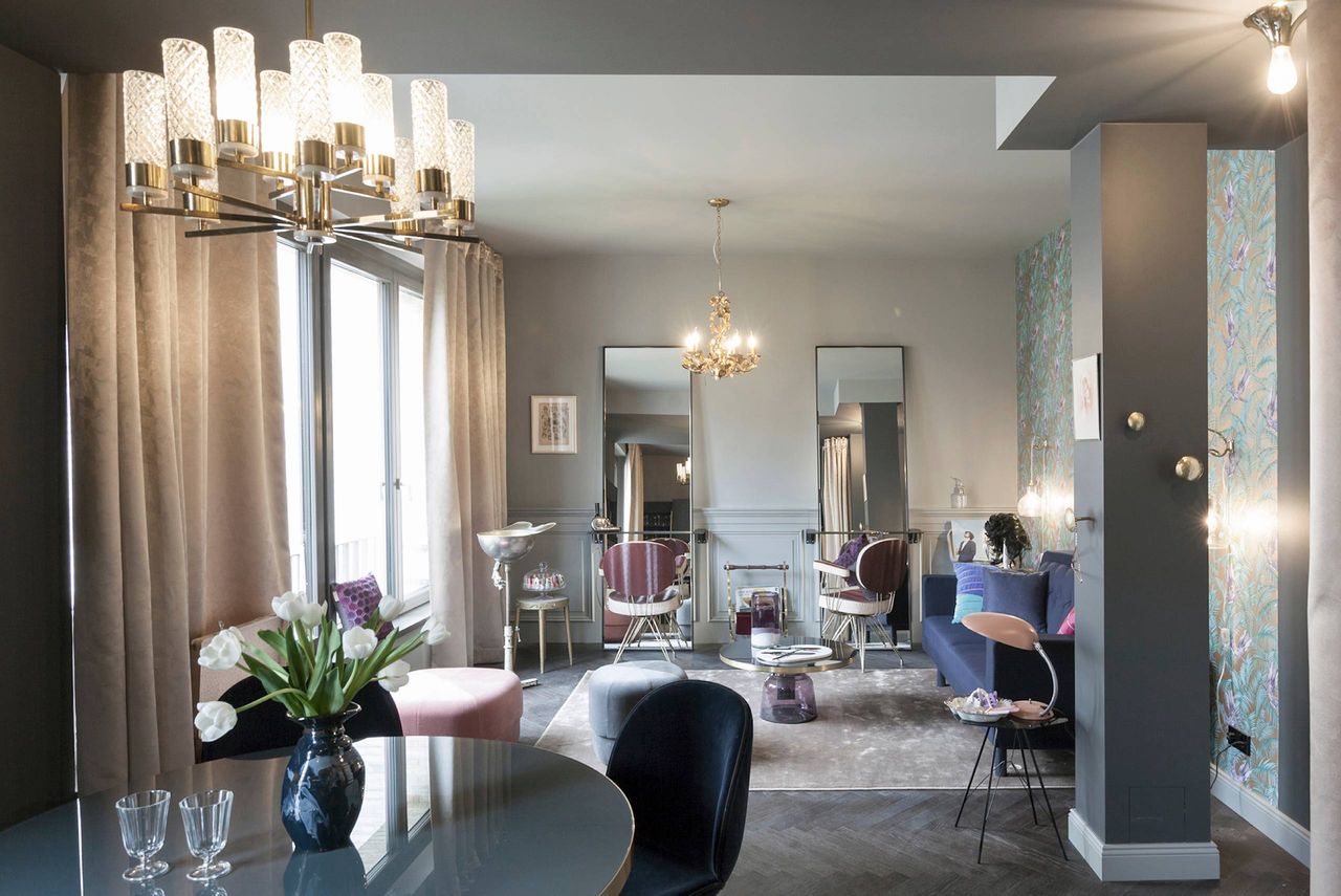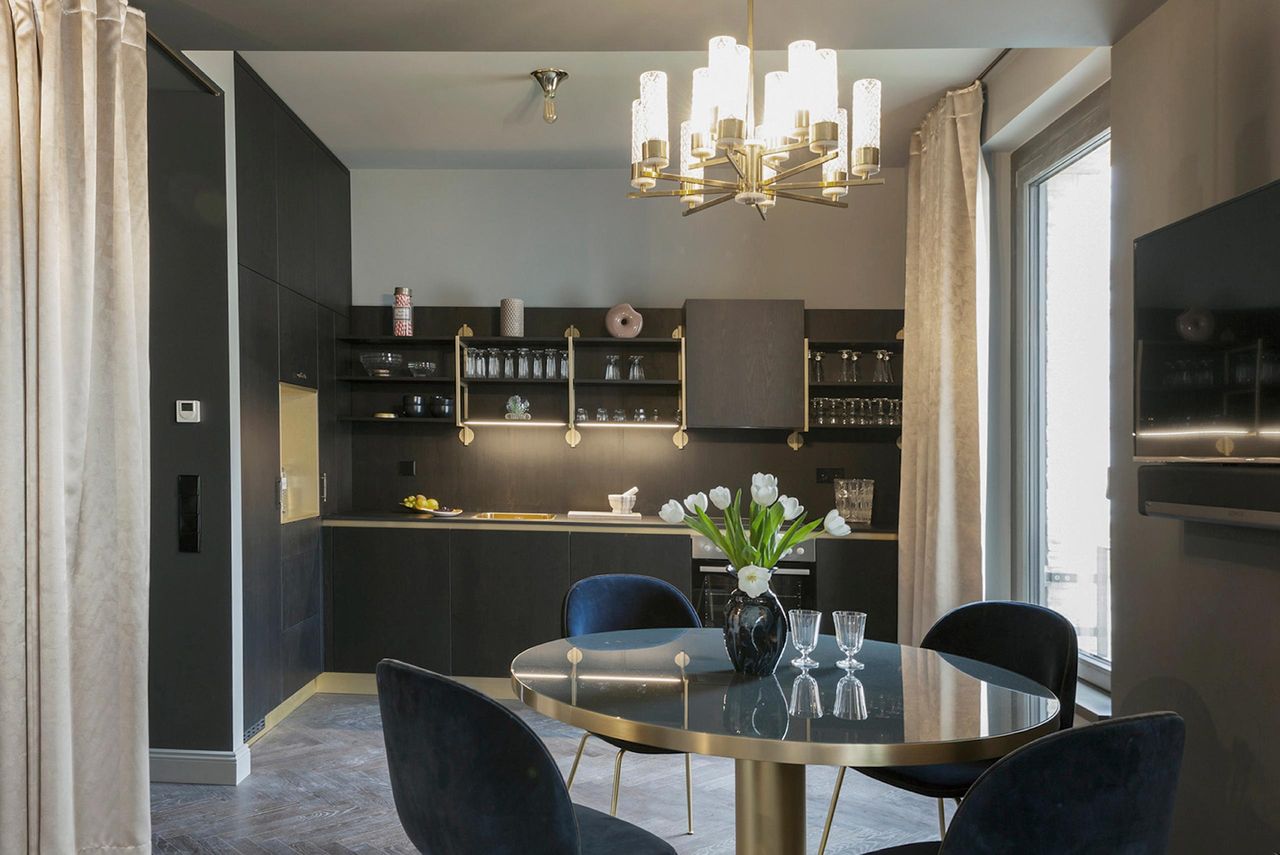 Ein Schlafzimmer mit einem Doppelbett, ein Badezimmer und ein geräumiges Wohnzimmer mit angrenzender offener Küche verbinden sich zu einem urbanen Konzept von Entspannung und Lifestyle. Zwei glamouröse Frisiertische mit edlen Spiegeln sind der perfekte Ort für ein erstklassiges Beauty-Treatment oder eine entspannende Massage. Verwöhnen Sie sich und erkunden Sie dieses wunderschön gestaltetes Apartment mit Liebe zum Detail und dem Geist verspielter Eleganz.