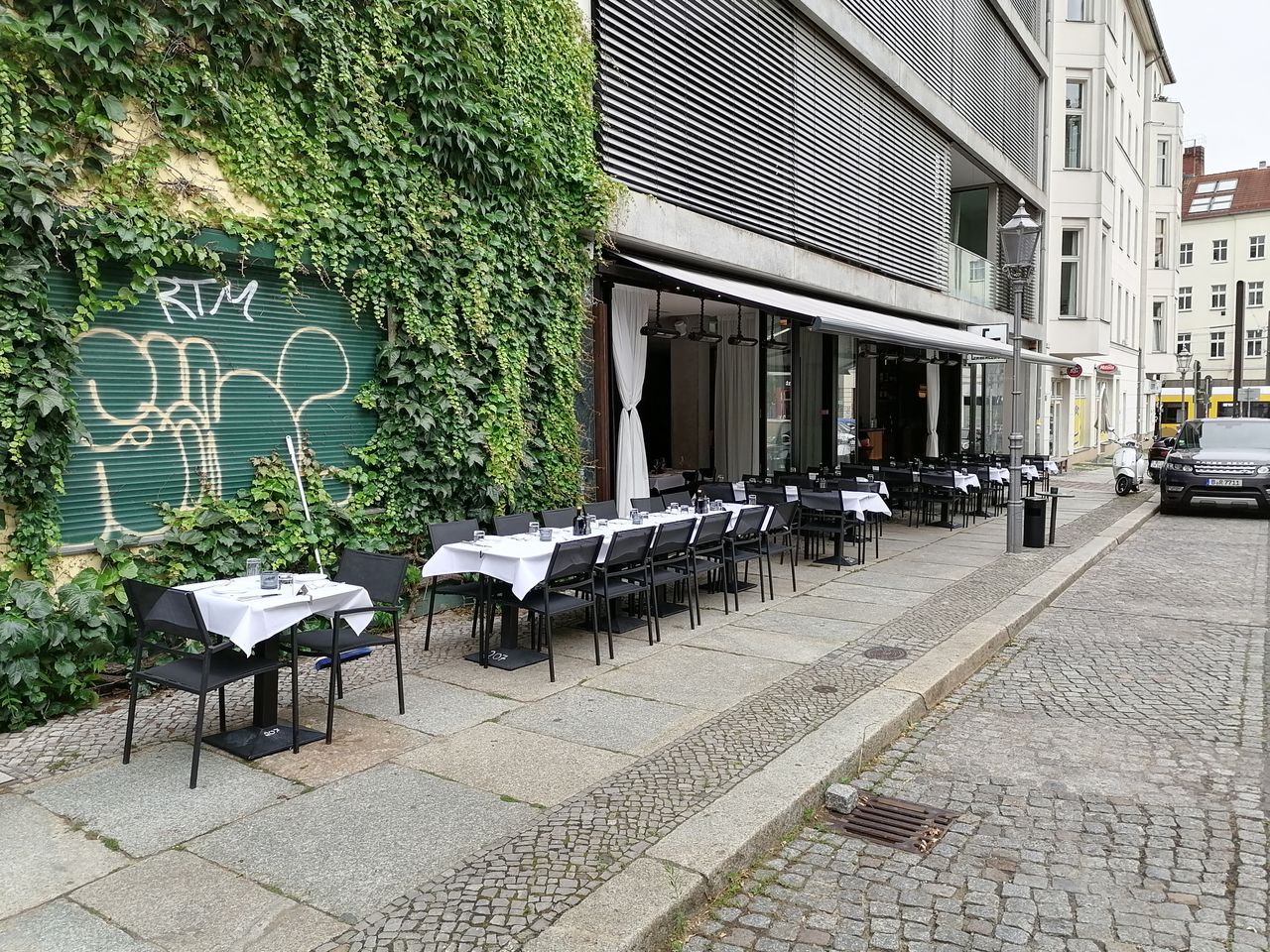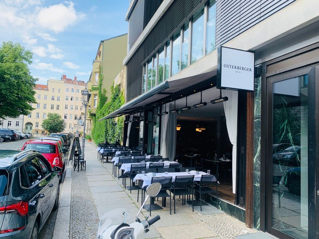 Lichtdurchflutetes Design-Restaurant mit Bar und Terrasse in Berlin-Mitte: Mitten in Berlin-Mitte und doch ruhig gelegen ist das Restaurant Osterberger eine stilvolle Location mit Mid-Century-Charme, bodentiefen Fenstern und einer großen Terrasse mit Blick auf die historische Schinkelkirche Sankt Elisabeth. Das lichtdurchflutete Interieur erinnert an Palm Springs und Miami – ideal für ästhetische Foto- und Filmproduktionen, Interviews, Editorials oder Werbedrehs. Die Location bietet Platz für bis zu 80 Personen (sitzend) oder 200 (stehend).