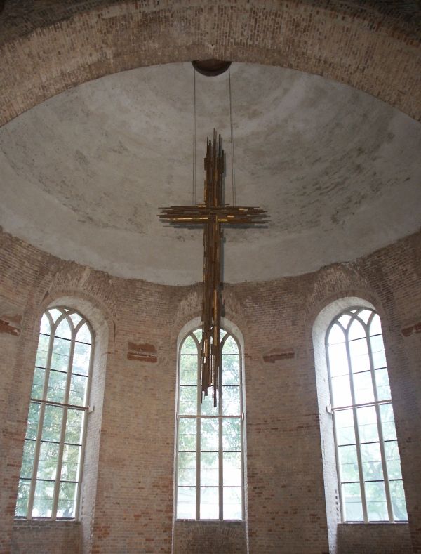 1944 brannte die Kirche aus, der Turm stürtze ein. Außen sorgfältig restauriert. Innenraum provisorisch saniert nach Kriegsschäden. Nackter Ziegelstein, 18 m hohe Wände, 625 qm, barocker Zentralbau. Momumentale Raumwirkung.