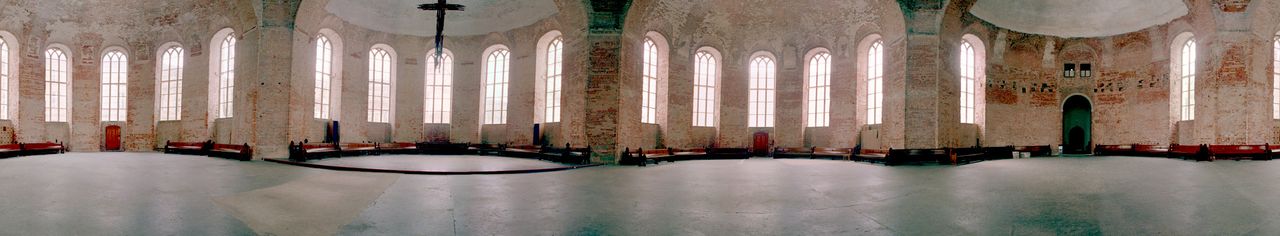 - Kirchenschiff etwa 625 qm, Deckenhöhe 18 Meter, ausgestattet mit beweglichen Kirchenbänken.
