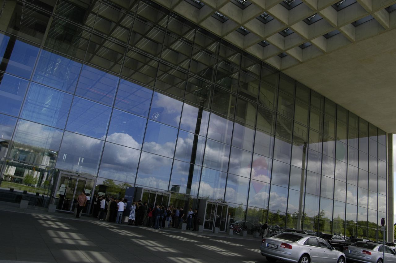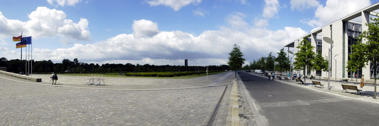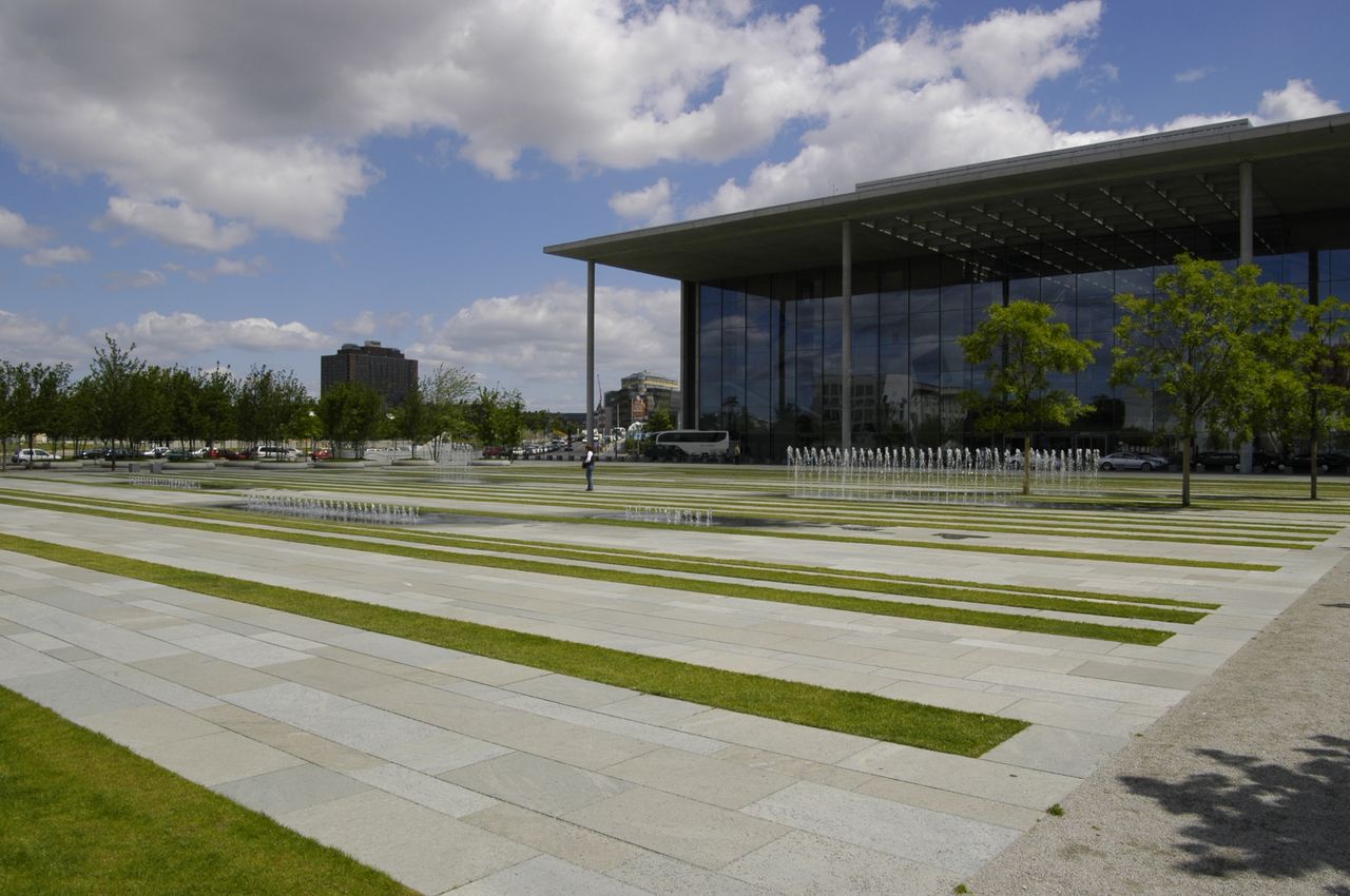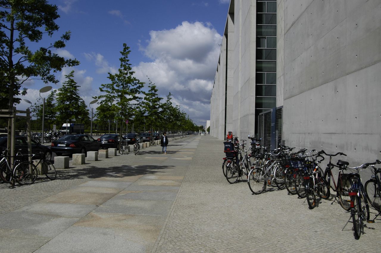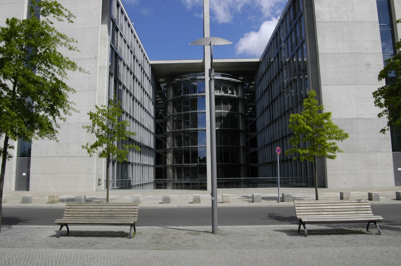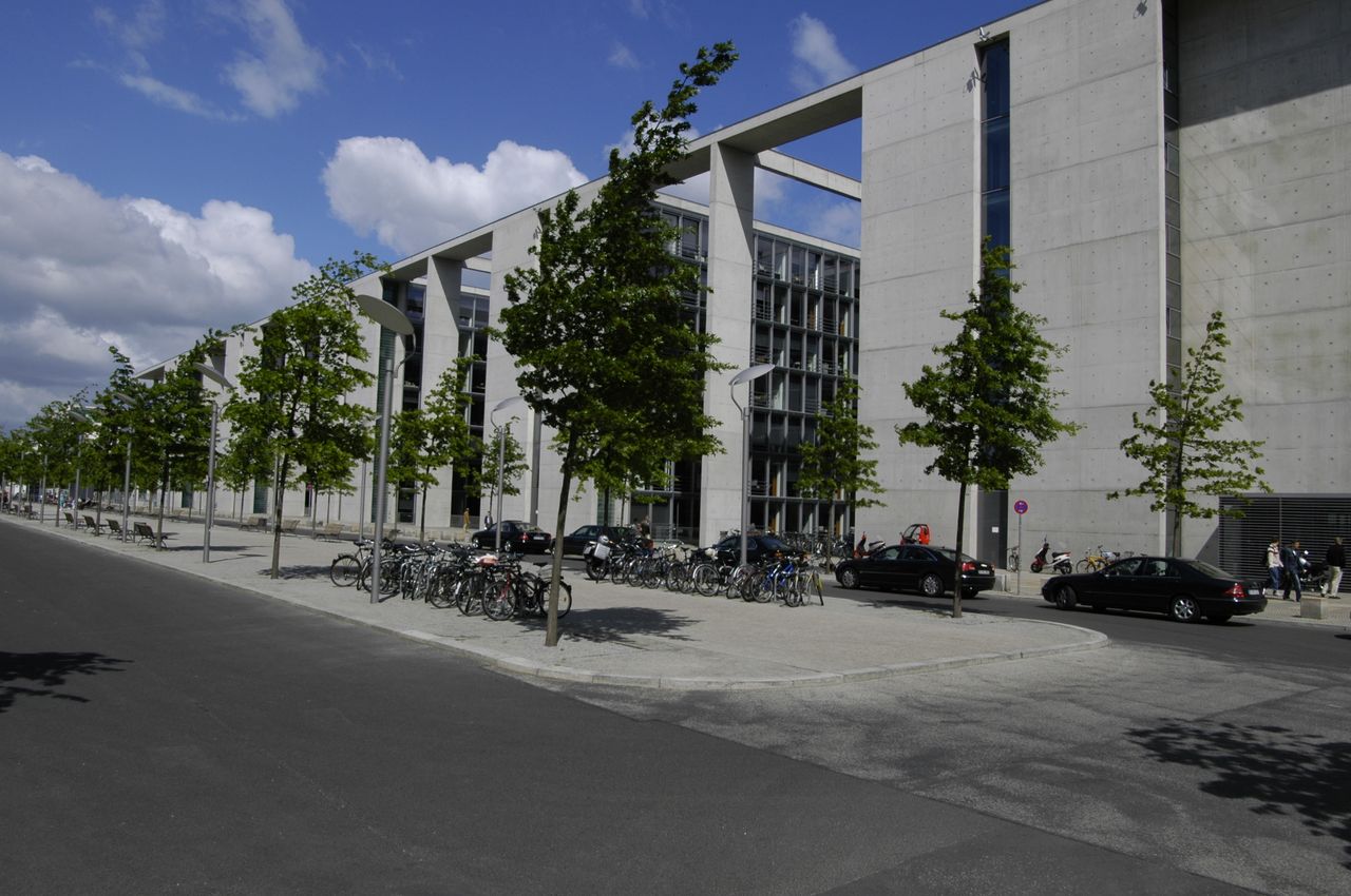 Der im inneren Spreebogen gelegene Parlamentsneubau - benannt nach dem ehemaligen Reichstagspräsidenten Paul Löbe (1924-32) - fügt sich ebenso wie seine bauliche Fortsetzung auf dem nordöstlichen Spreeufer, das Marie-Elisabeth-Lüders-Haus, in das städtebauliche Leitkonzept vom "Band des Bundes" - 1992 konzipiert von den Architekten Axel Schultes und Charlotte Frank.