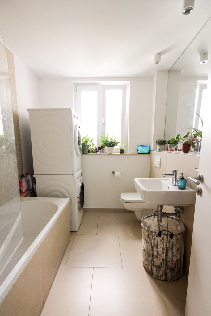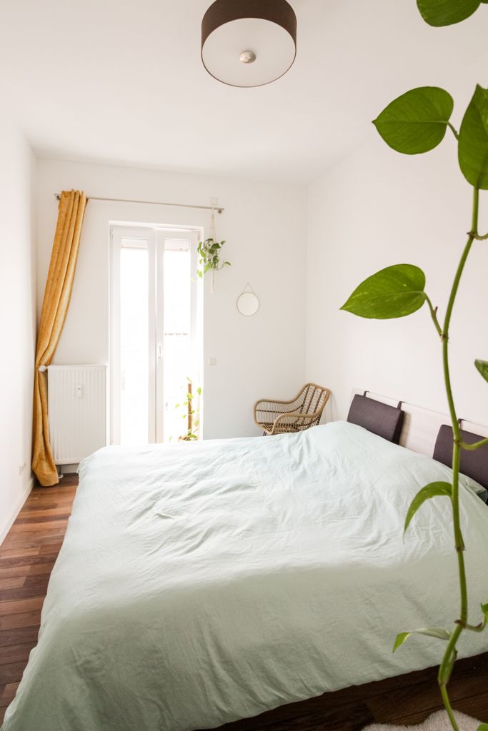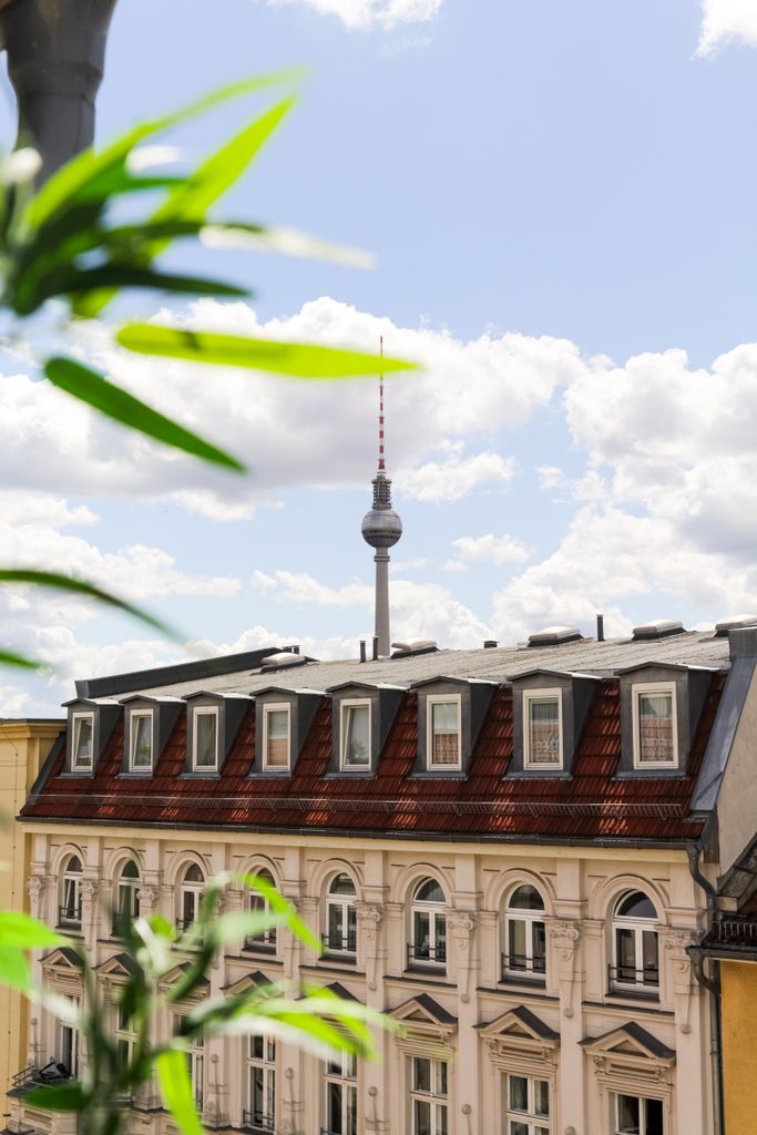 Welcome to our home! The design would be pretty classic and minimalistic, if it weren't for all the plants filling the space. The apartment is around 62 sqm, in the heart of Mitte. Our chill balcony offers a direct view over the Fernsehturm. Don't hesitate to get in touch!