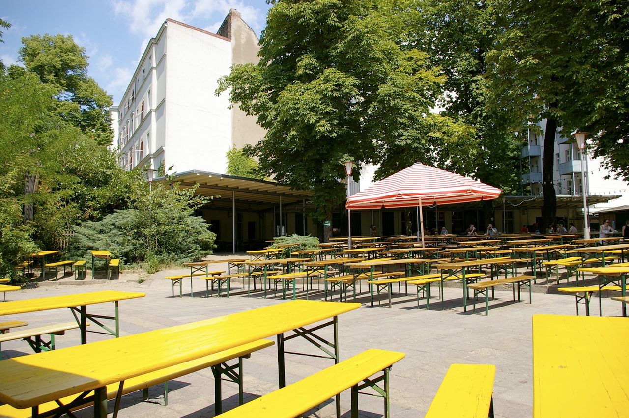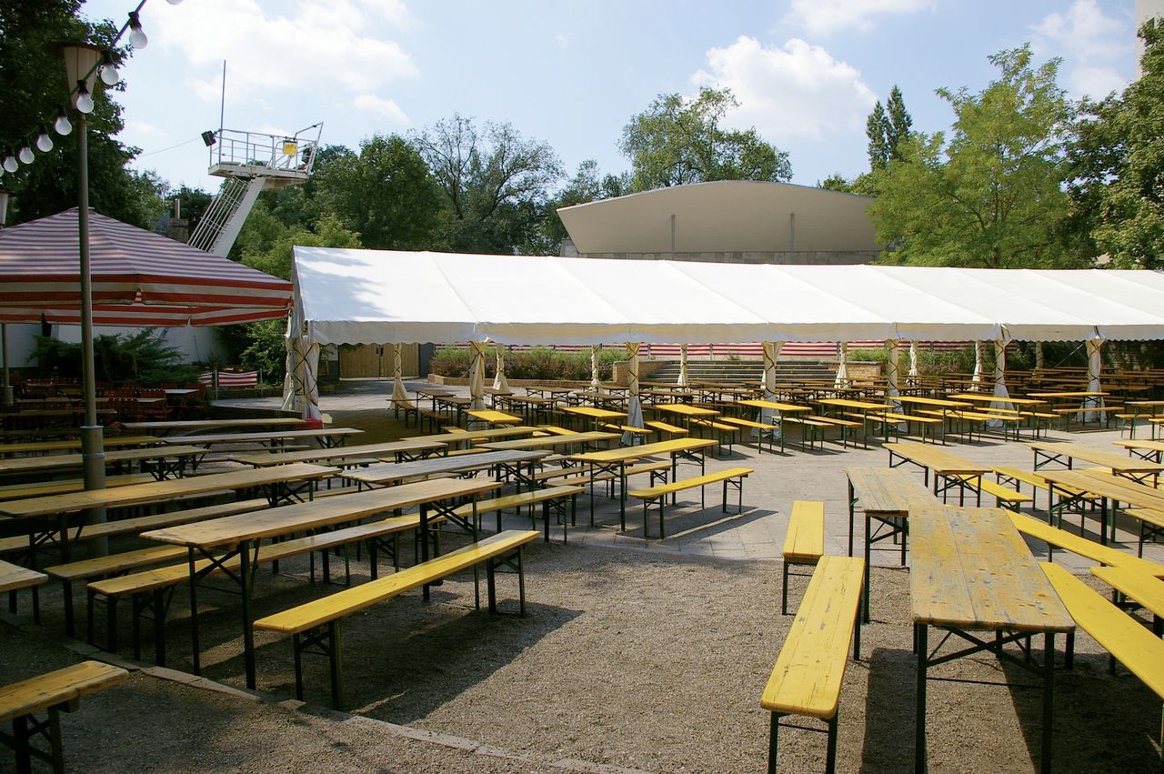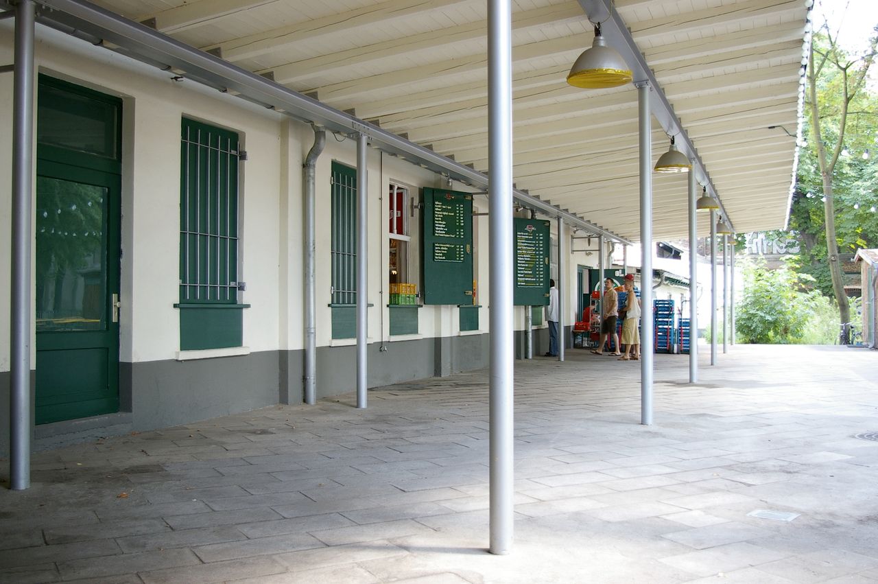 Schöner Biergarten mit Veranstaltungsbühne, Restaurant und Theater, sowie Clubs im Gebäude. Im Sommer stark von Anwohnern und Touristen frequentiert.