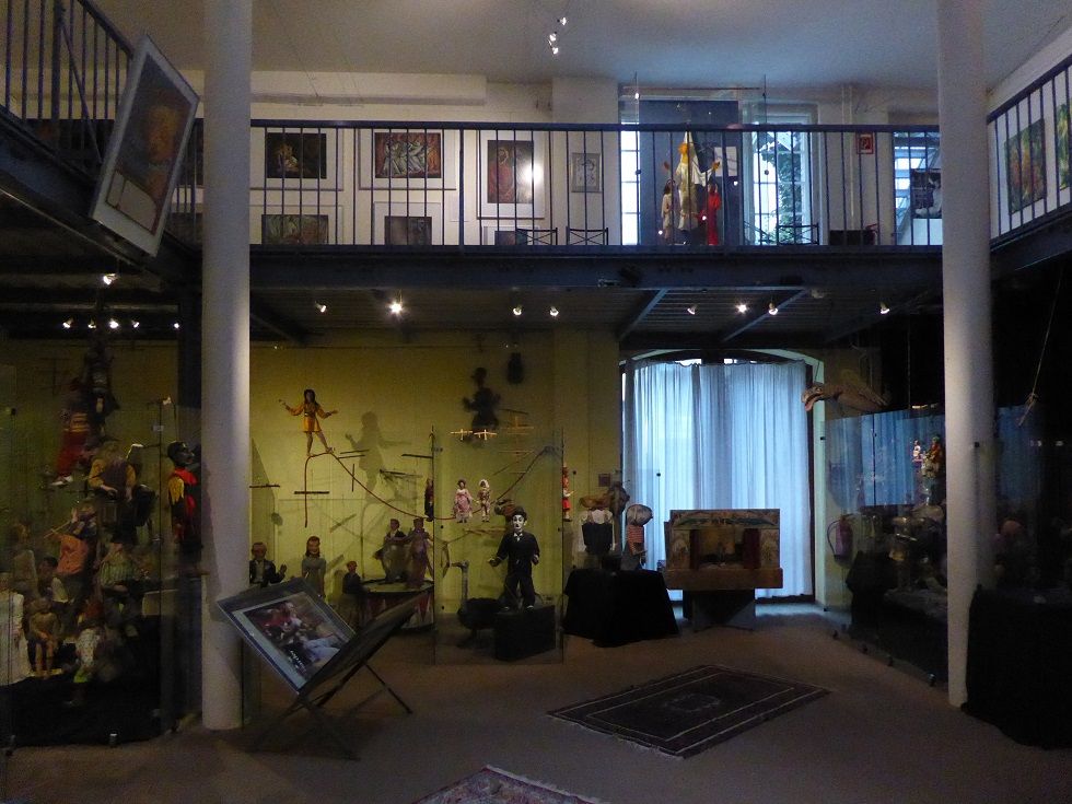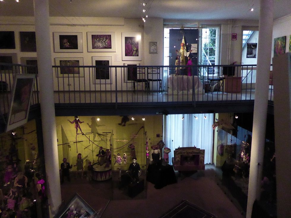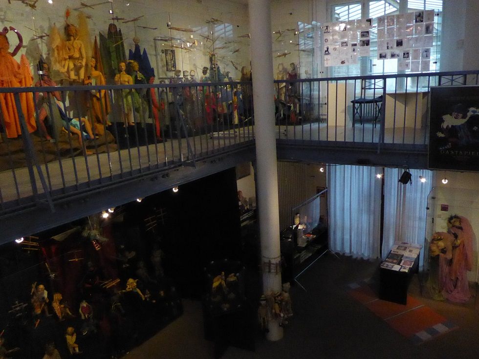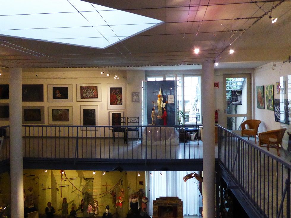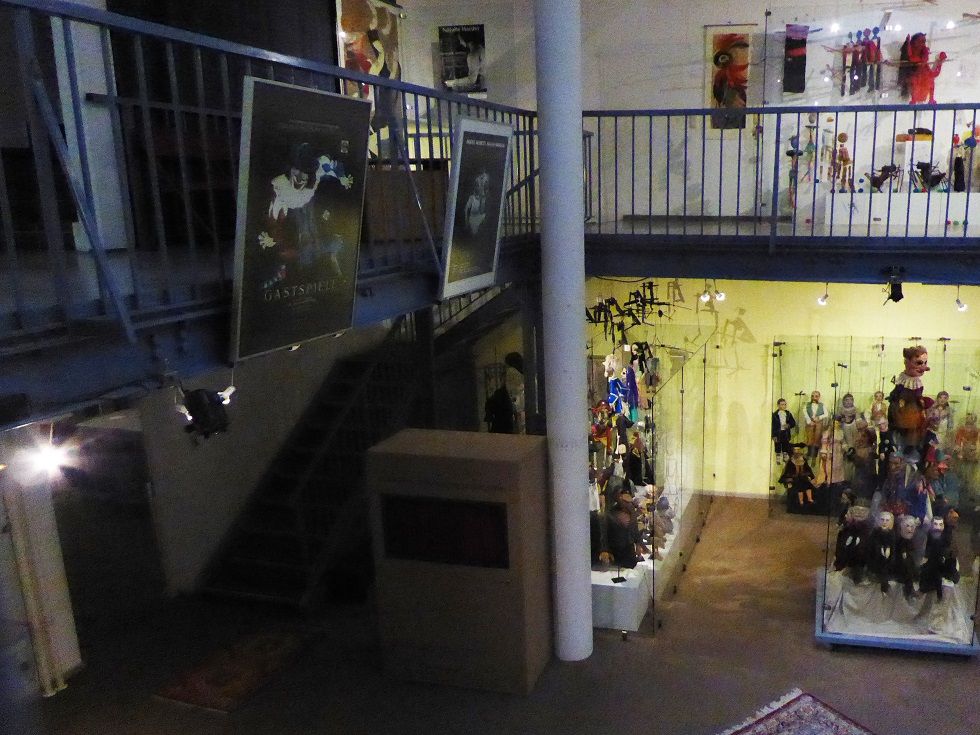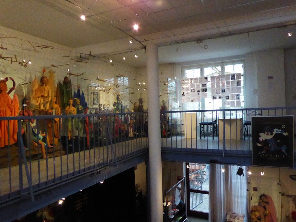 Verbindungsbau zwischen historischen Mietwohnungen im ersten Hinterhof. Zwei Etagen Ausstellungsraum, erste Etage rundum Galerie. Skylight und historische Fenster. Beherbergt historische Marionetten- und Theaterfiguren in Vollglasvitrinen. Kleiner Theaterraum und Büro im dritten Stock. Dachgarten. Nuseumsübliche Beleuchtung. Verdunkelbar. Teeküche, zwei Toiletten und Duschen.